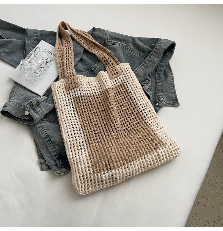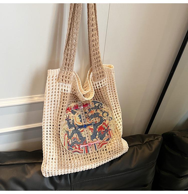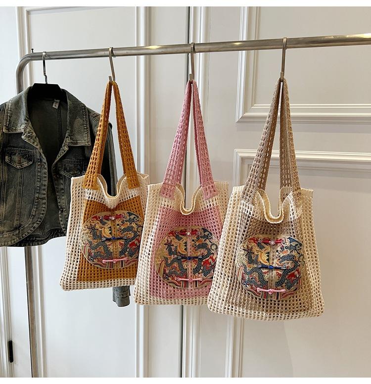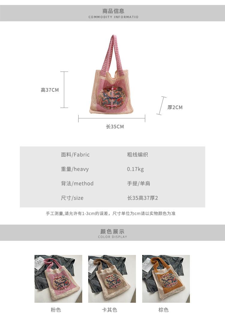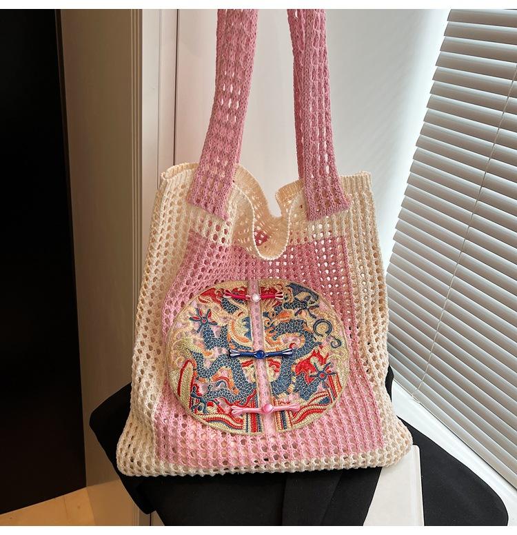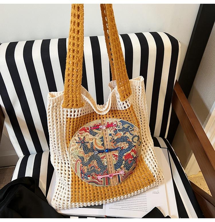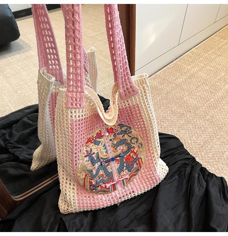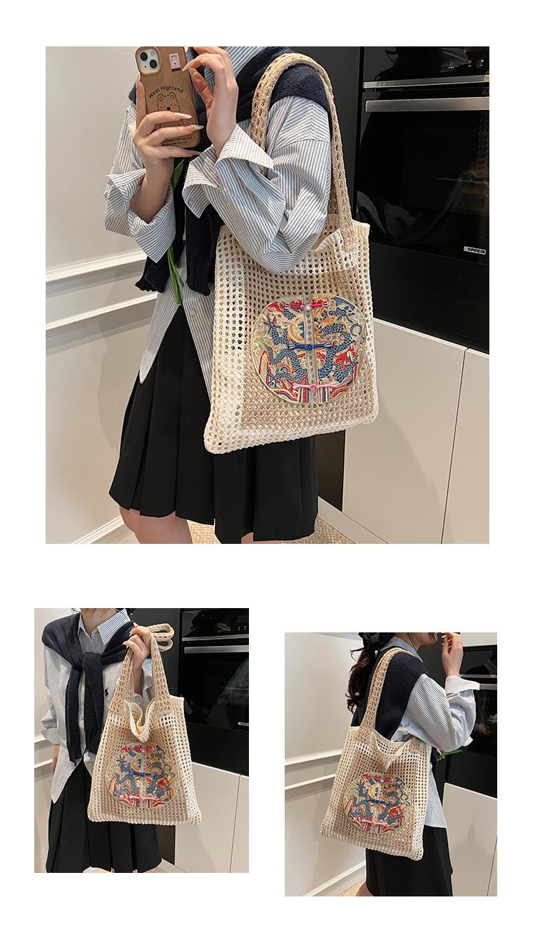 Weave, Straw, Embroidery, Hollow out, Contrast color, Splicing