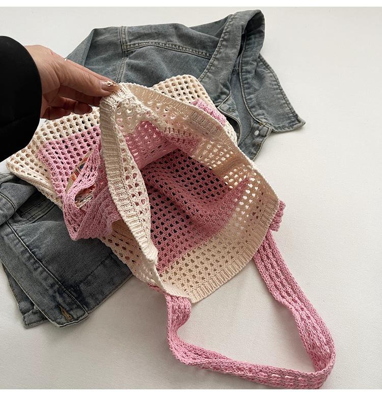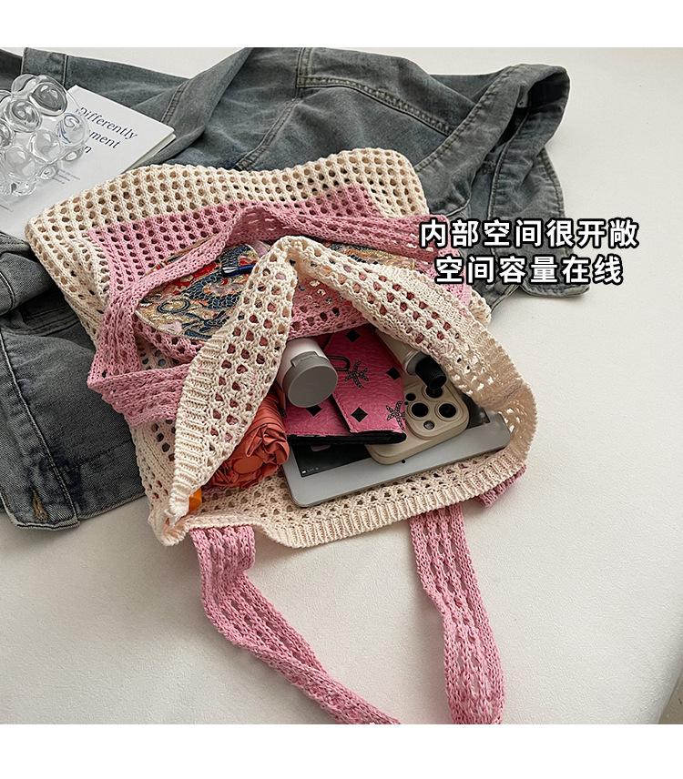 Bolso Tejido de Verano para Mujer Vacaciones en la Playa Marítima Tejido Calado 2025 Nueva Llegada Un Hombro Gran Capacidad Bolso Tejido de Paja