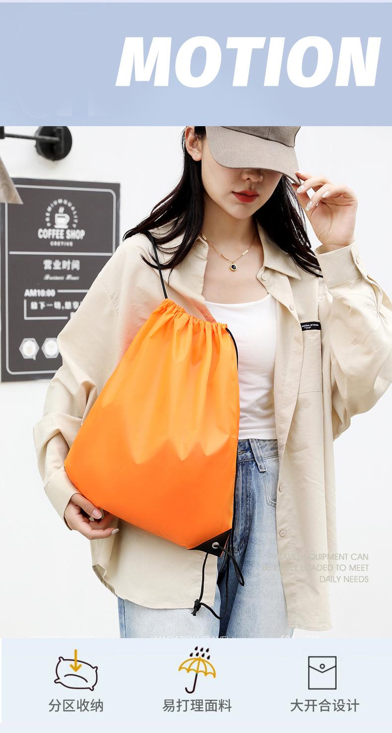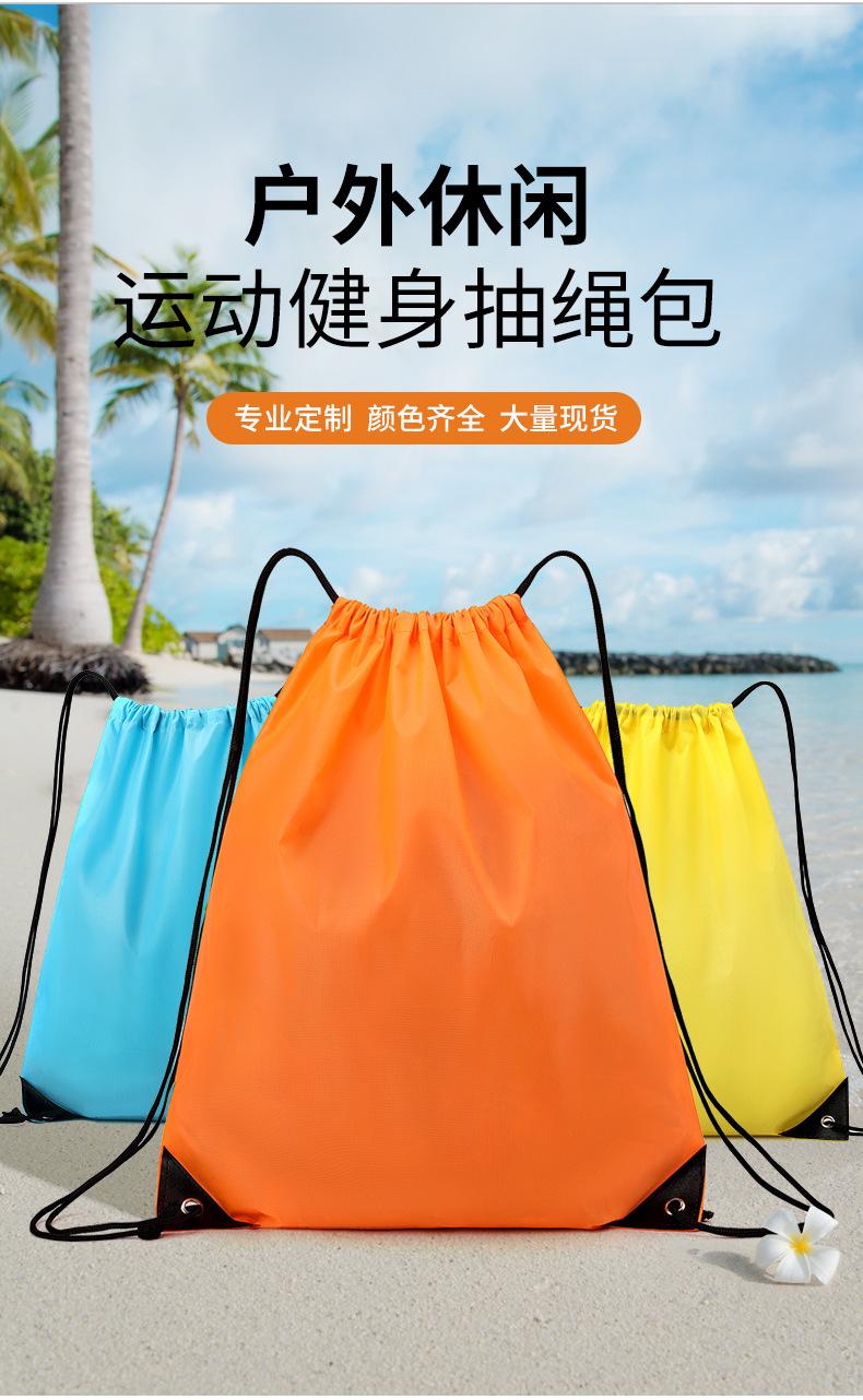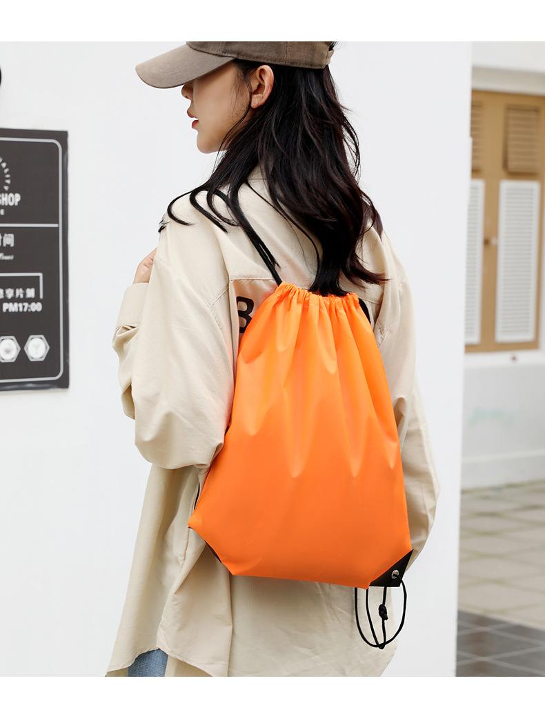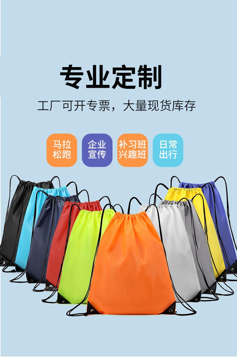 En stock Tela Oxford Venta al por mayor 210D Poliéster Bolsillo con cordón Mochila plegable Bolsa de almacenamiento para eventos deportivos