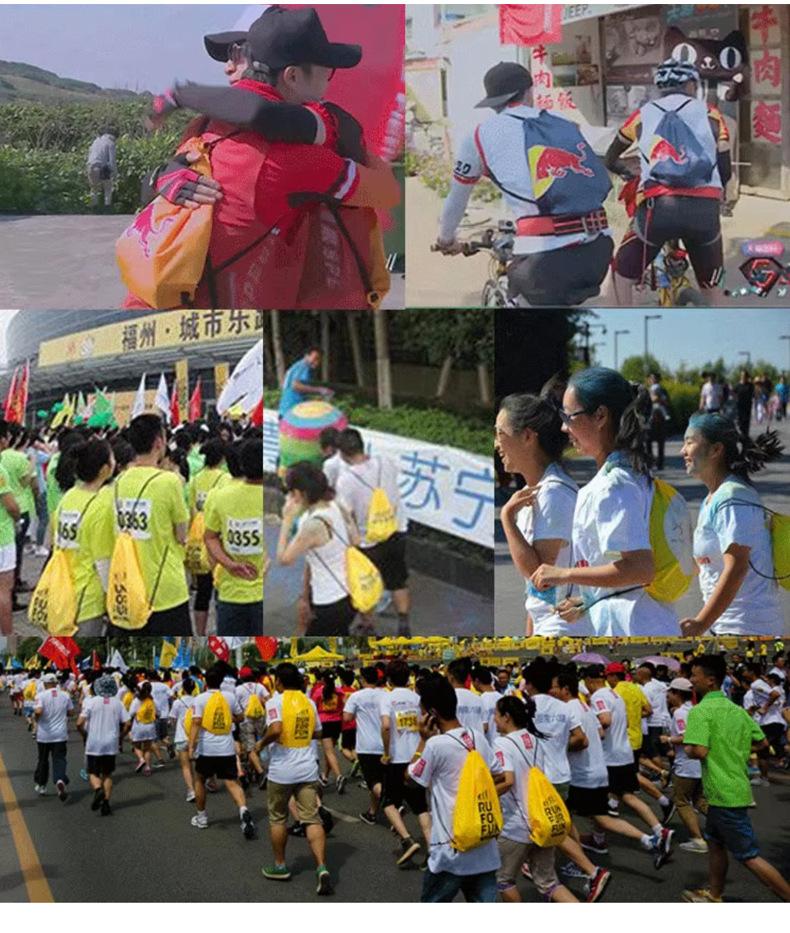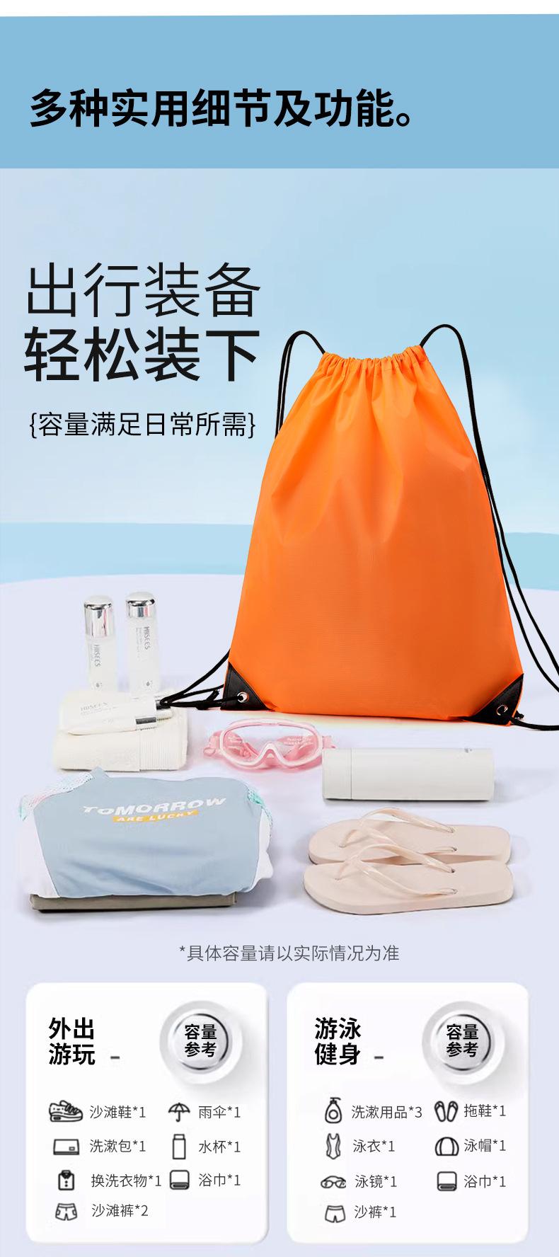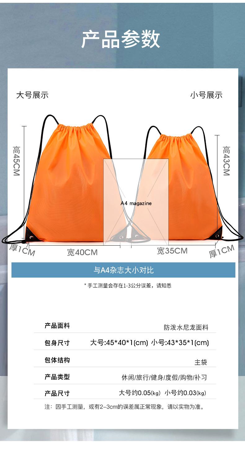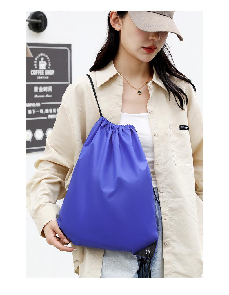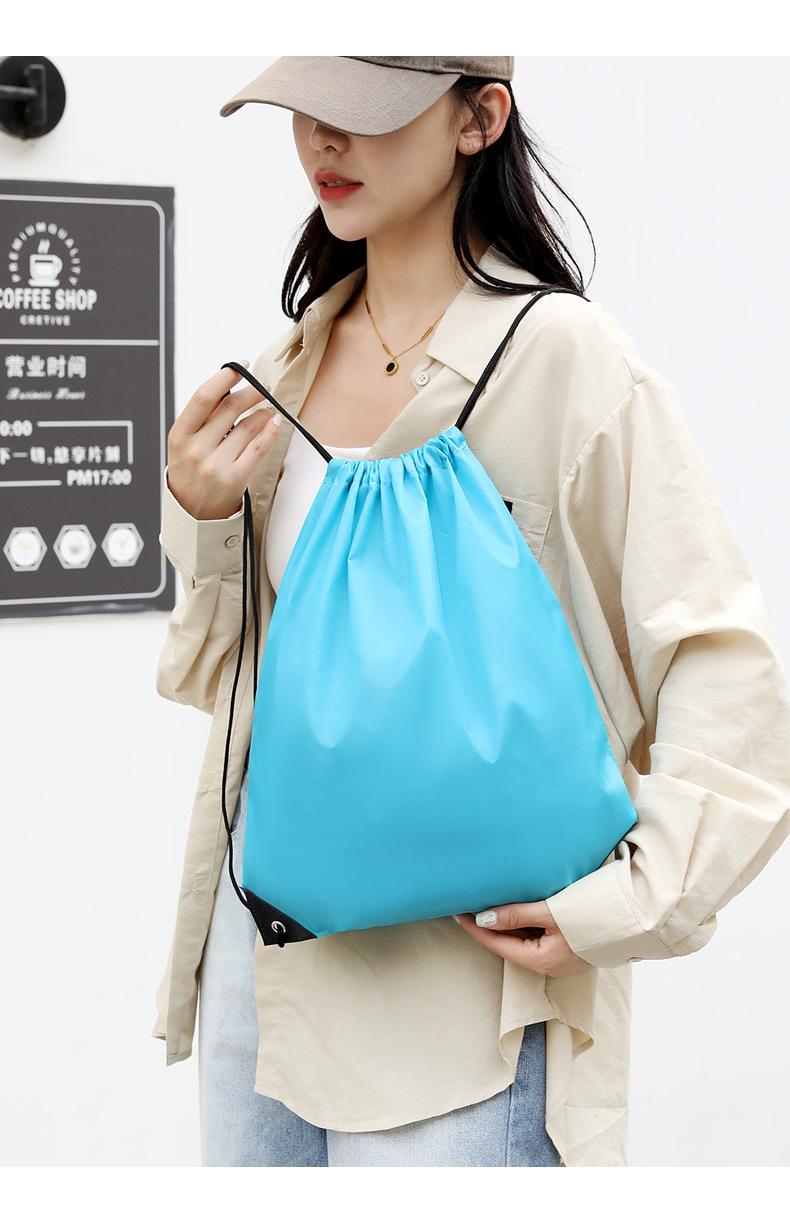 En stock Tela Oxford Venta al por mayor 210D Poliéster Bolsillo con cordón Mochila plegable Bolsa de almacenamiento para eventos deportivos