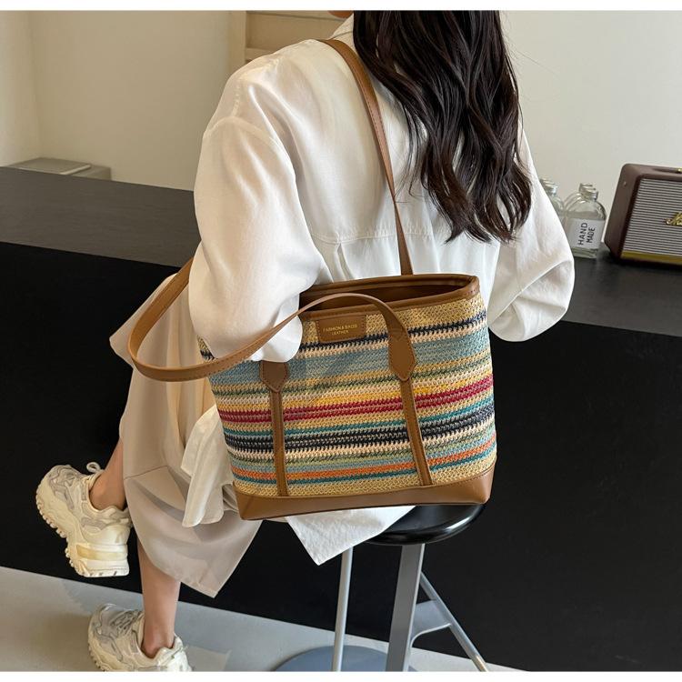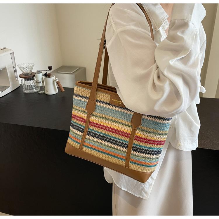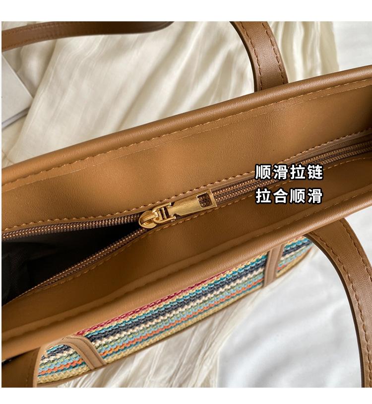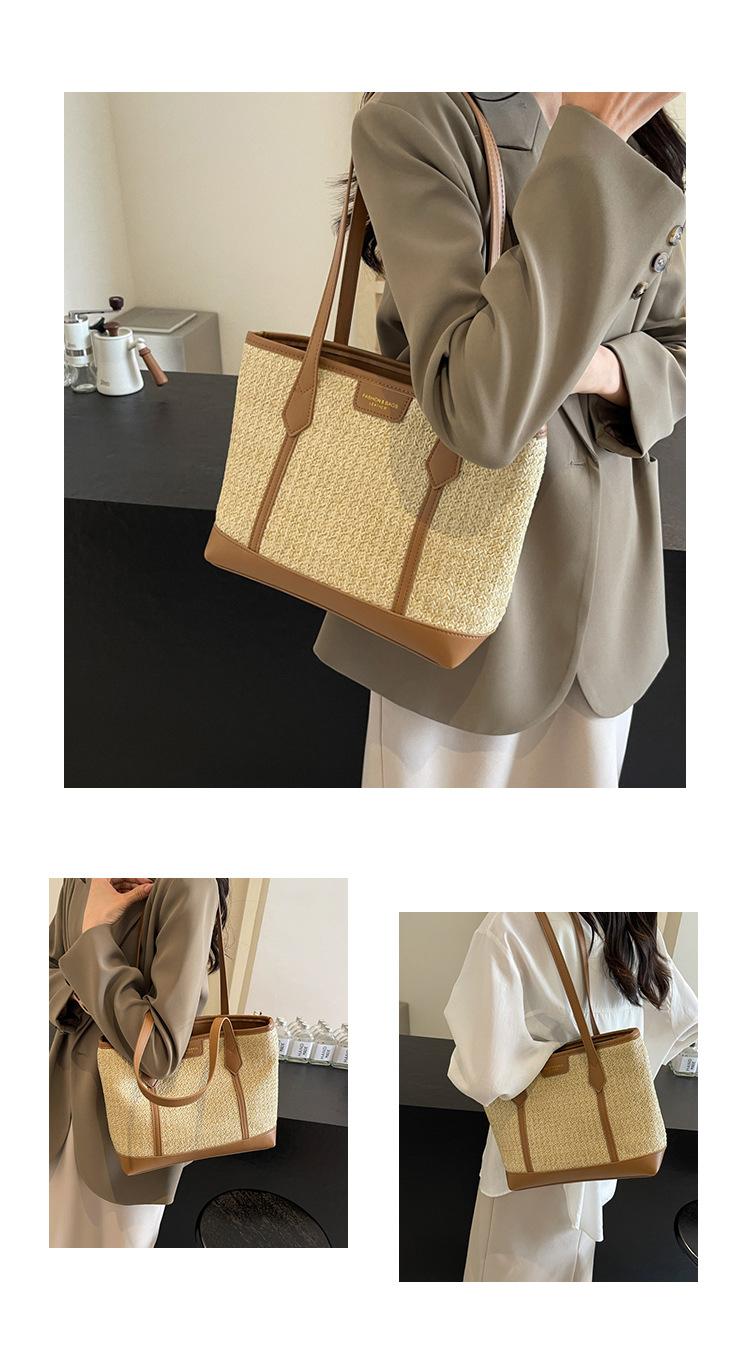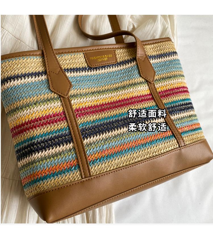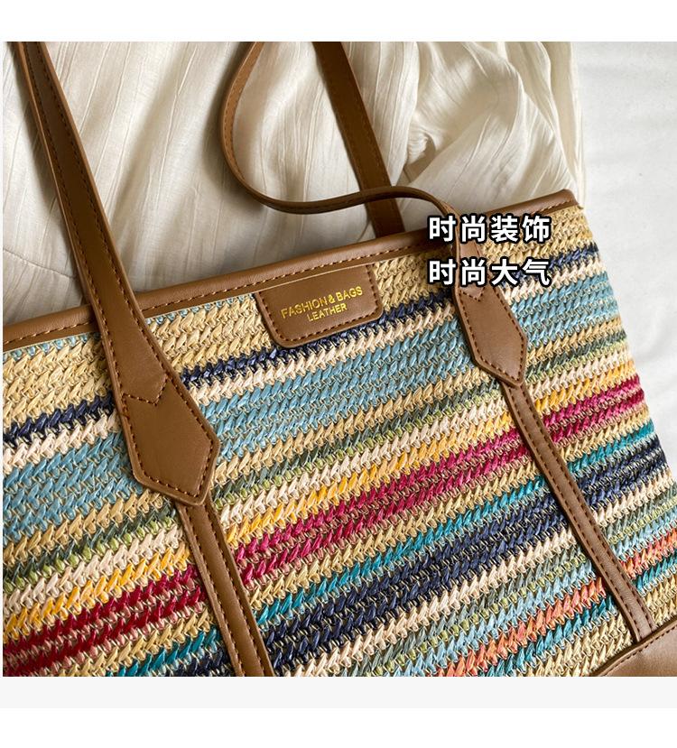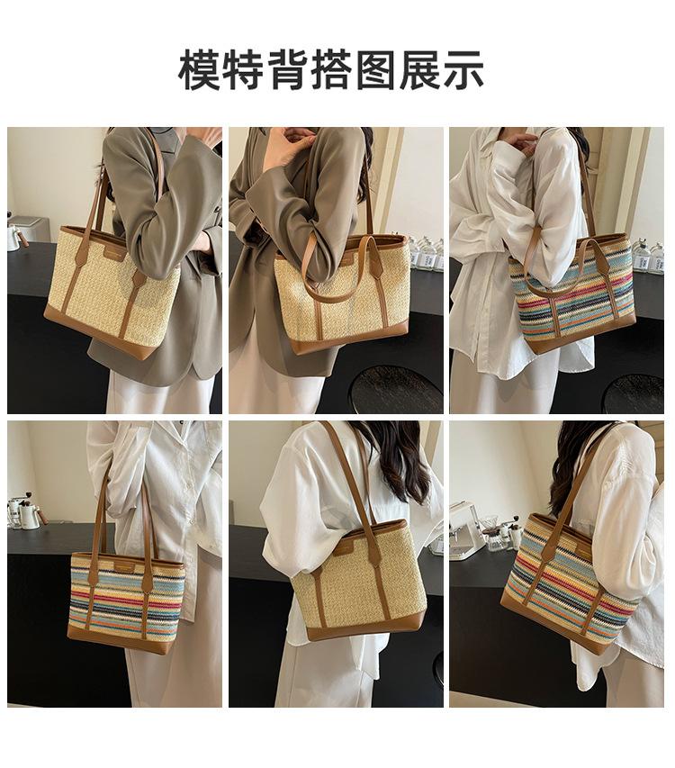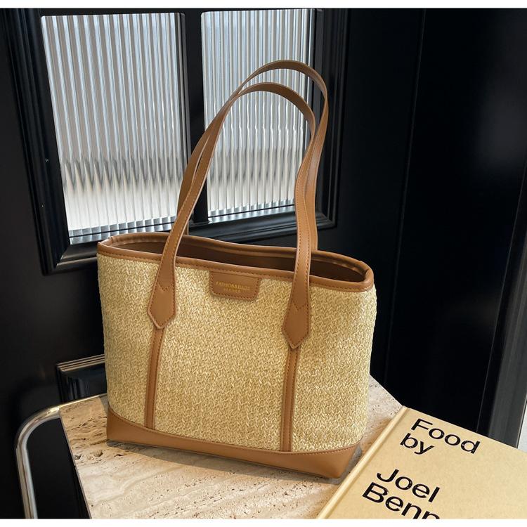 Bolso de Paja Tejido a Mano con Costuras de Gran Capacidad para Mujer, Moda de Verano, Casual, Bolso Tejido, Playa Marítima, Hombro, Tote