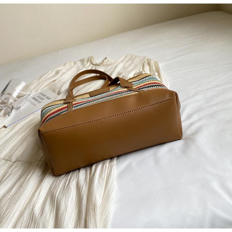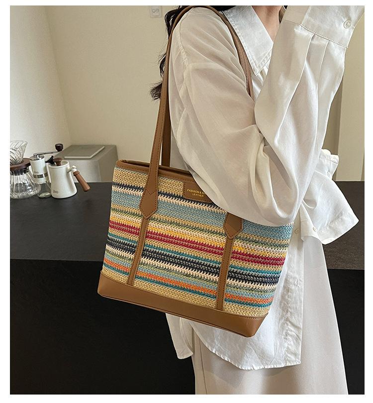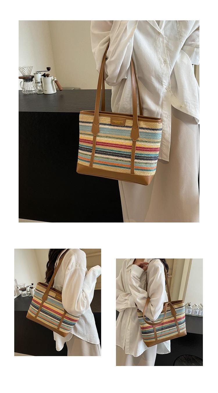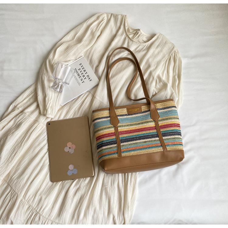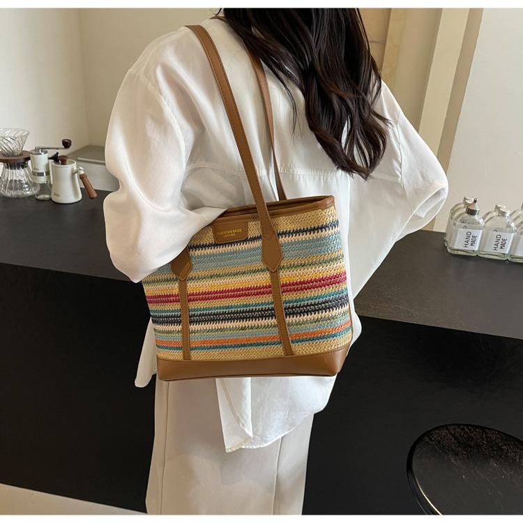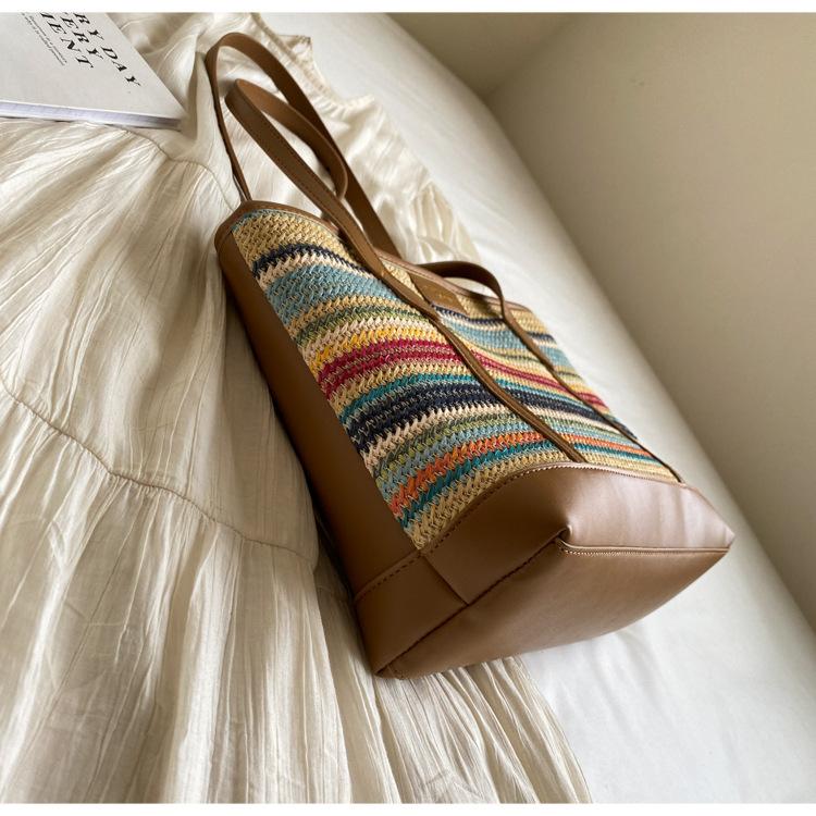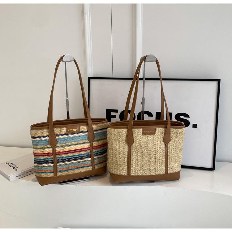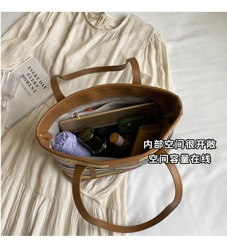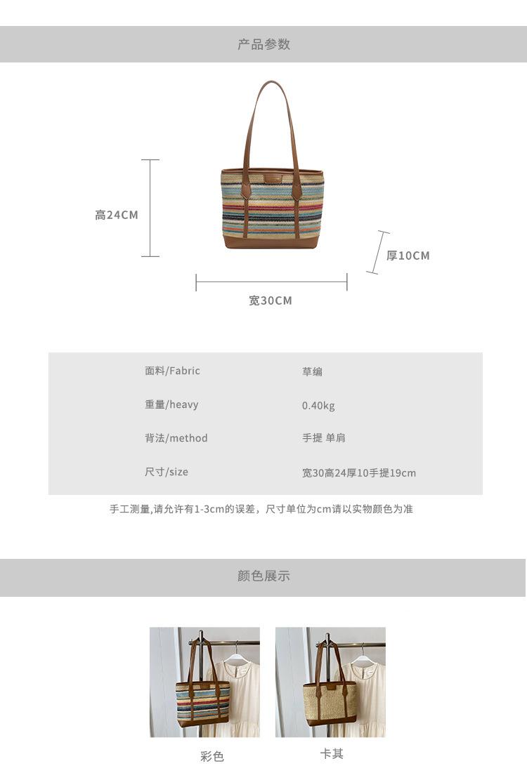 Bolso de Paja Tejido a Mano con Costuras de Gran Capacidad para Mujer, Moda de Verano, Casual, Bolso Tejido, Playa Marítima, Hombro, Tote