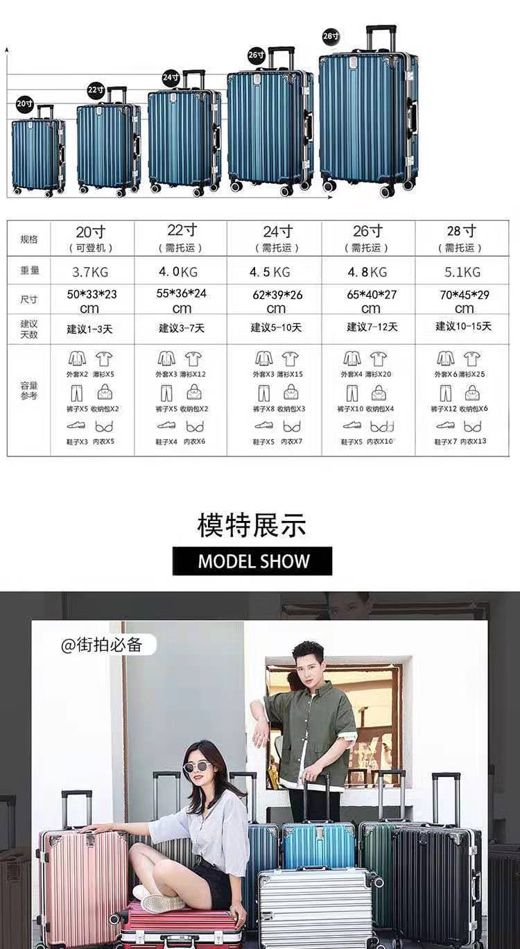 Maleta Trolley con Marco de Aluminio para Mujer, Gran Capacidad, Duradera, Ruedas Universales de 20 Pulgadas, Maleta con Código de Embarque para Viaje para Hombre, 24 Pulgadas