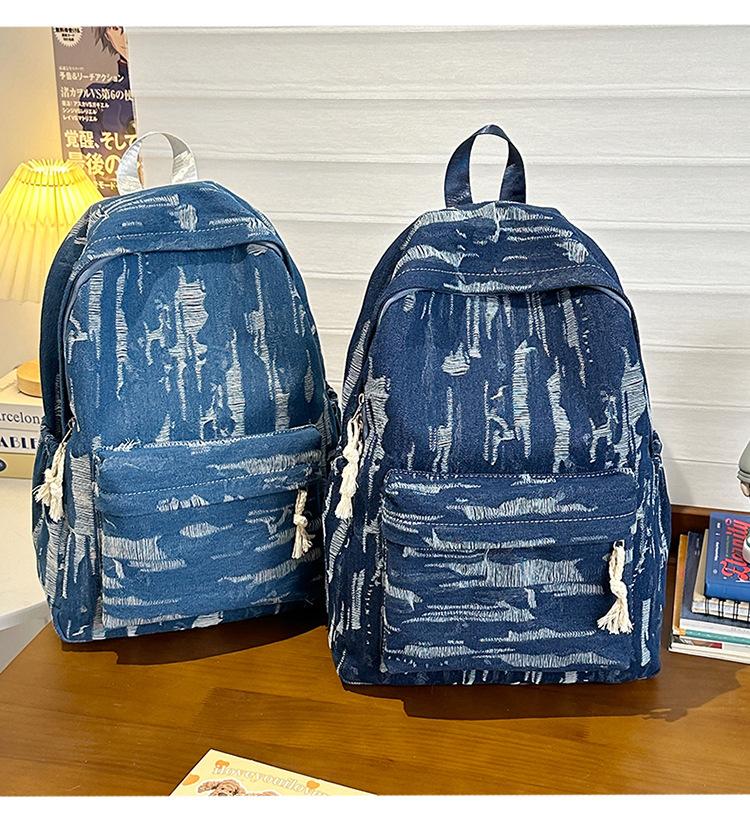 Mochila de Gran Capacidad Mochila Estudiante Moda Simple Denim Mochila Escolar Mochila Linda Unisex Casual
