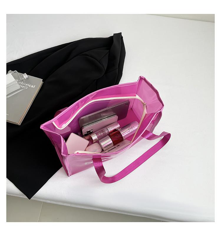 Bolsa de Gelatina de Verano para Mujer 2025 Nueva Transparente Portátil Trabajo Combinable Gran Capacidad Bolso de Hombro Bolso Tote