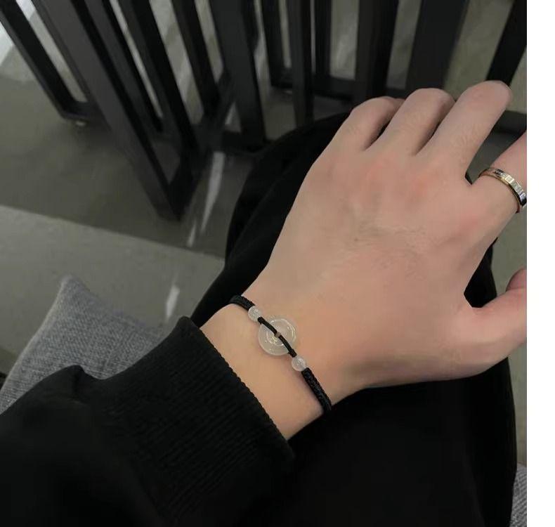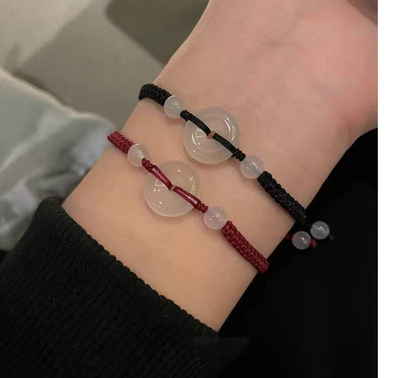 Pulsera de Estilo Nacional de Estilo Chino Nuevo Calcedonia Hebilla de Seguridad Diseño Nicho de Alta Gama para Niños Cuerda Roja para Hombre Cuerda de Mano para Pareja