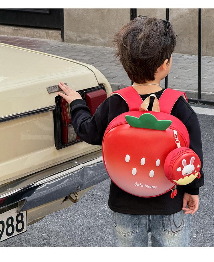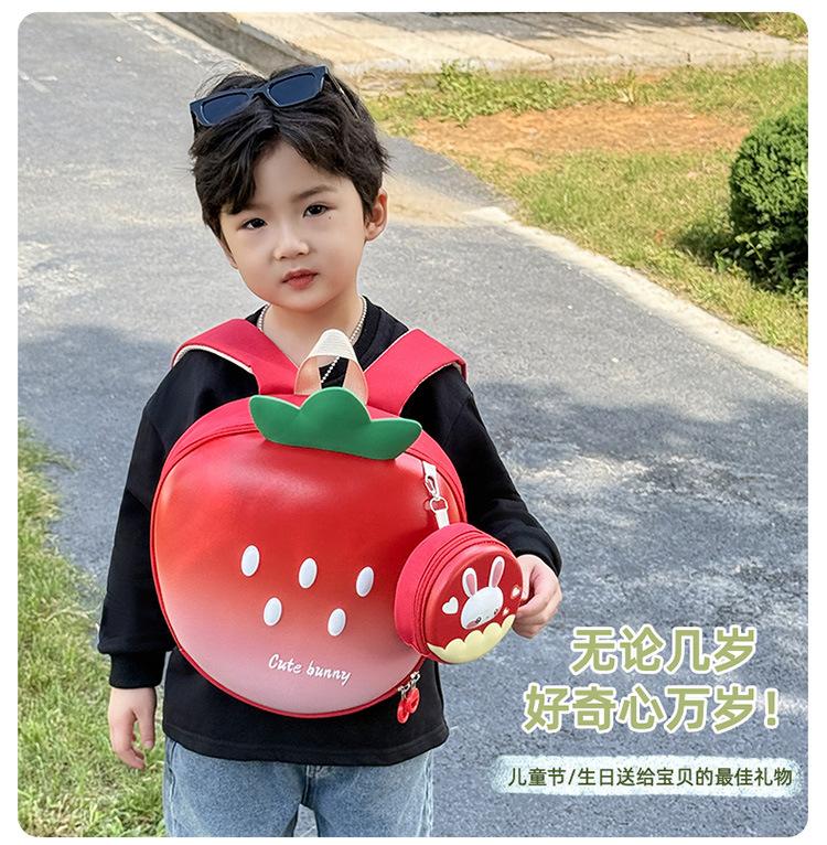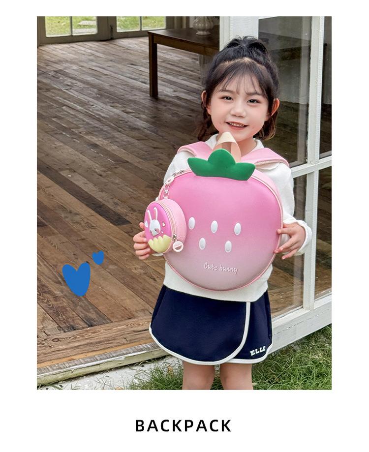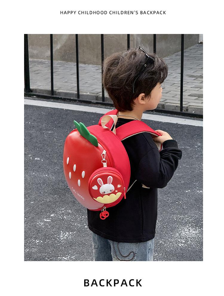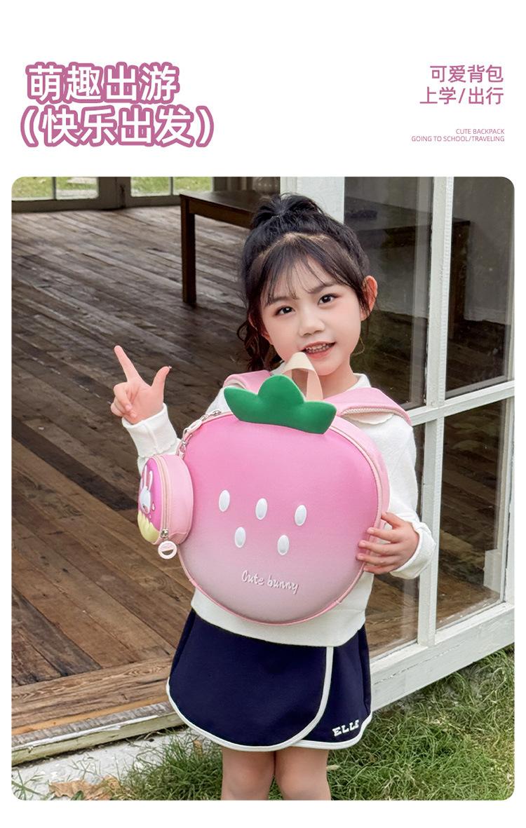 Mochila Infantil Transfronteriza para Jardín de Niños, Mochila Pequeña de Fresa de Dibujos Animados para Niño Bebé, Estilo Occidental para Niña
