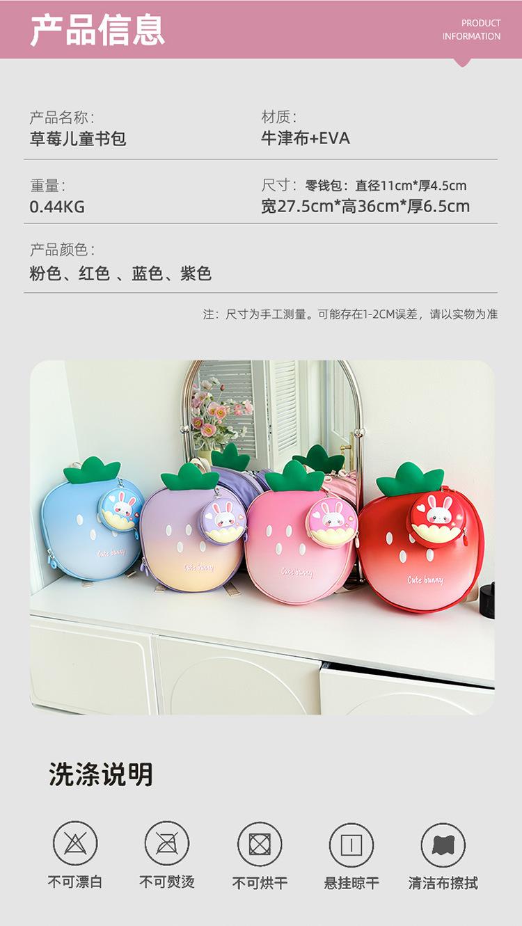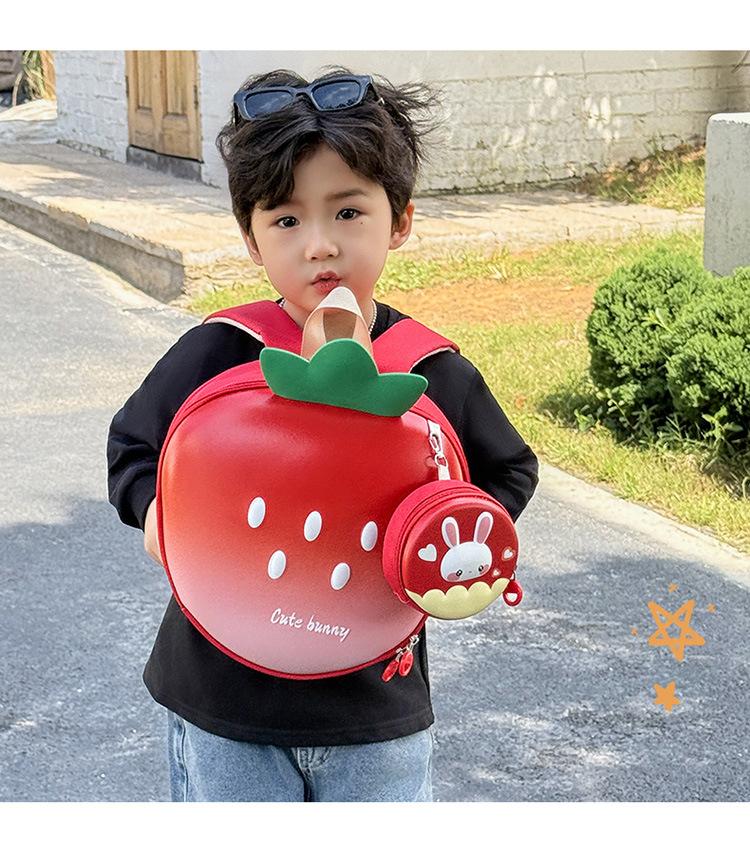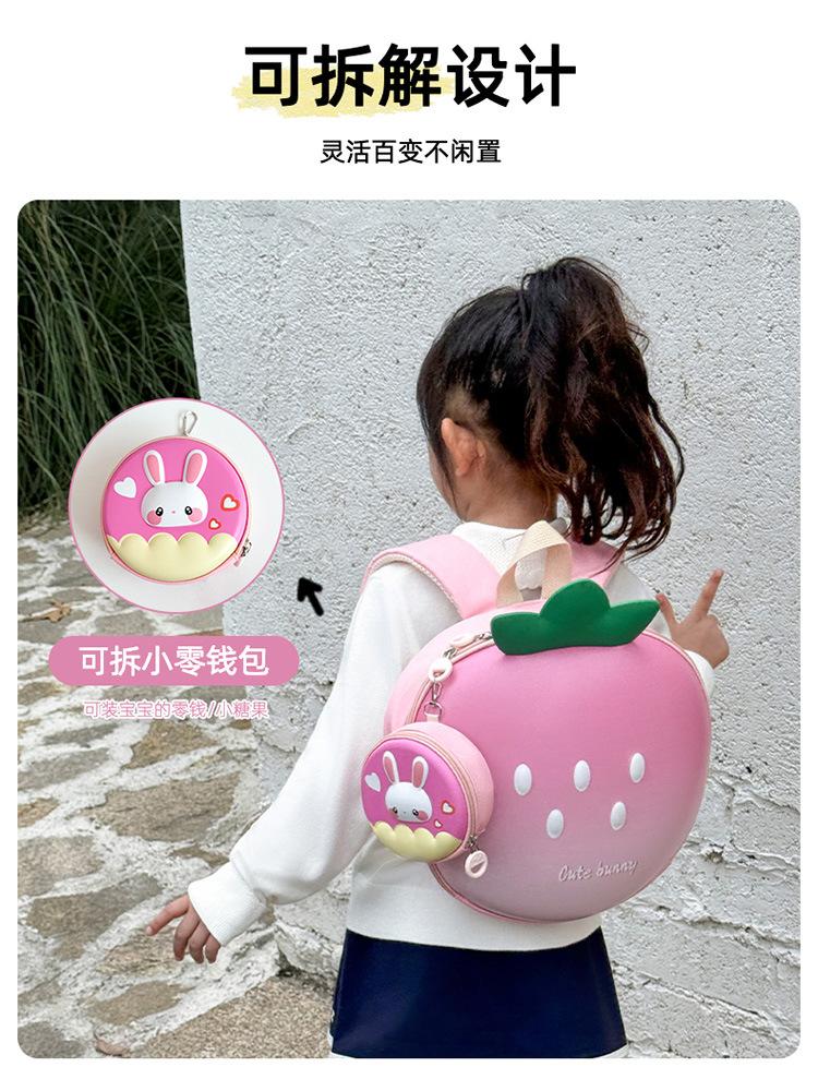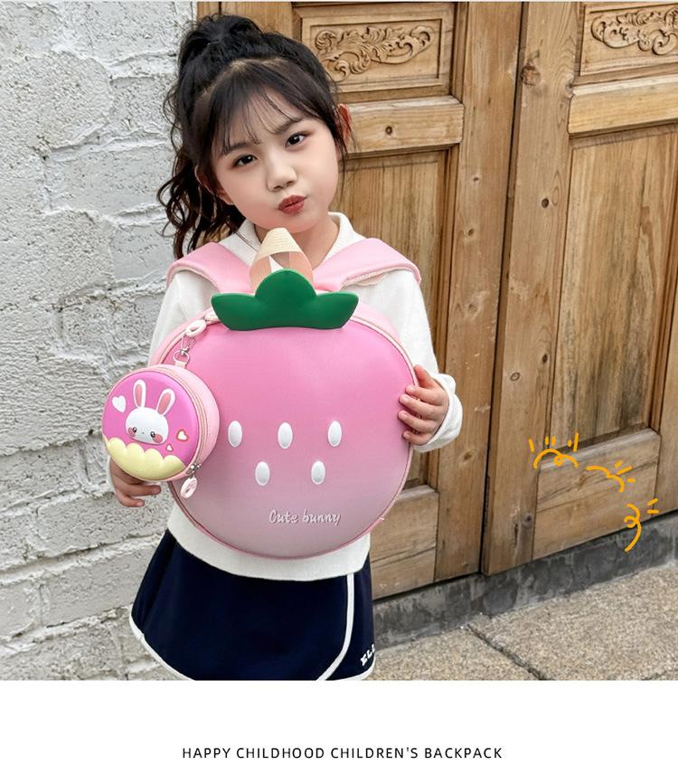 Mochila Infantil Transfronteriza para Jardín de Niños, Mochila Pequeña de Fresa de Dibujos Animados para Niño Bebé, Estilo Occidental para Niña