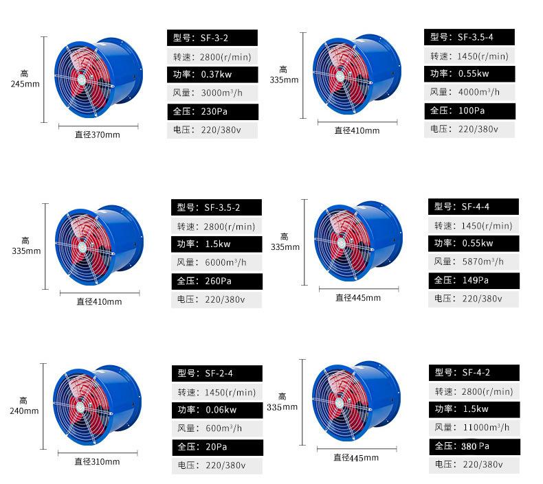 El ventilador axial de bajo ruido SF es un rediseño de las aspas y el motor basado en el ventilador original de nuestra empresa. Tiene las características de bajo ruido, gran volumen de aire, alta presión de aire, bajo aumento de temperatura del motor y funcionamiento equilibrado. Puede utilizarse ampliamente en alimentación, medicina, metalurgia, centrales eléctricas, transporte, almacenes de grano, tabaco y otros lugares de trabajo. Nuestra empresa fabrica estrictamente los ventiladores según los requisitos de producción de motores a prueba de explosiones, y el grado de aislamiento alcanza el grado F. Mediante la mejora de la carcasa y la tecnología, se mejora el rendimiento de sellado del motor, por lo que este producto puede utilizarse en entornos relativamente húmedos o de alta temperatura.Uso (la temperatura no puede exceder los 60℃)