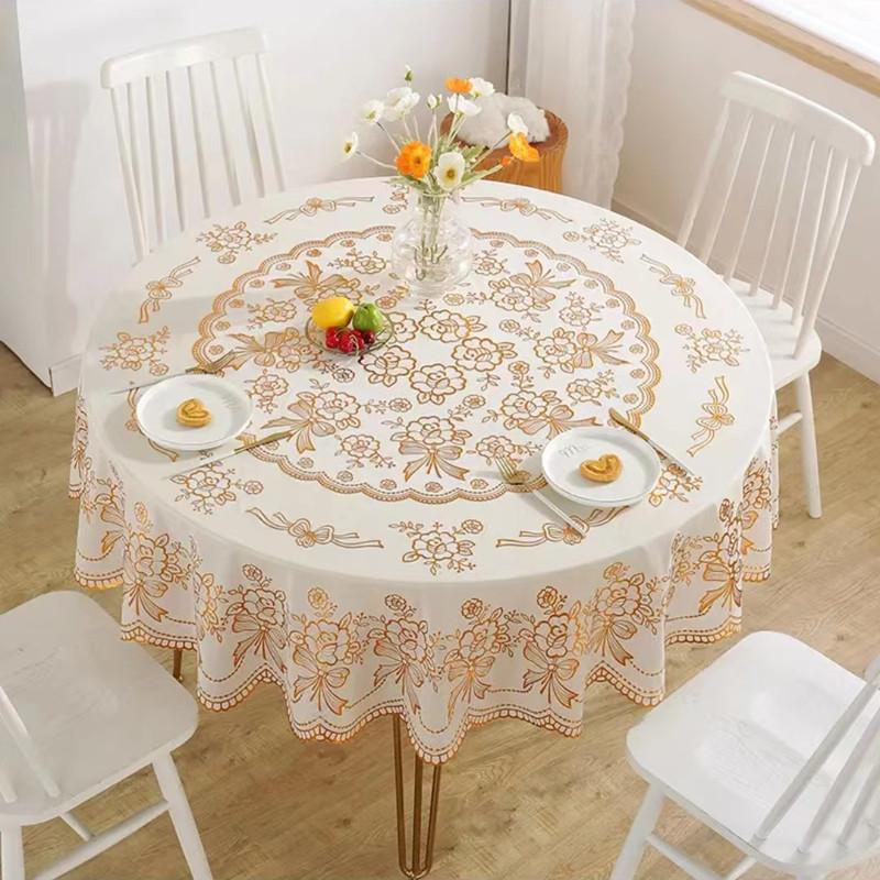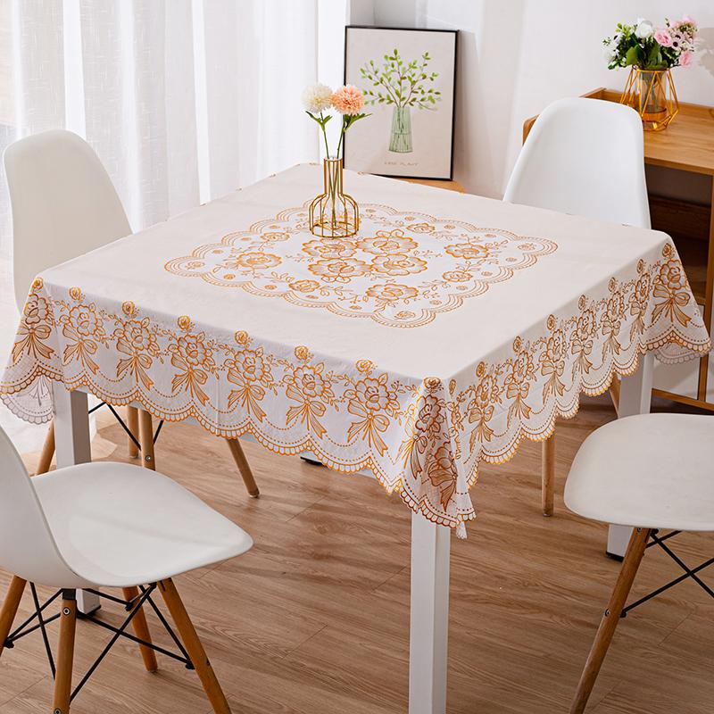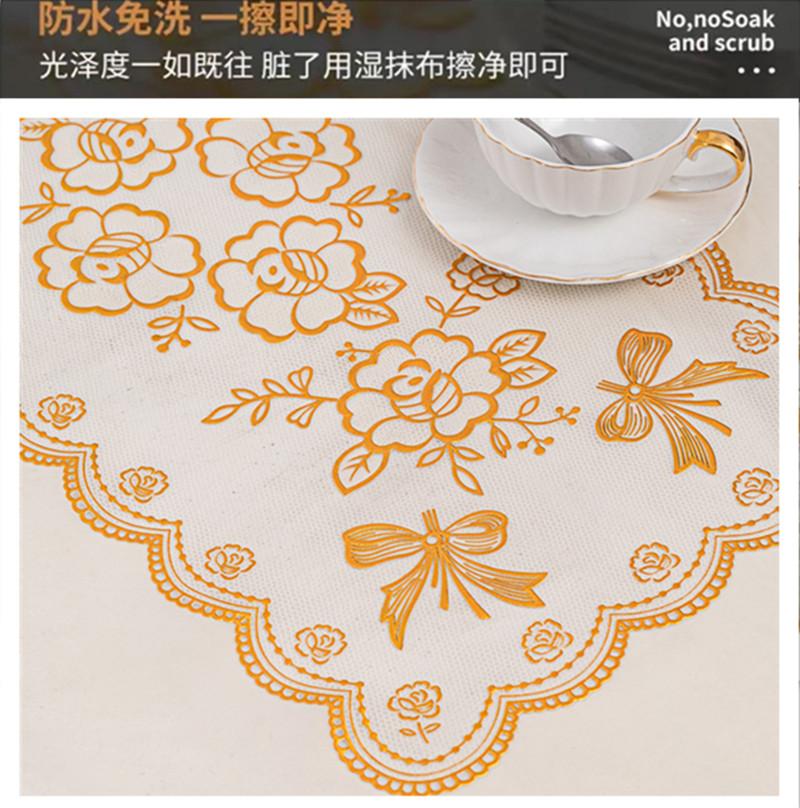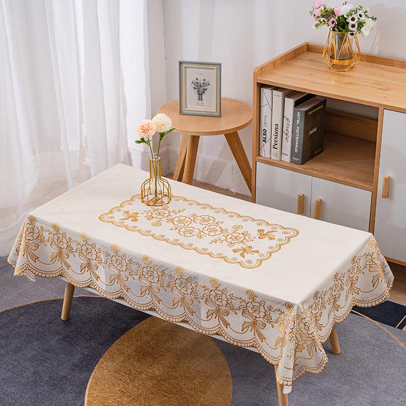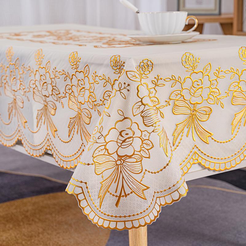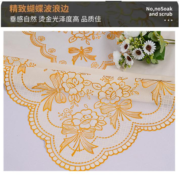 Mantel bronceado mejorado, impermeable y resistente al aceite, lavable, rectangular, de PVC, con encaje para mesa de centro, diseño de flores y mariposas doradas.