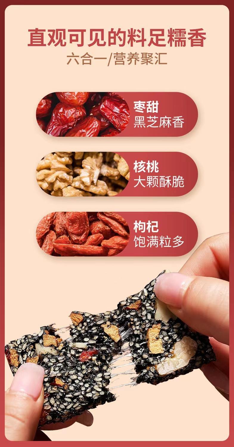 Pastel Suave de Sésamo Negro, Dátiles Rojos, Nuez al Por Mayor Independiente al Vacío Pastel Nutricional 250G/Bolsa Snacks Celebridad de Internet Dropshipping