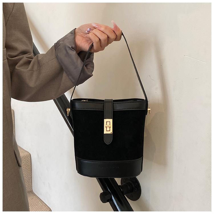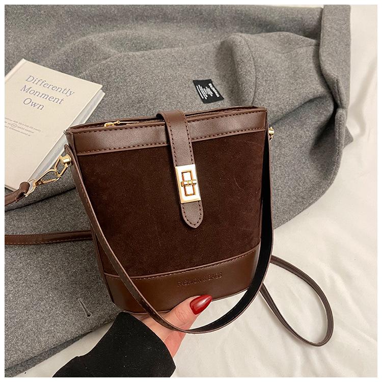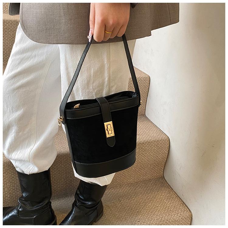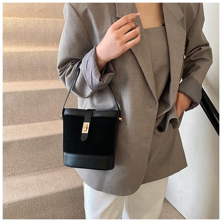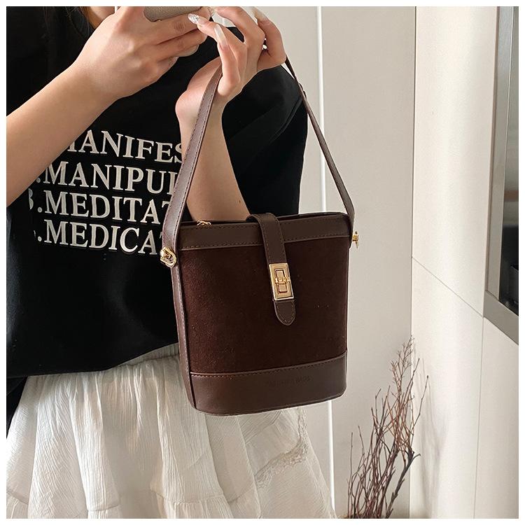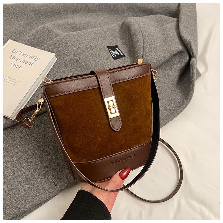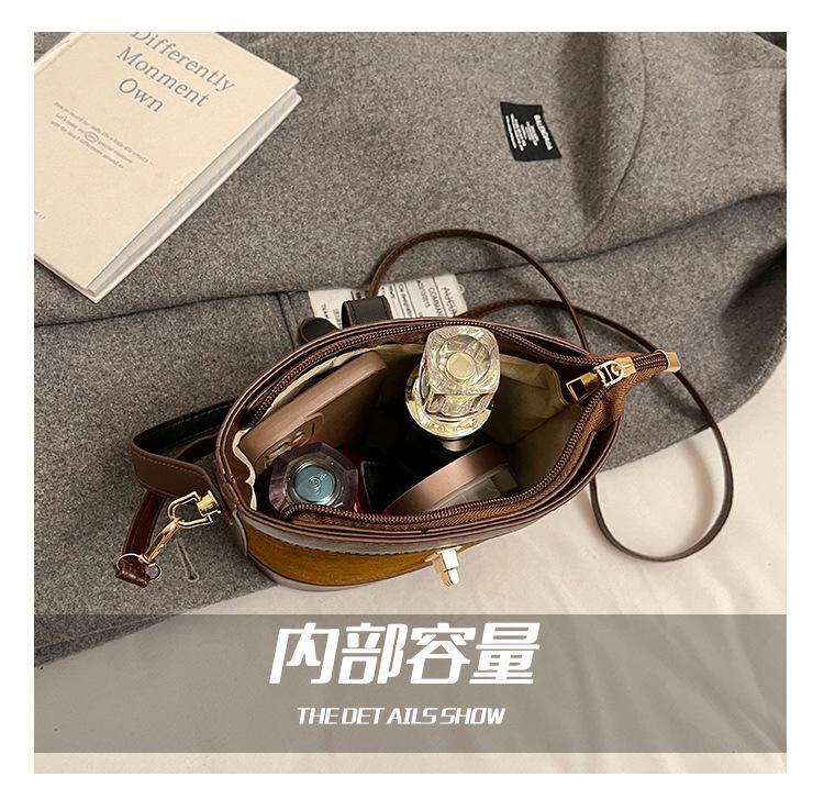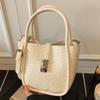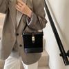 Bolso de mano con costuras en contraste de color para mujer, estilo cubo, bandolera con hebilla, estilo moderno, 2025