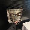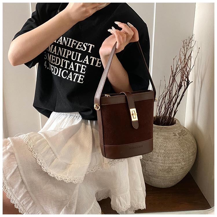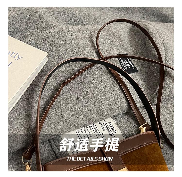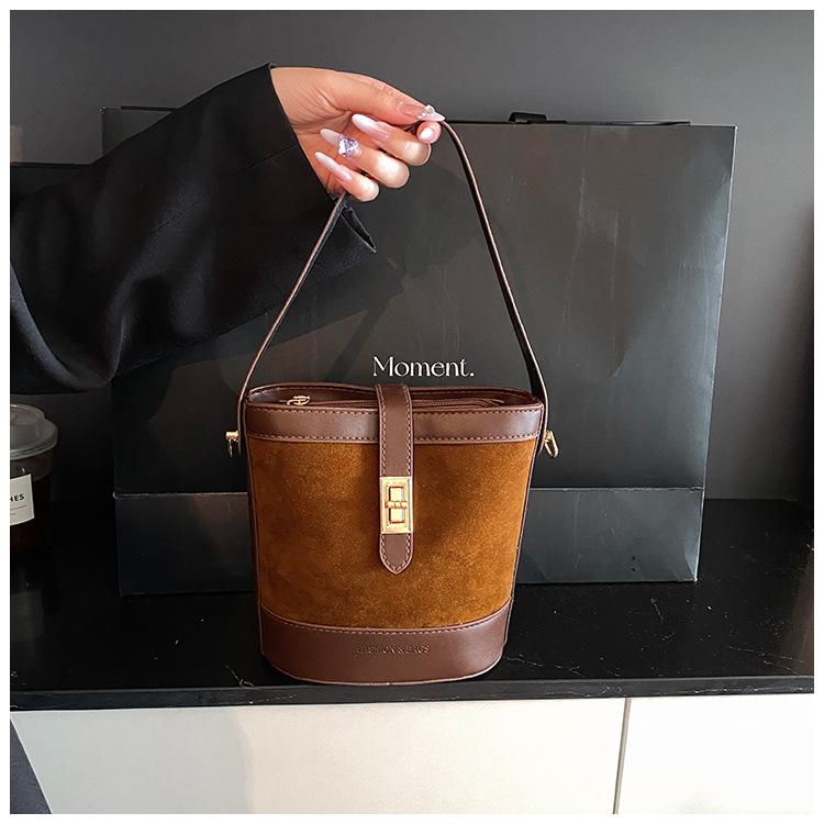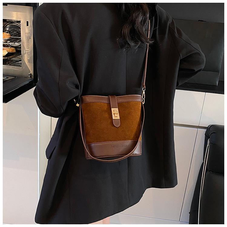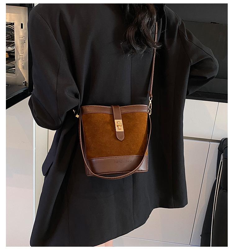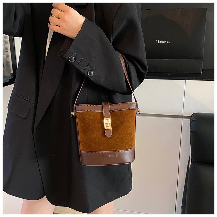 Bolso de mano con costuras en contraste de color para mujer, estilo cubo, bandolera con hebilla, estilo moderno, 2025