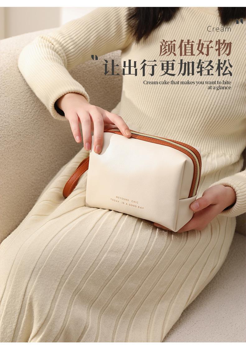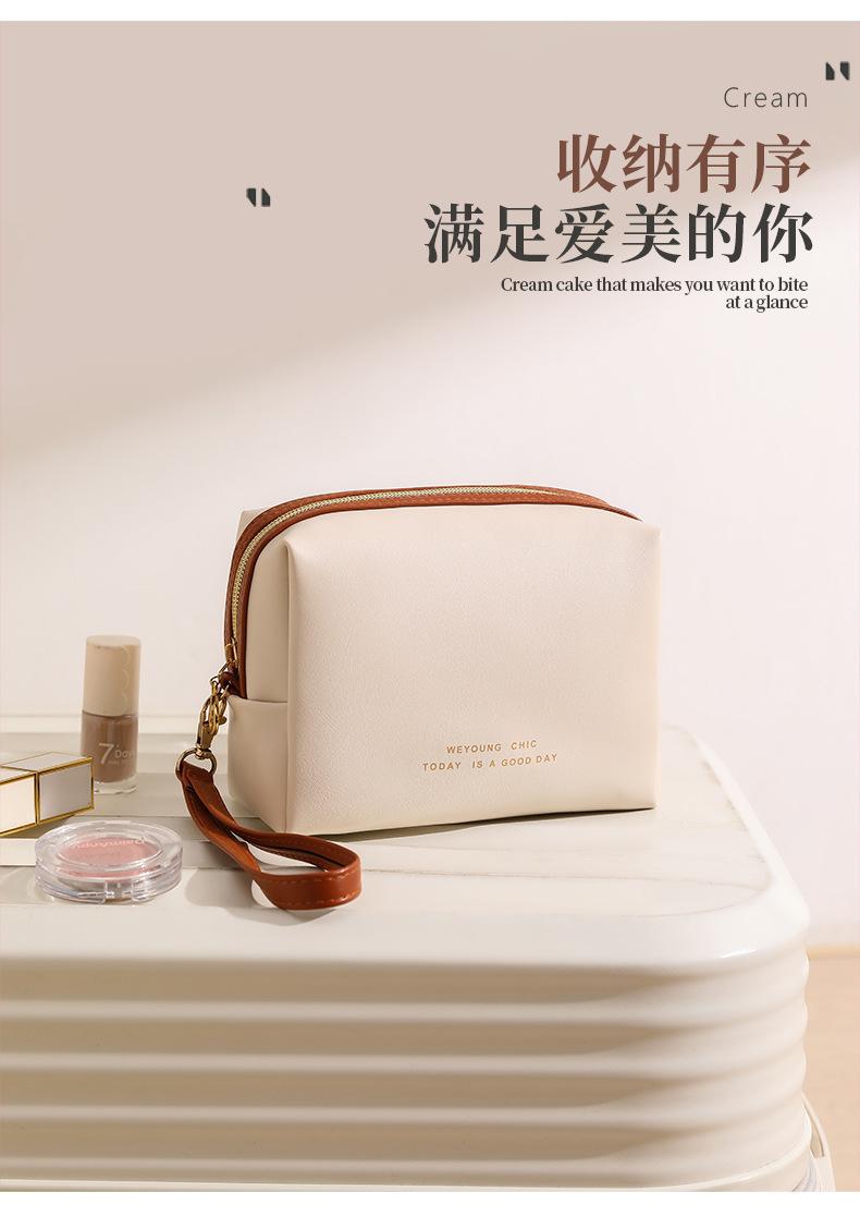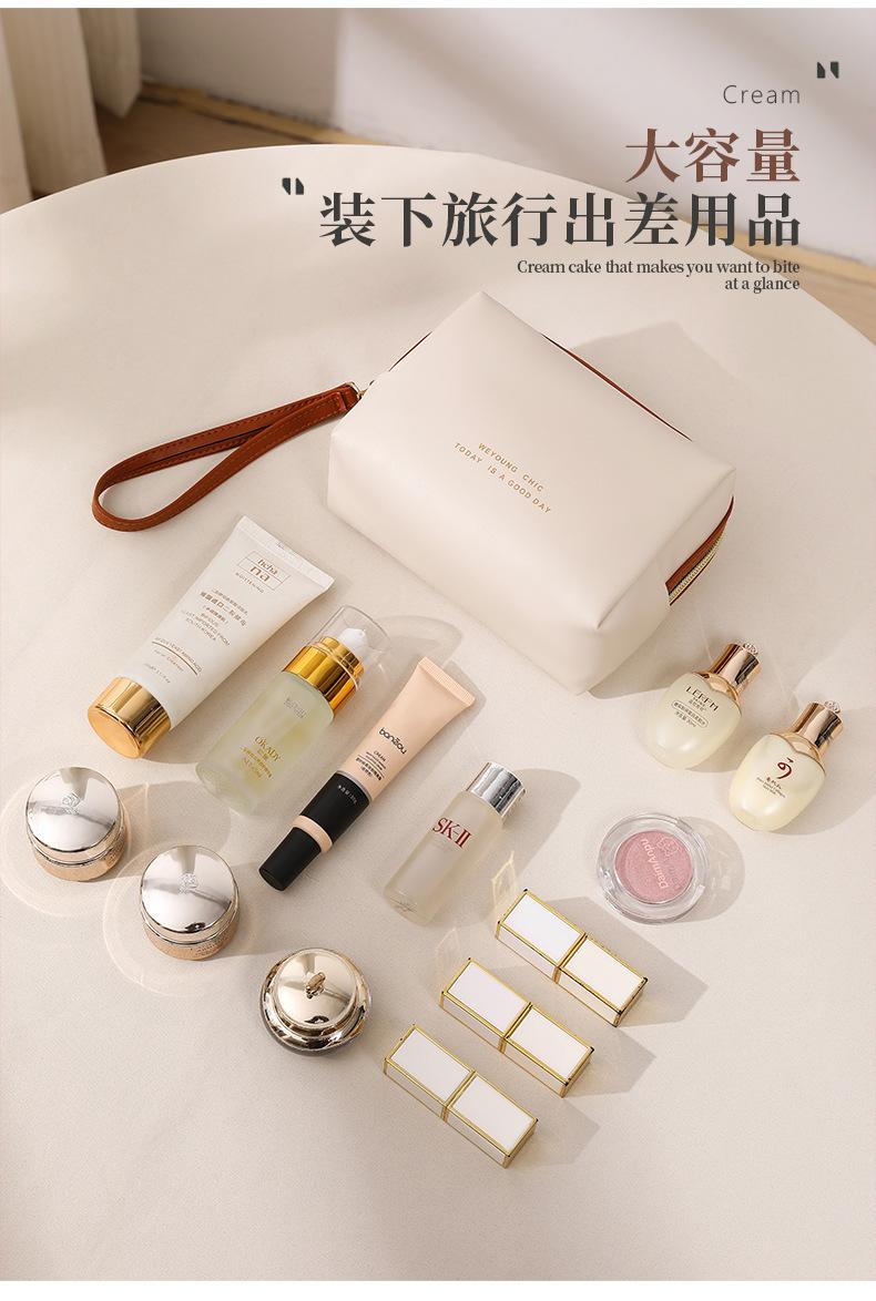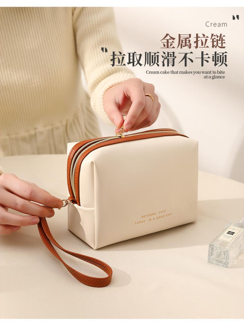 Nueva bolsa de cosméticos de alta calidad de PU para mujer, bolsa de almacenamiento de cosméticos portátil de viaje de doble capa, bolsa de aseo