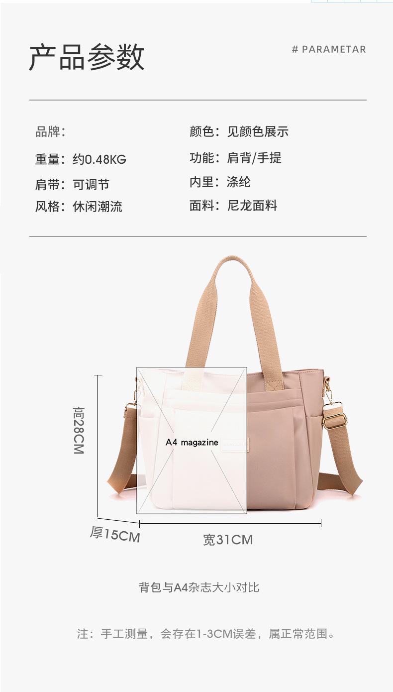 Bolso de hombro grande combinable de verano 2025 para mujer, nuevo bolso de mano sencillo de nailon de gran capacidad y estilo coreano.