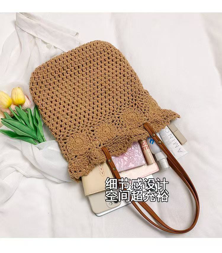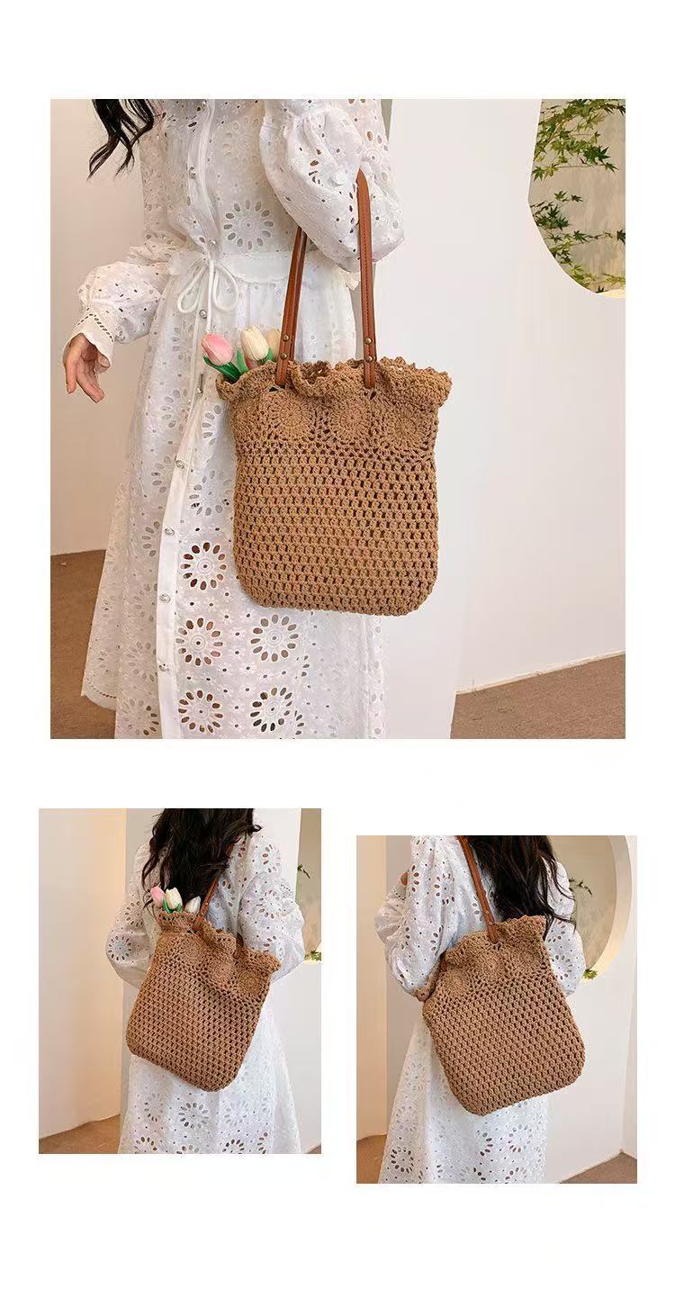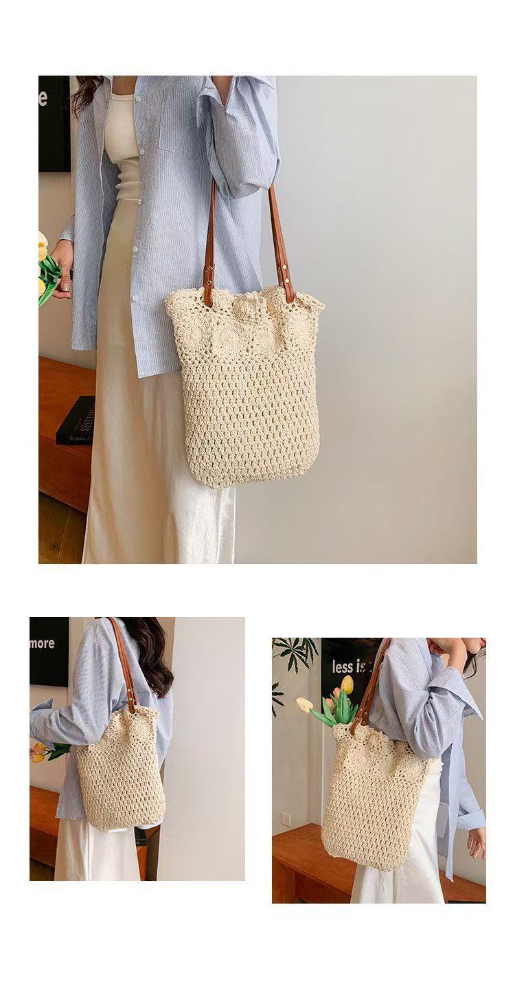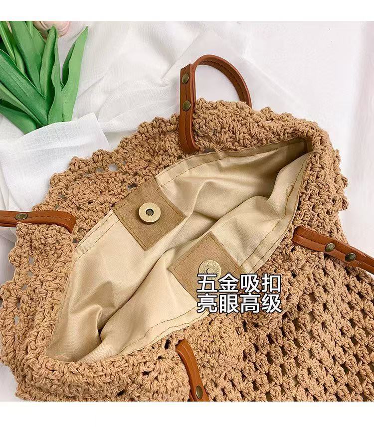 Bolso de hombro de mujer de moda, combinable con todo, tejido de paja de algodón, ideal para vacaciones, viajes, playa, uso diario.