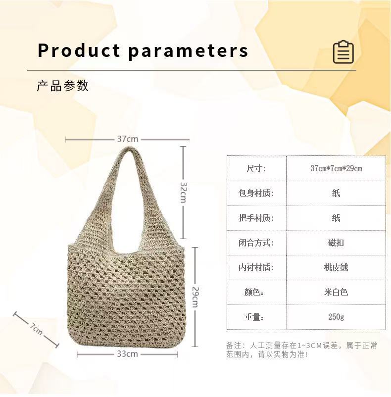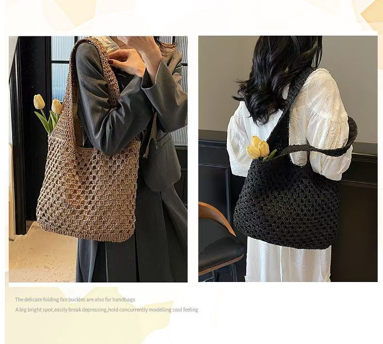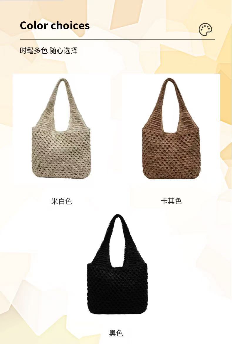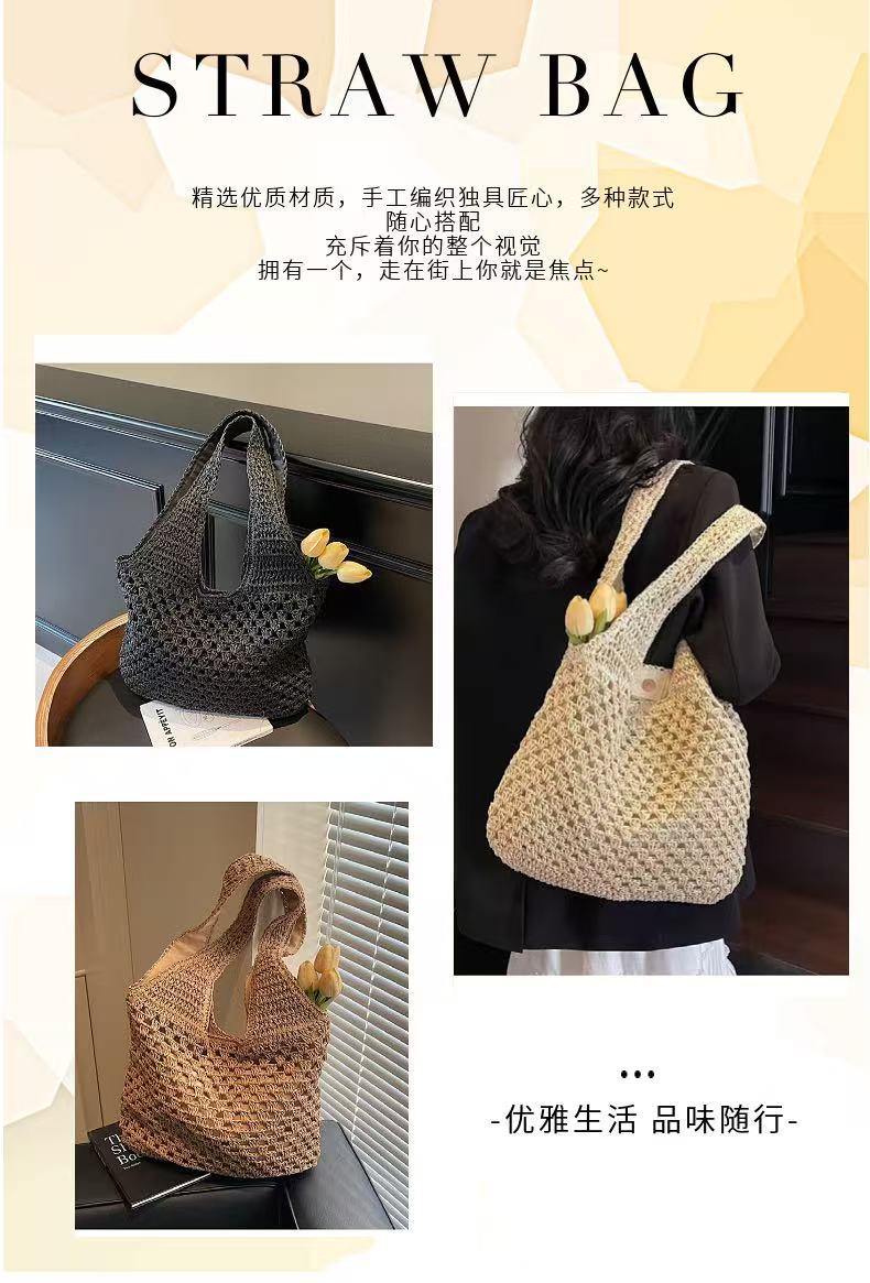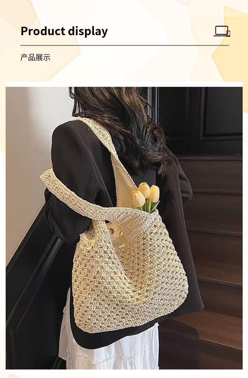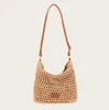 Bolsa de Paja Hueca de un Hombro para Mujer, Versátil Bolsa Nueva Tejida a Mano, Bolso Tote de Gran Capacidad, Bolsa de Playa para Vacaciones en la Costa