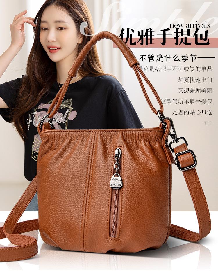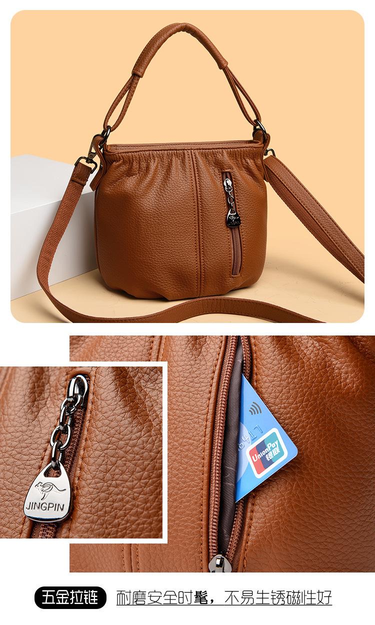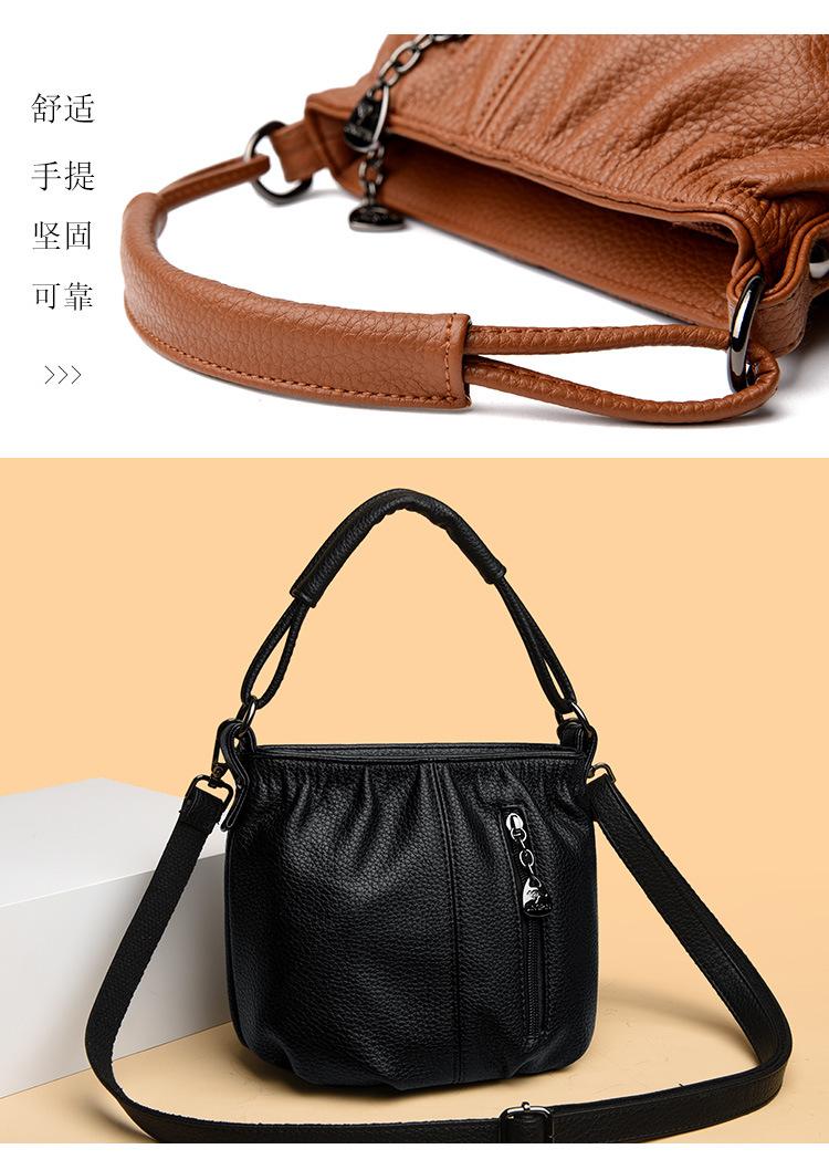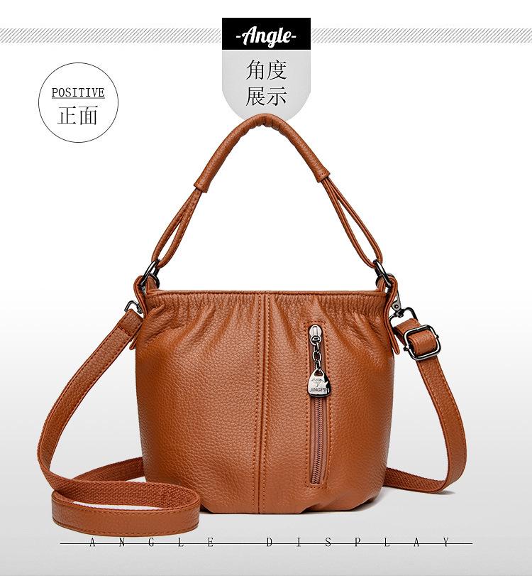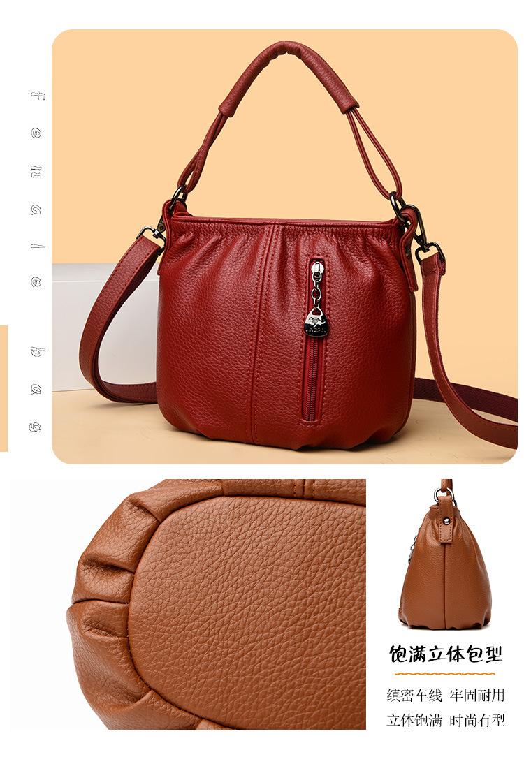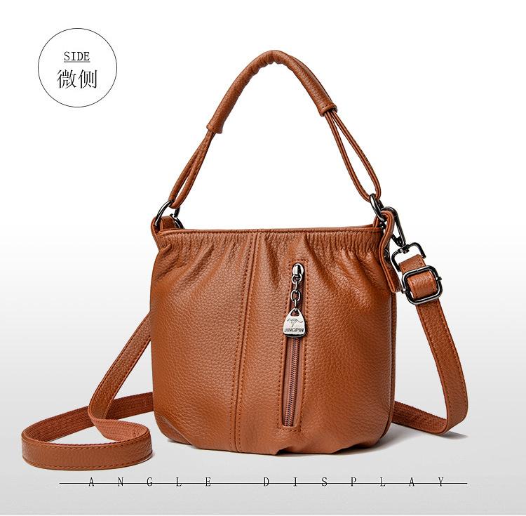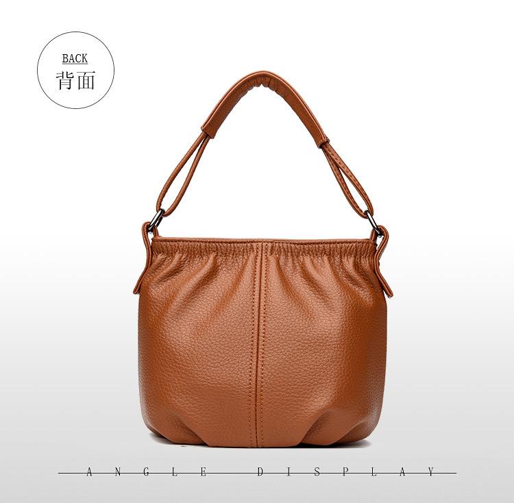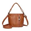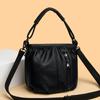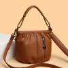 Bolso pequeño tipo cubo de piel suave para mujer, estilo vintage, plisado, para madres de mediana edad, informal, de primavera, combinable con todo, bandolera de hombro para mujer.
