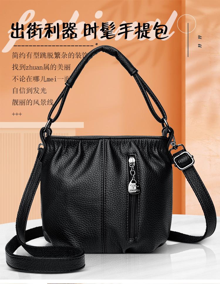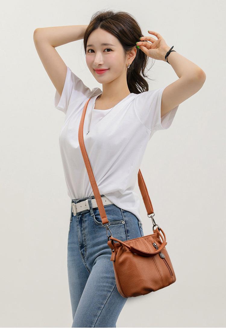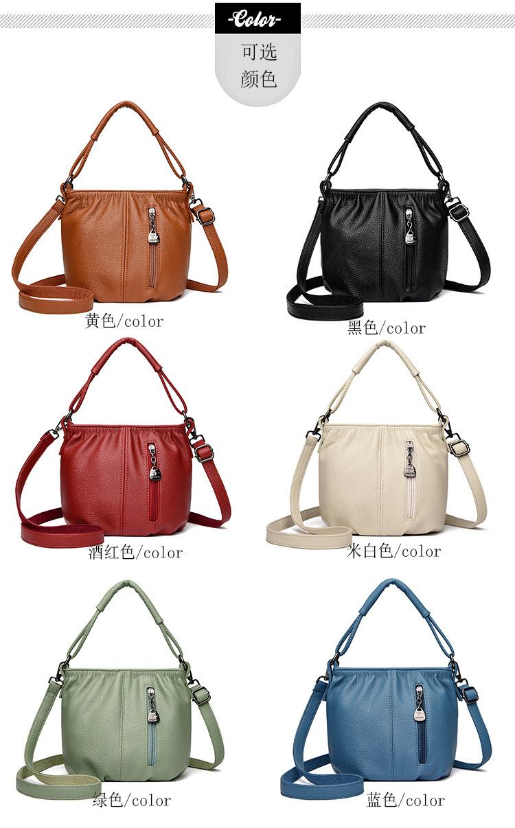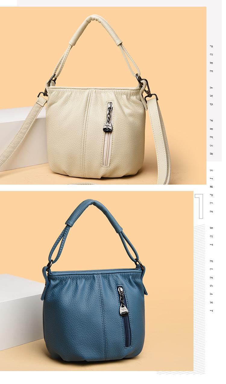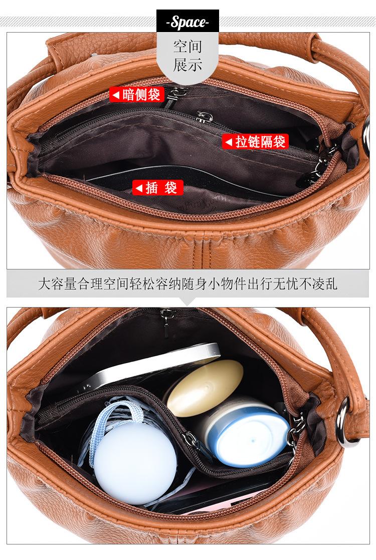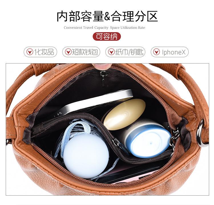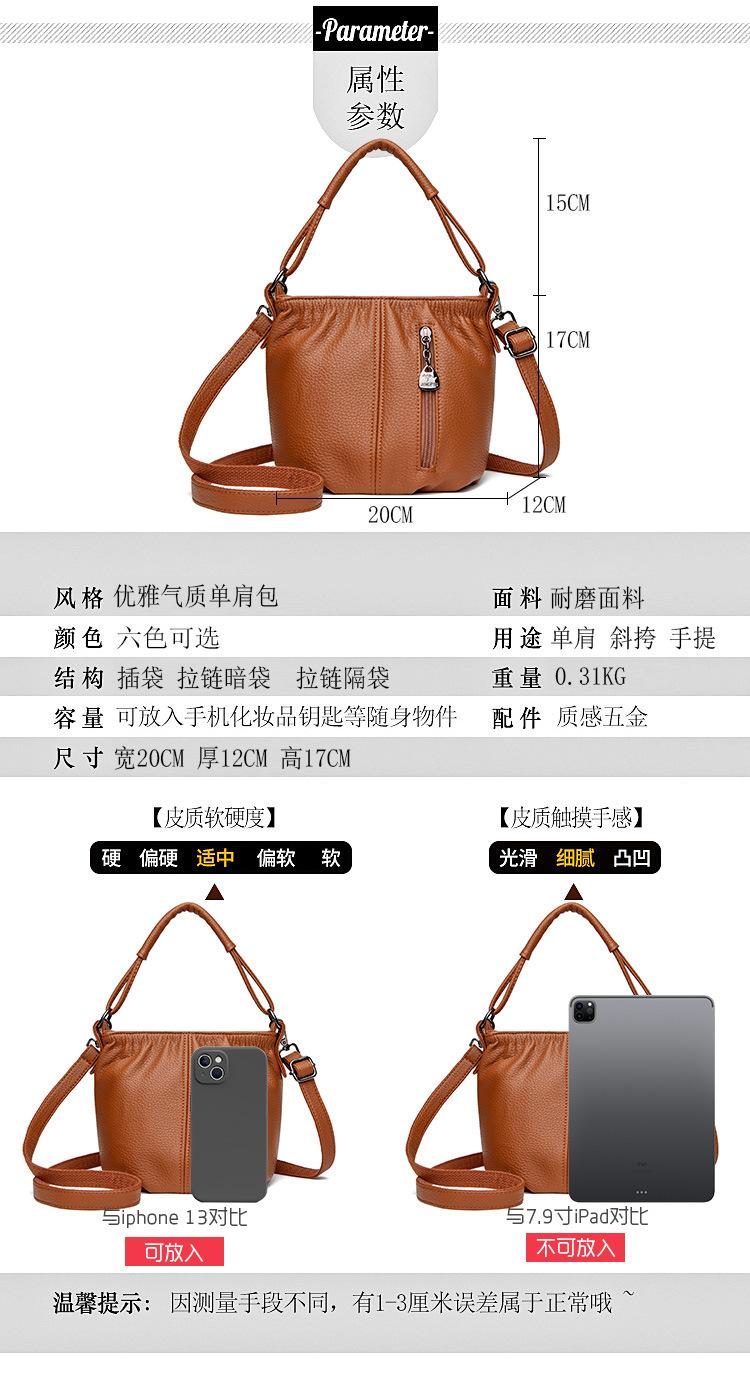 Bolso pequeño tipo cubo de piel suave para mujer, estilo vintage, plisado, para madres de mediana edad, informal, de primavera, combinable con todo, bandolera de hombro para mujer.