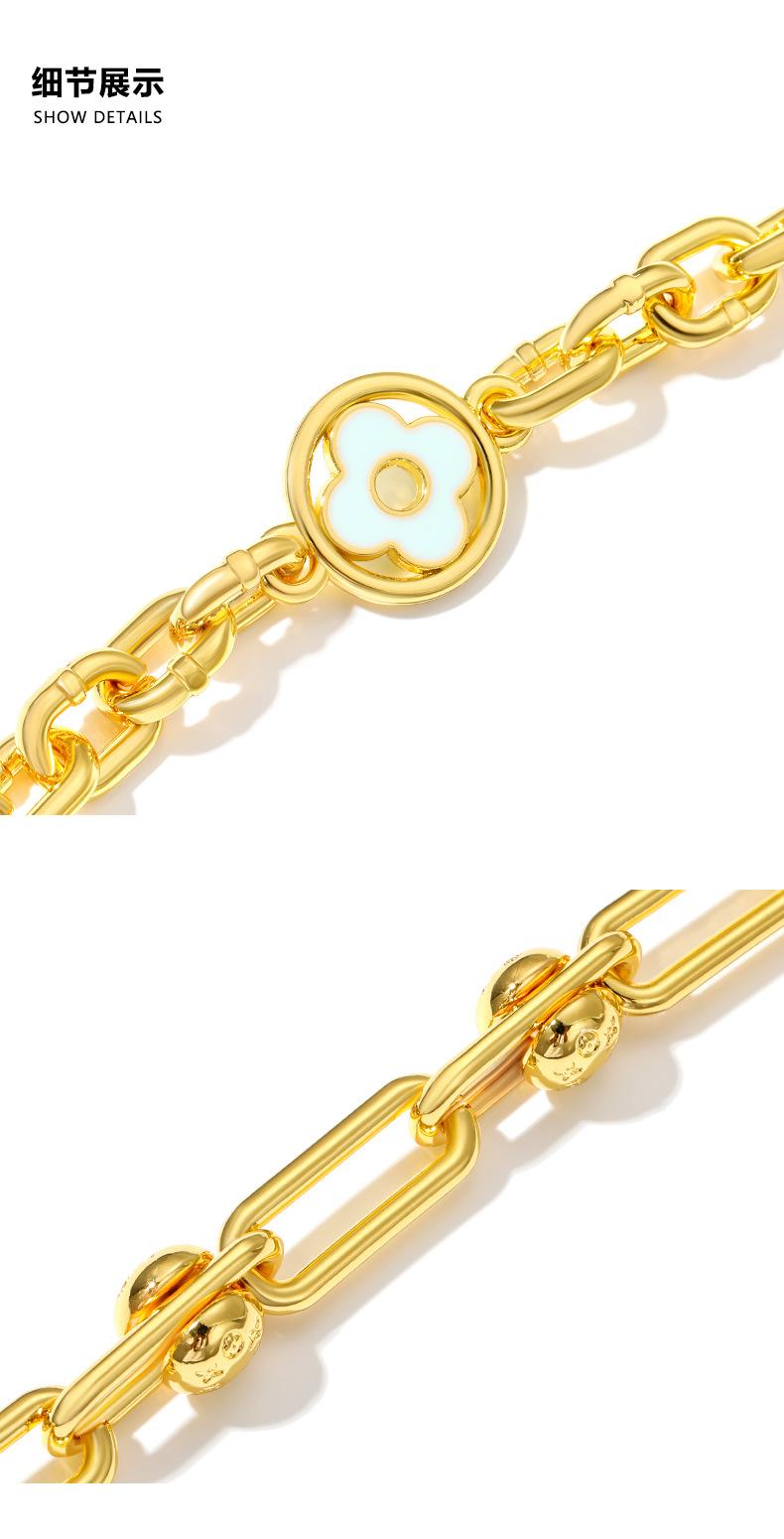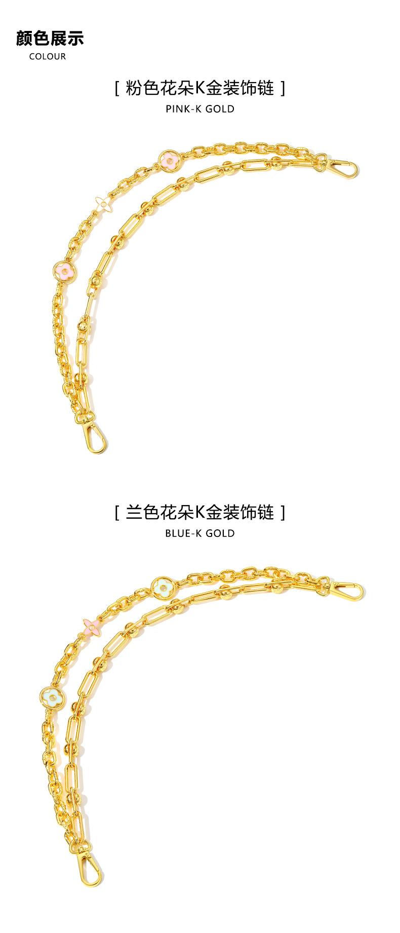 H-129 pink flower k gold decorative chain 46cm, H-129 blue flower k gold decorative chain 46cm