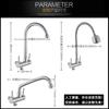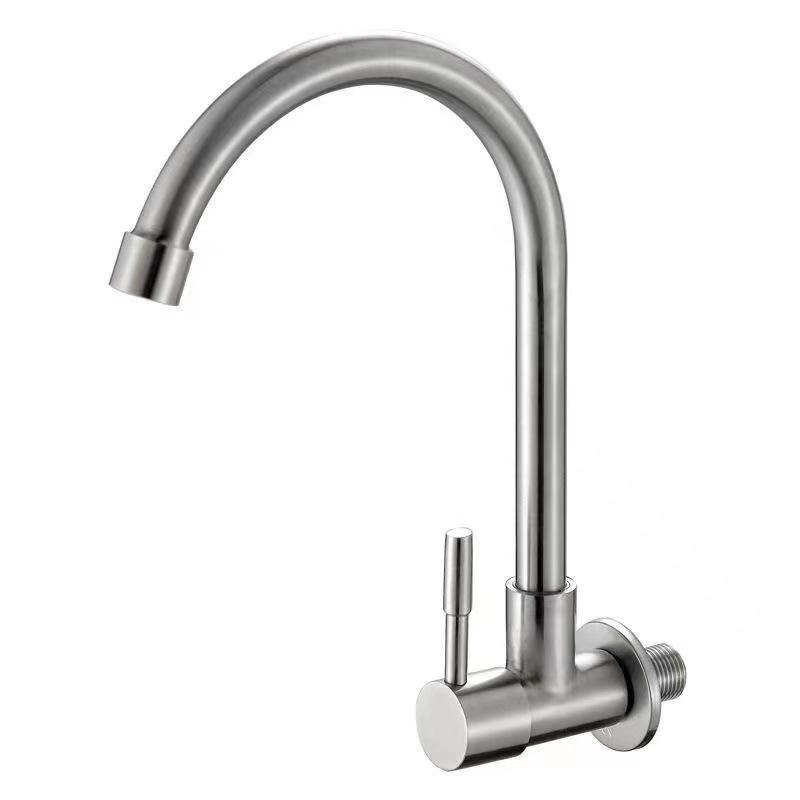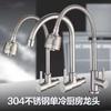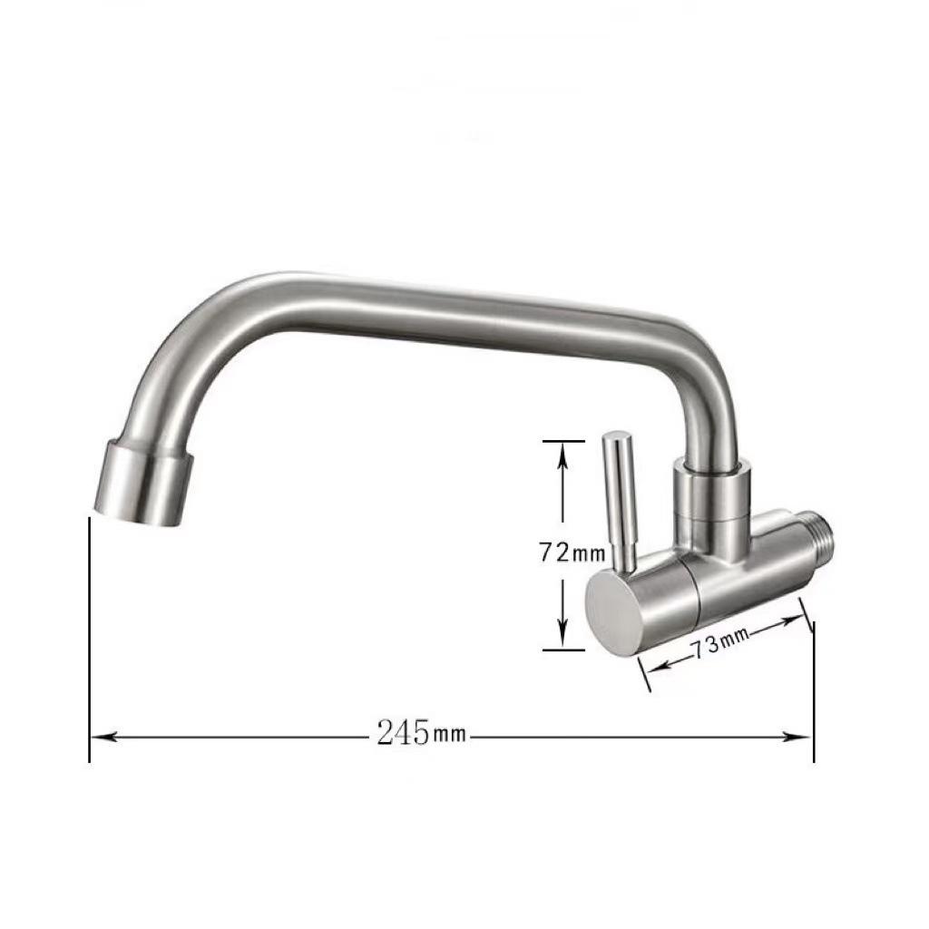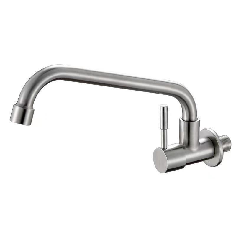 Grifo de agua fría individual de acero inoxidable 304 para cocina, balcón, lavadero, fregadero individual, grifo de pared giratorio 360 grados