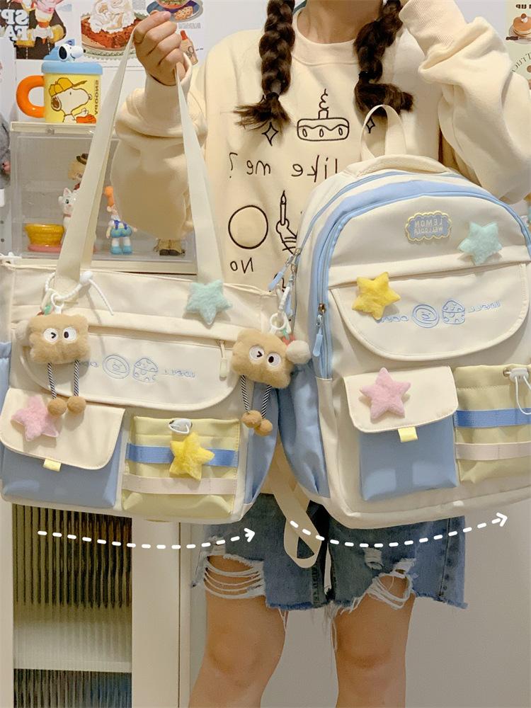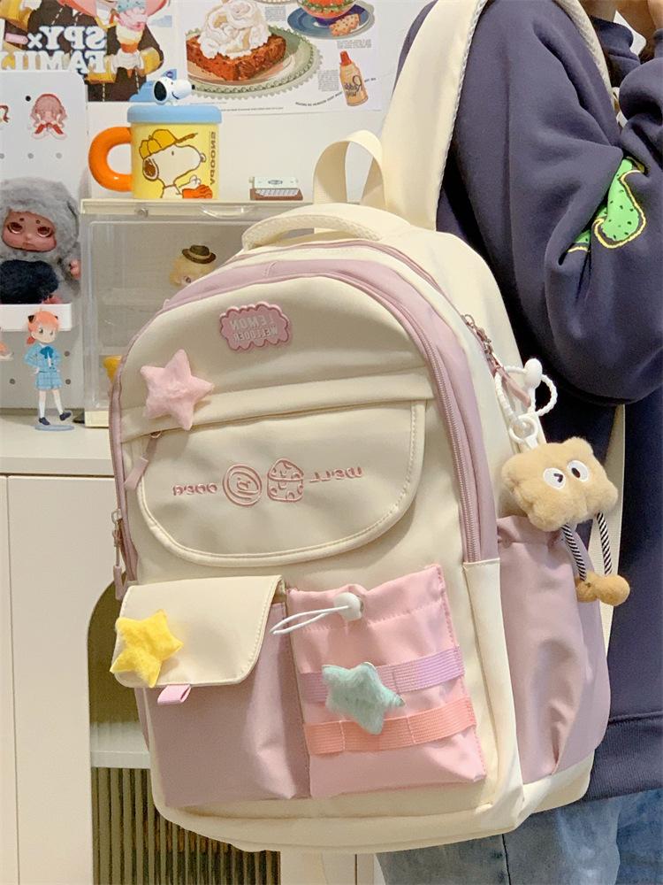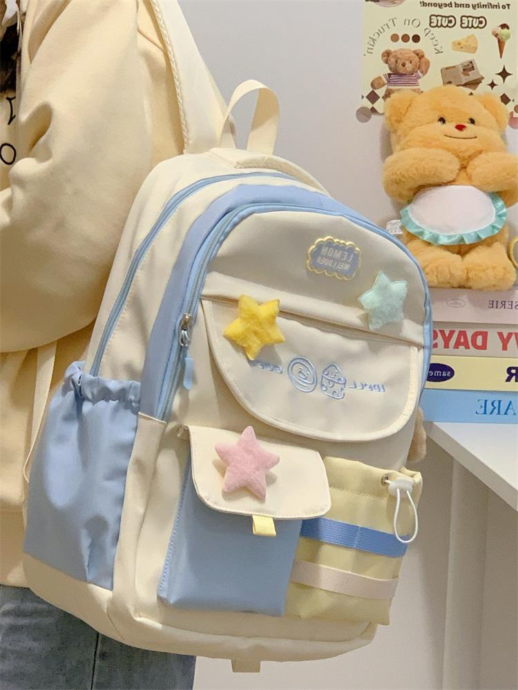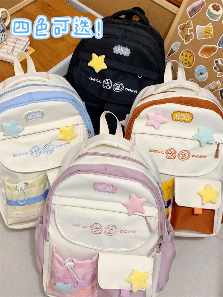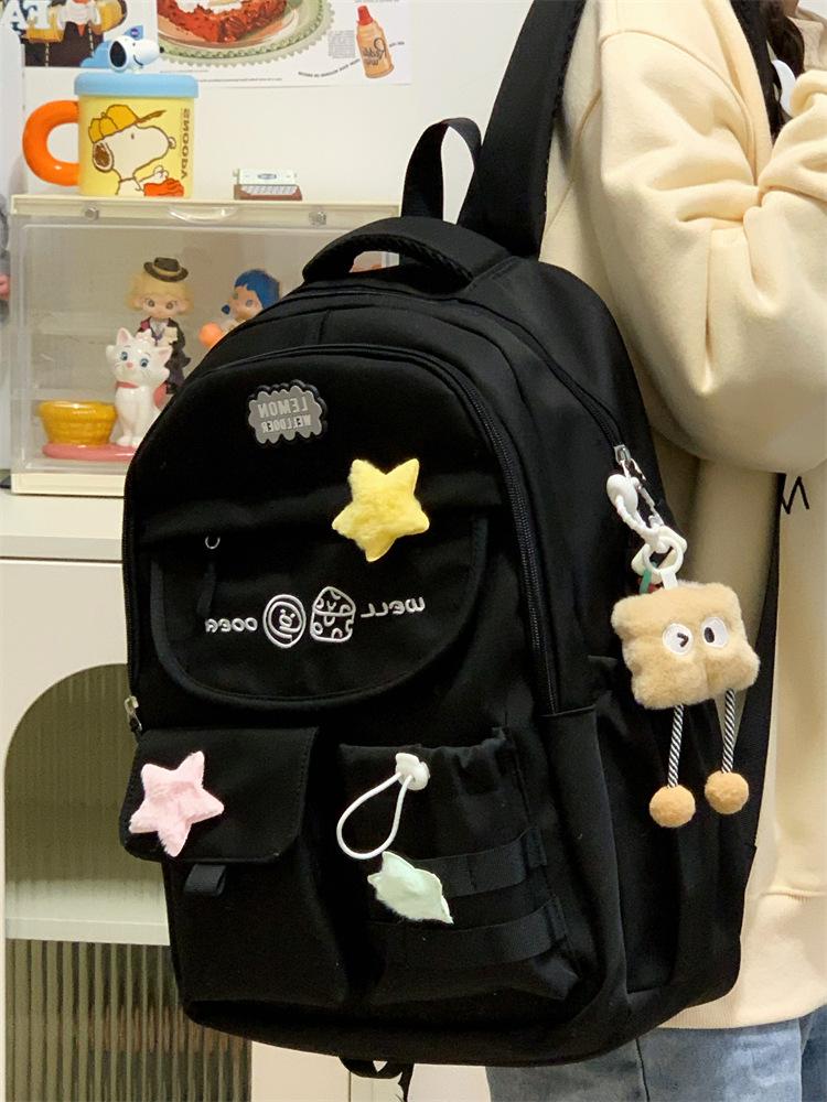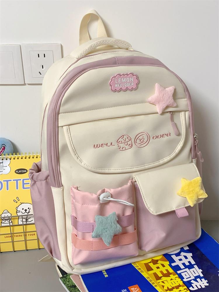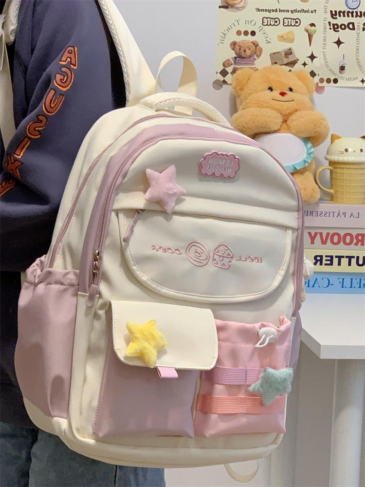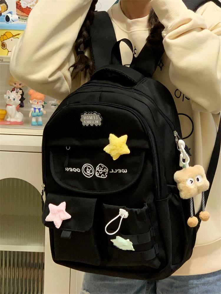 Black backpack + stars, Red backpack + stars, Blue backpack + stars, Pink backpack + stars, Black shoulder bag...