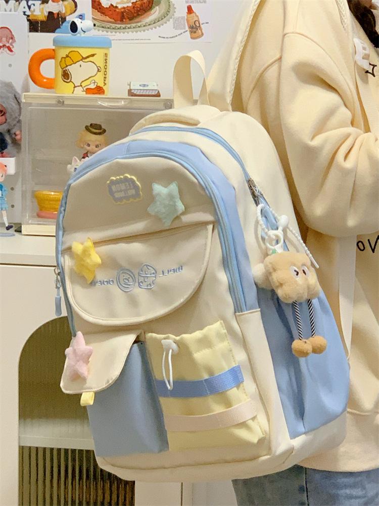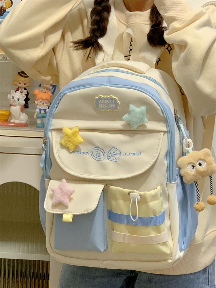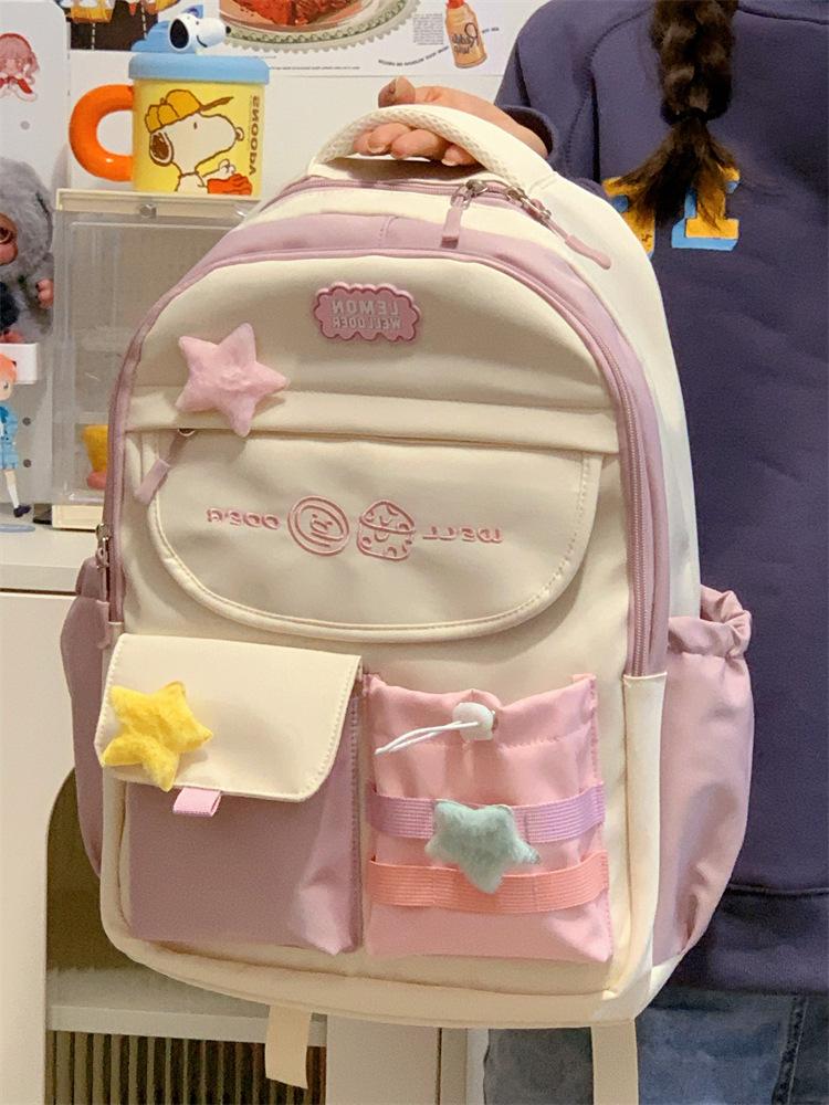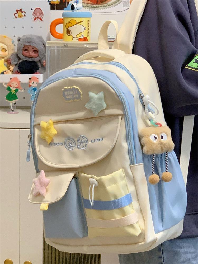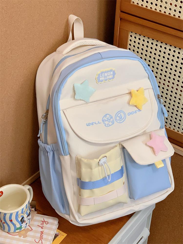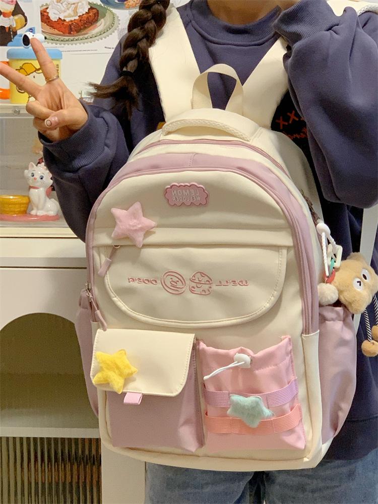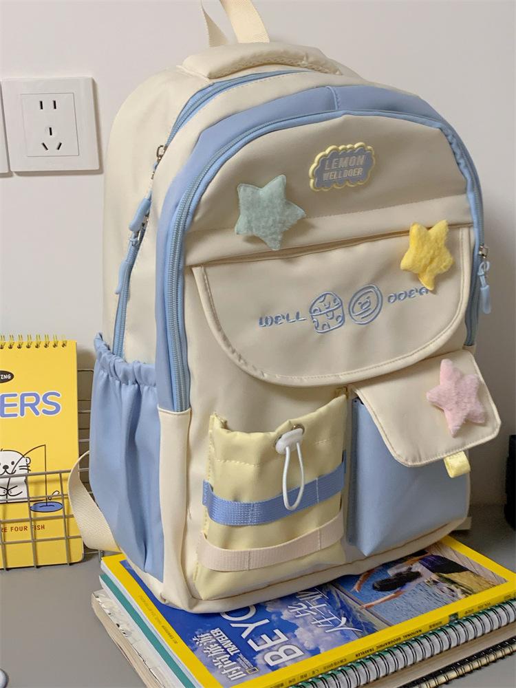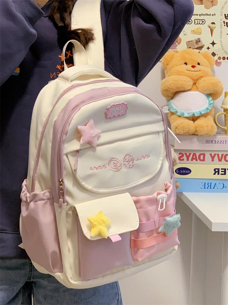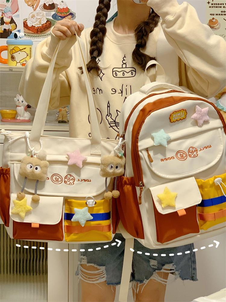Black backpack + stars, Red backpack + stars, Blue backpack + stars, Pink backpack + stars, Black shoulder bag...
