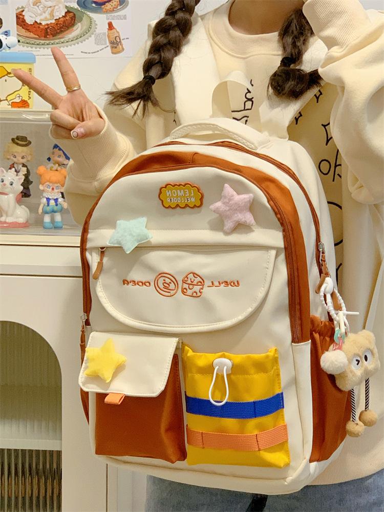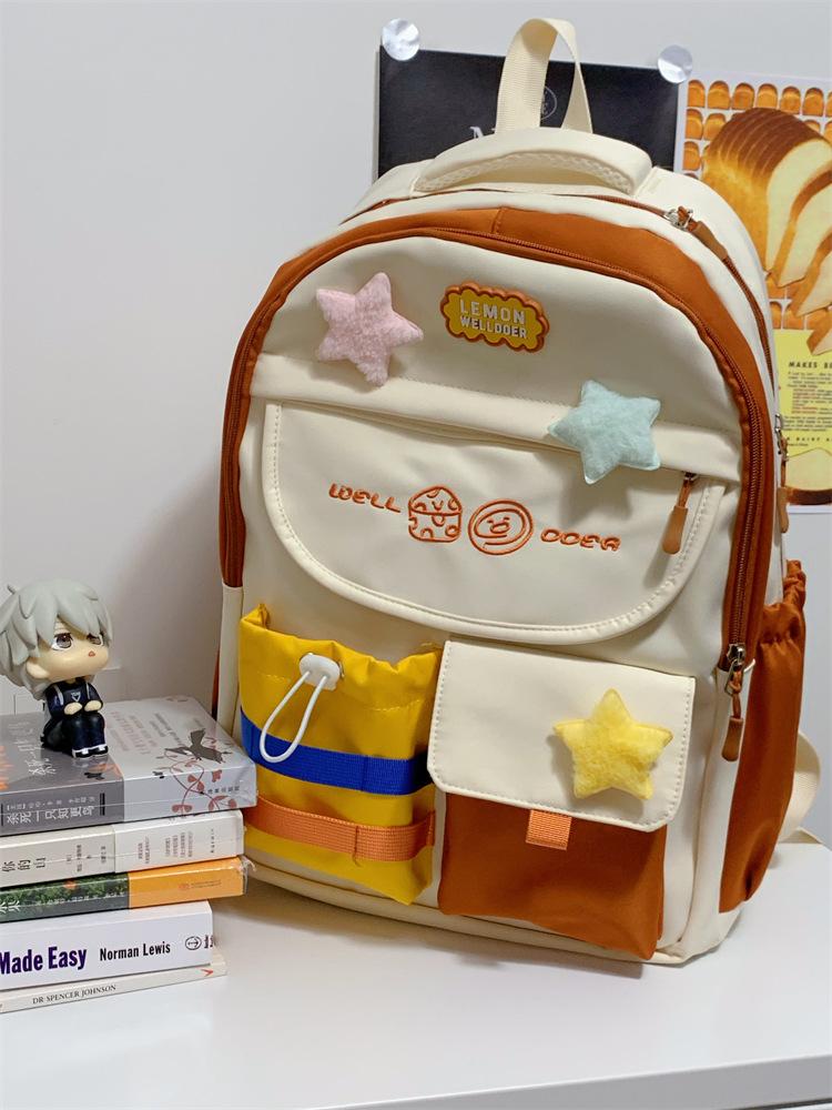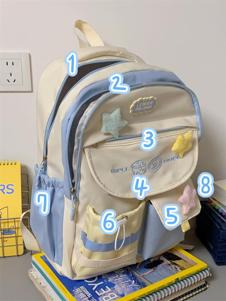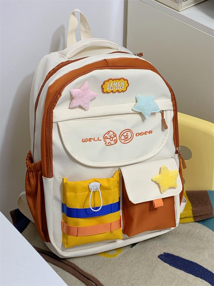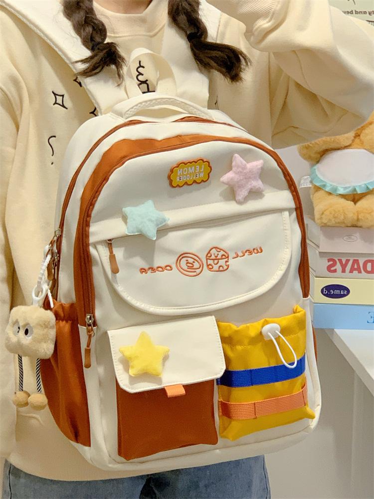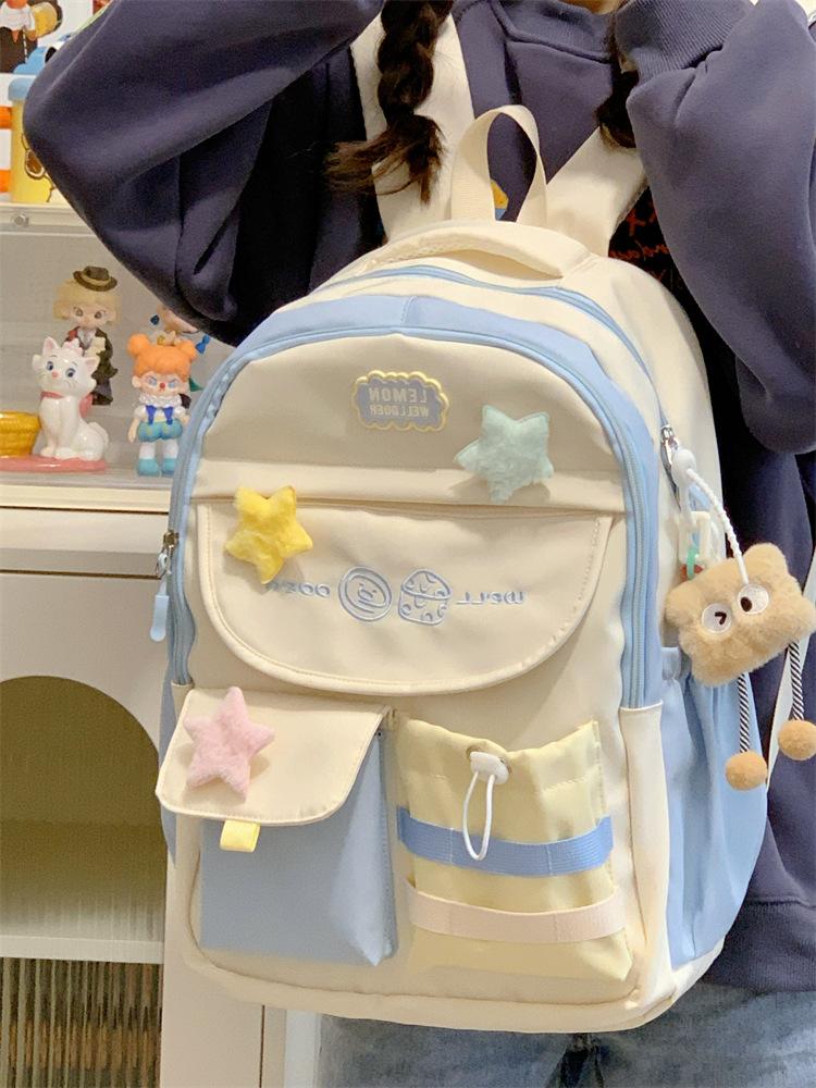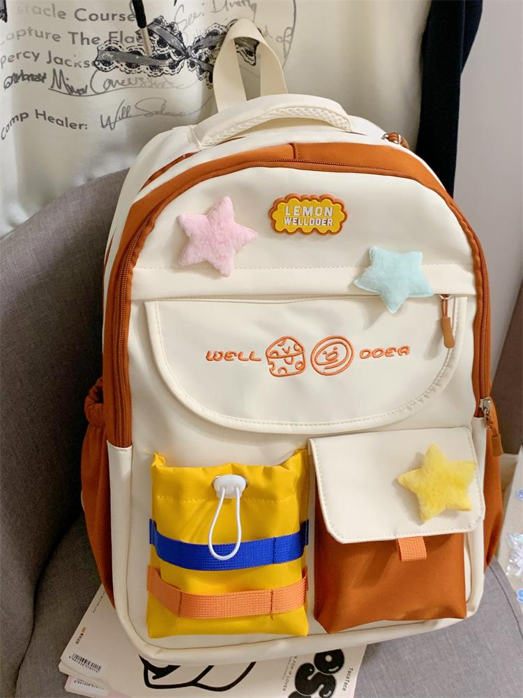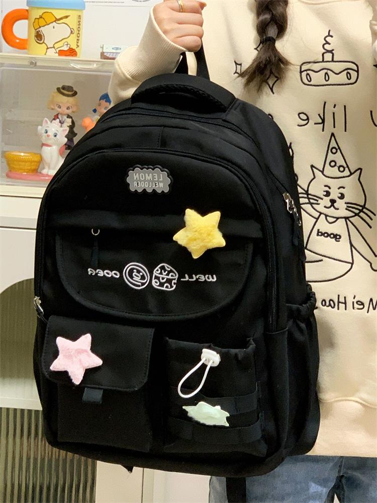 Black backpack + stars, Red backpack + stars, Blue backpack + stars, Pink backpack + stars, Black shoulder bag...