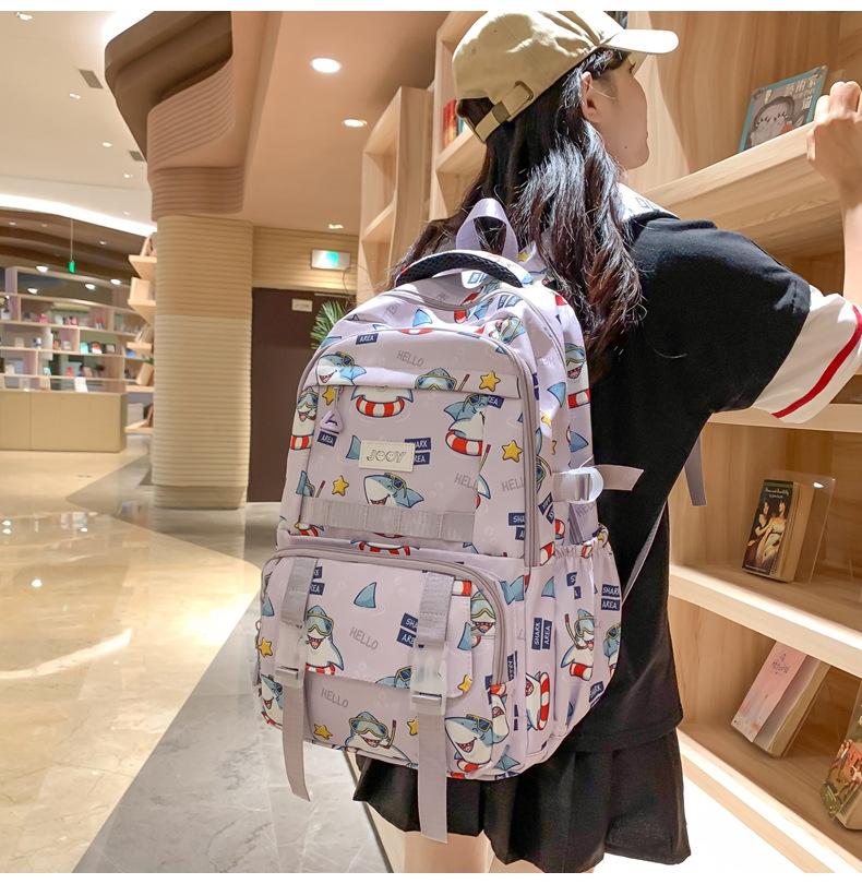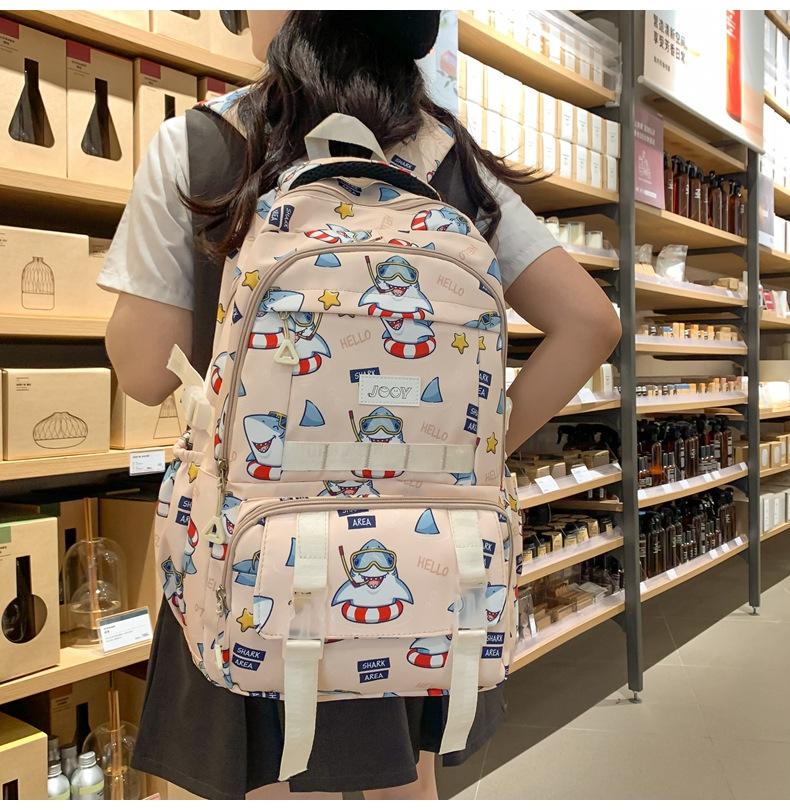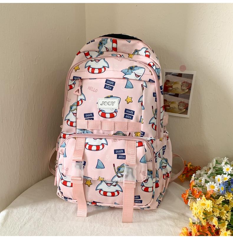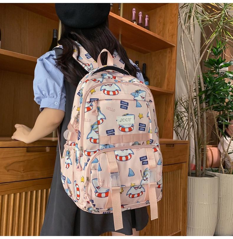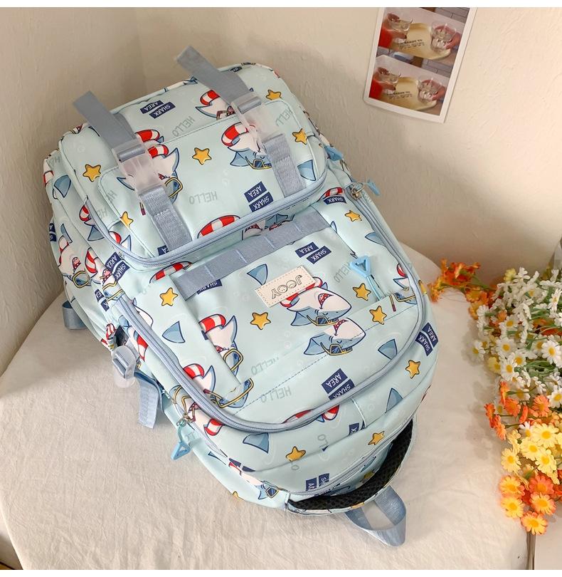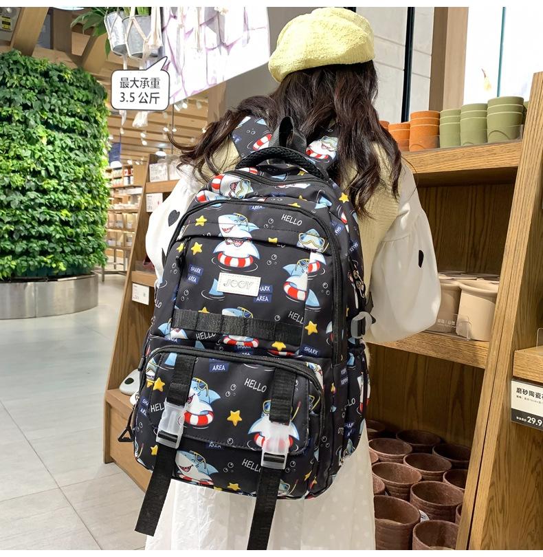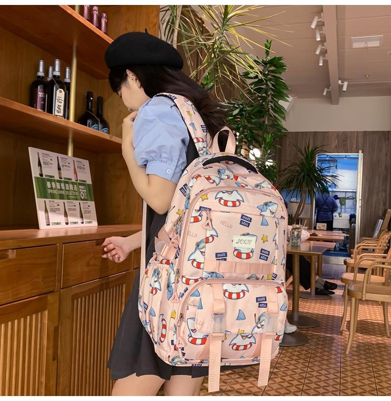 Mochila Nueva de Bolsillo Doble con Estampado Lindo de Dibujos Animados Creativa para Estudiantes de Primaria y Secundaria Mochila Ligera de Gran Capacidad para el Campus