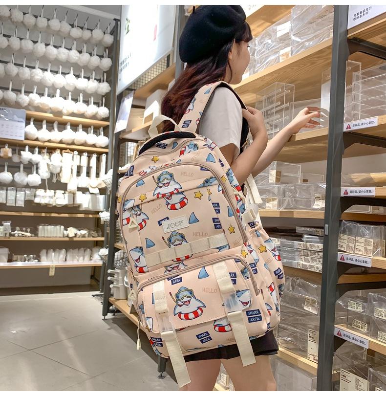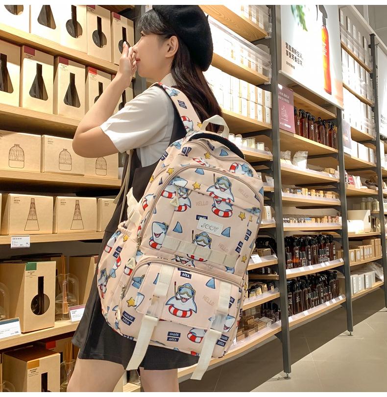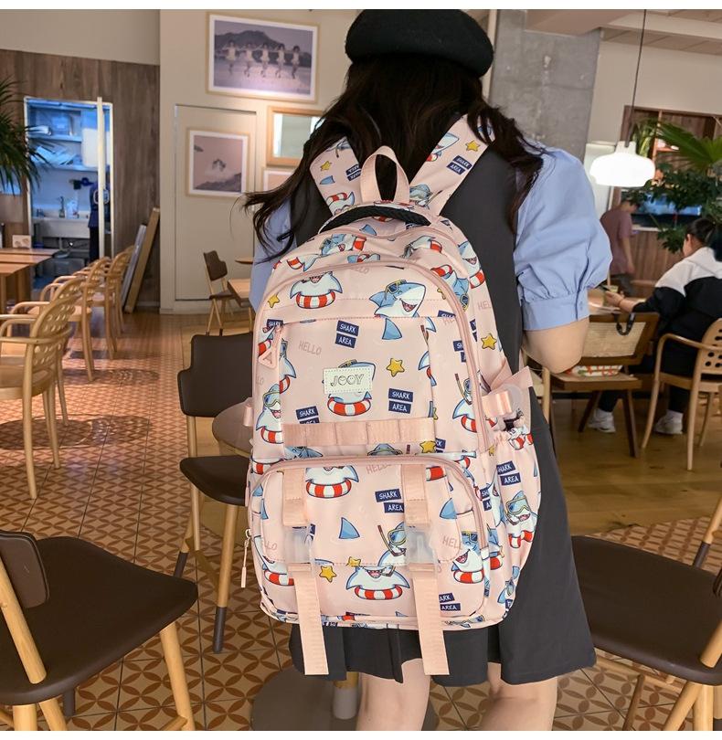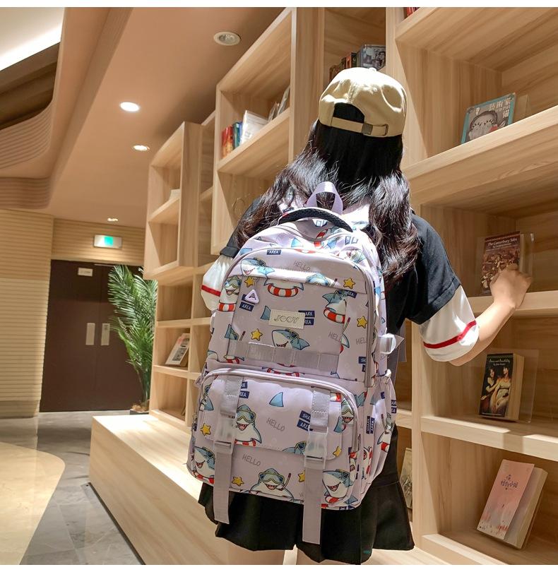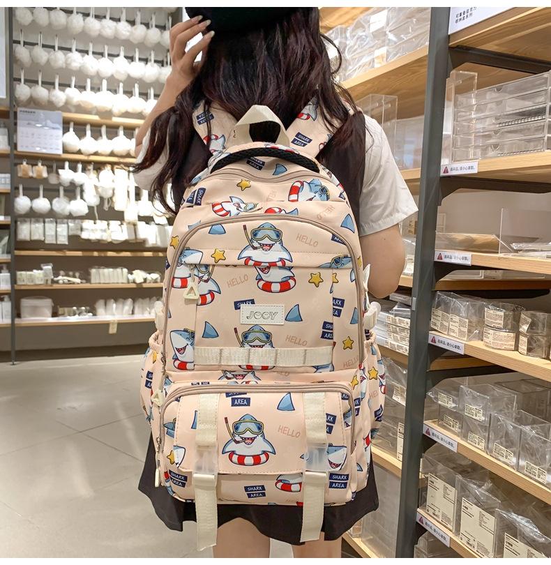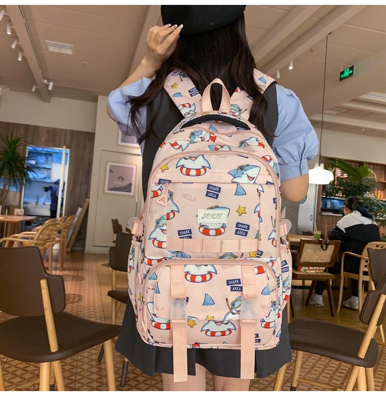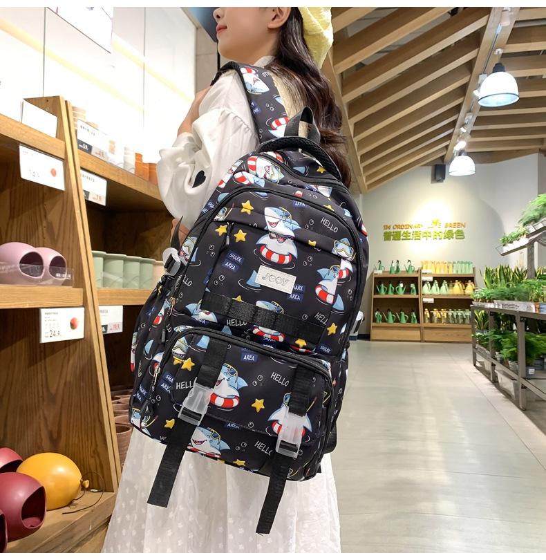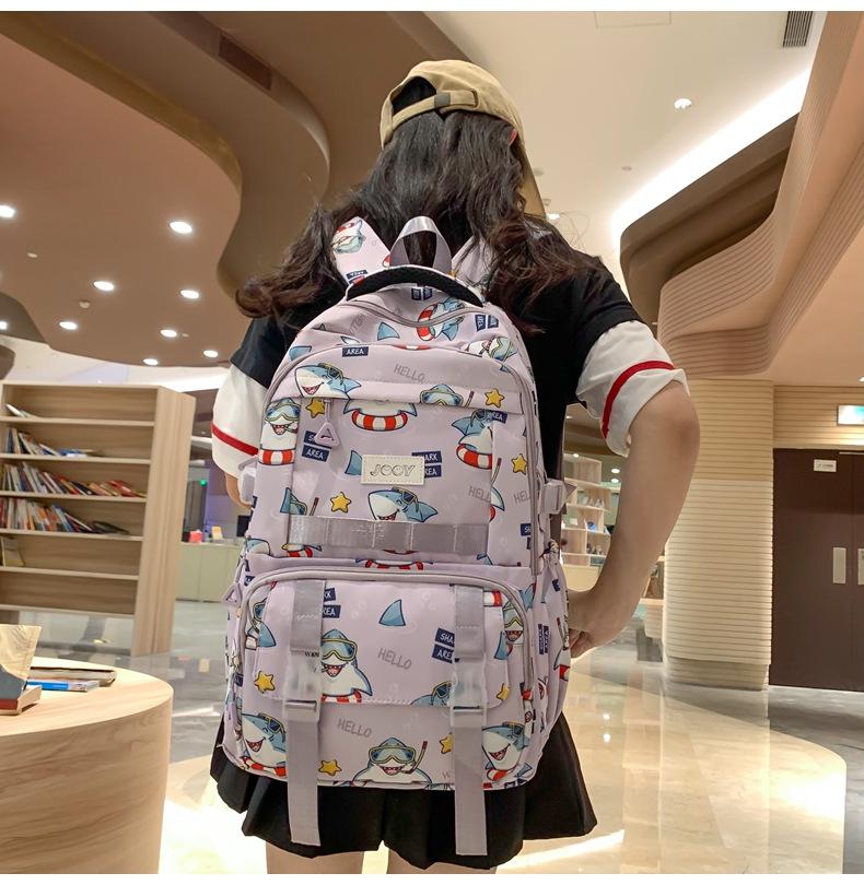 Mochila Nueva de Bolsillo Doble con Estampado Lindo de Dibujos Animados Creativa para Estudiantes de Primaria y Secundaria Mochila Ligera de Gran Capacidad para el Campus