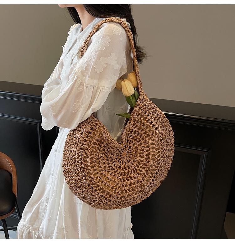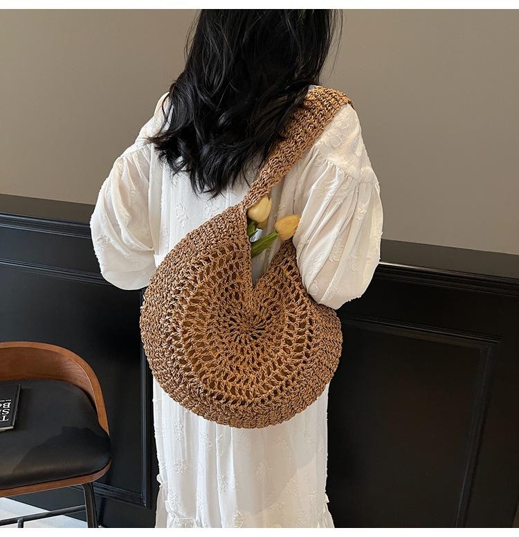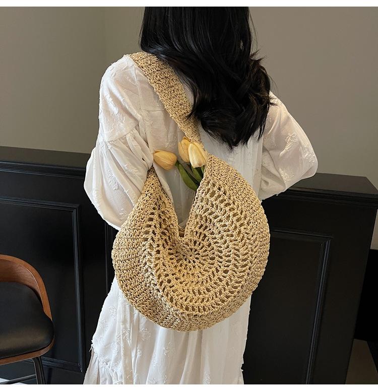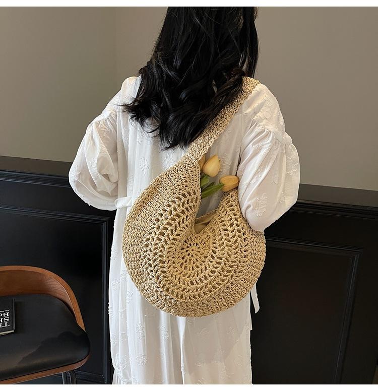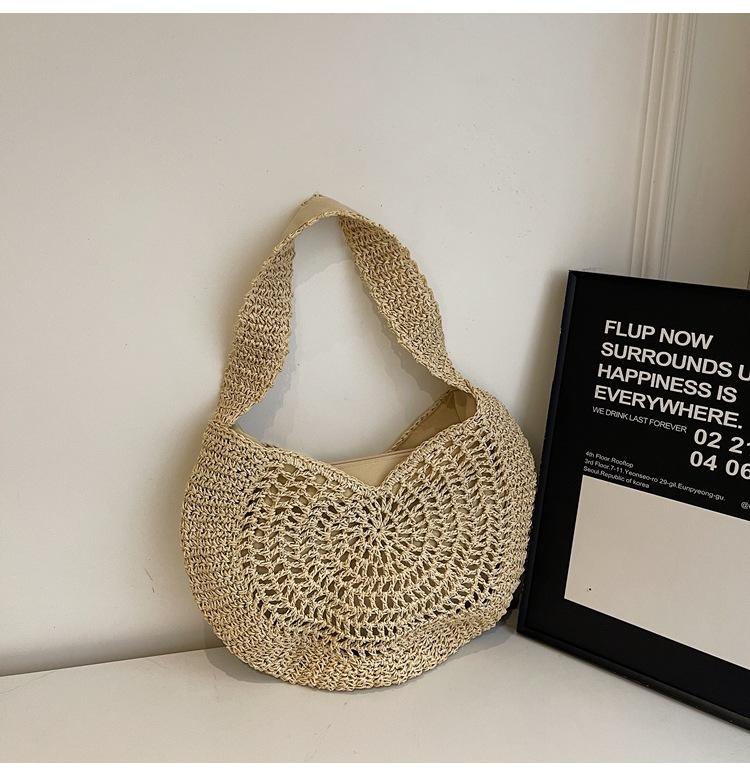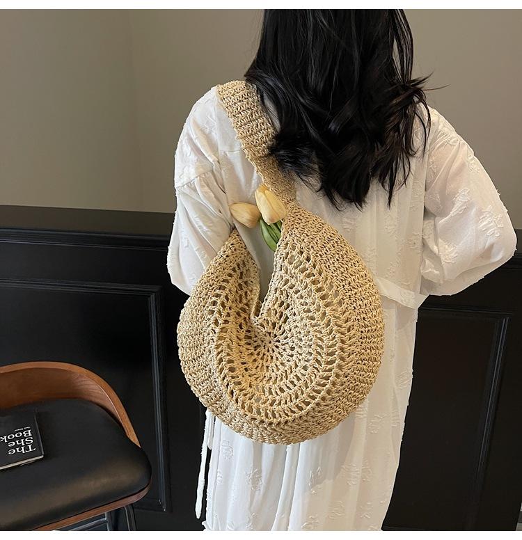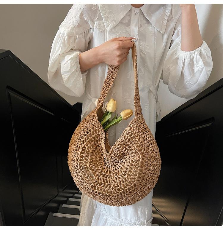 Casual Simple 2025 Primavera Nuevo Bolso Tejido de Paja Gran Capacidad Bolso Tejido de Moda Bolso Tote de Hombro para Mujer