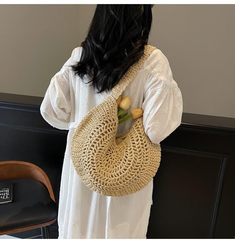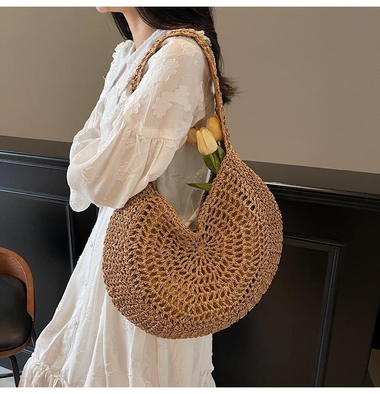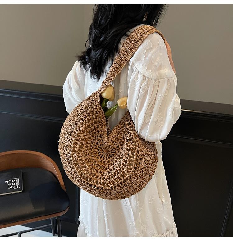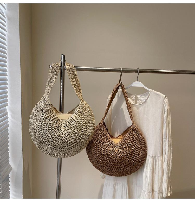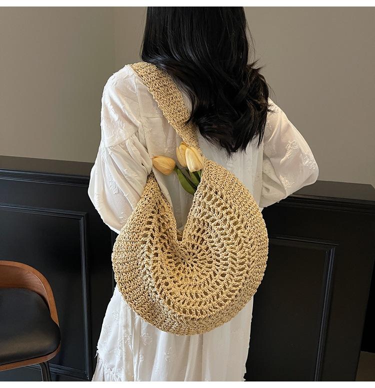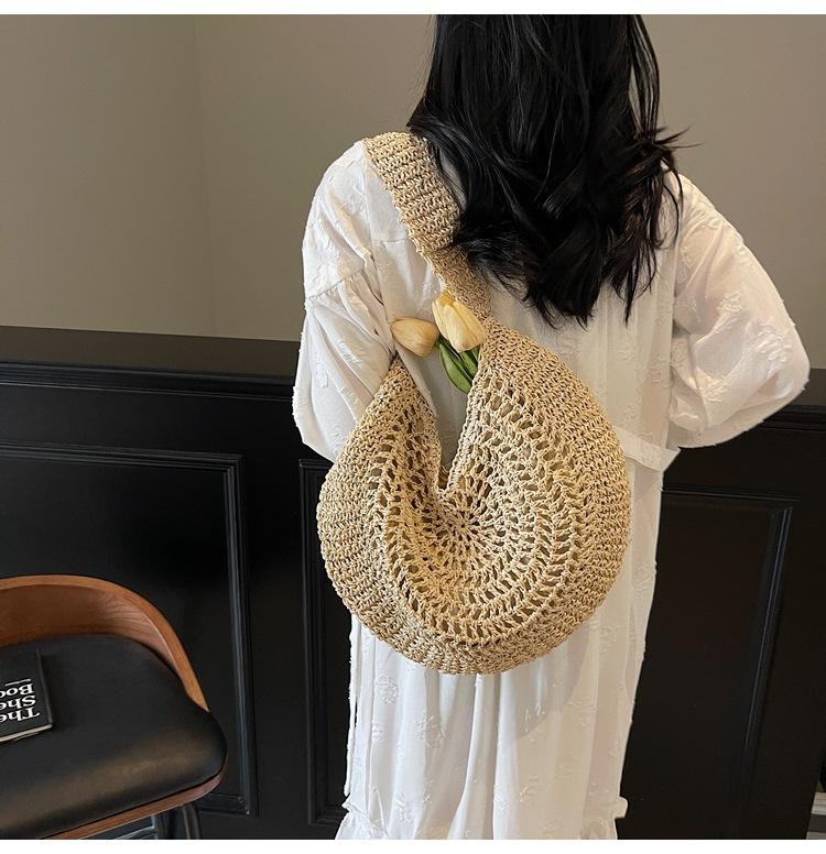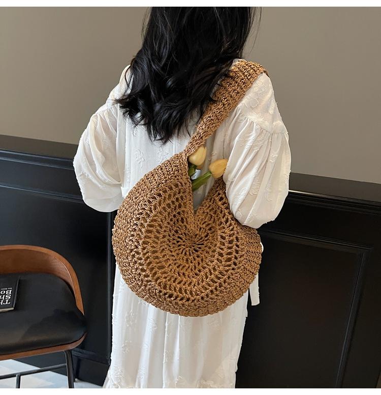Casual Simple 2025 Primavera Nuevo Bolso Tejido de Paja Gran Capacidad Bolso Tejido de Moda Bolso Tote de Hombro para Mujer