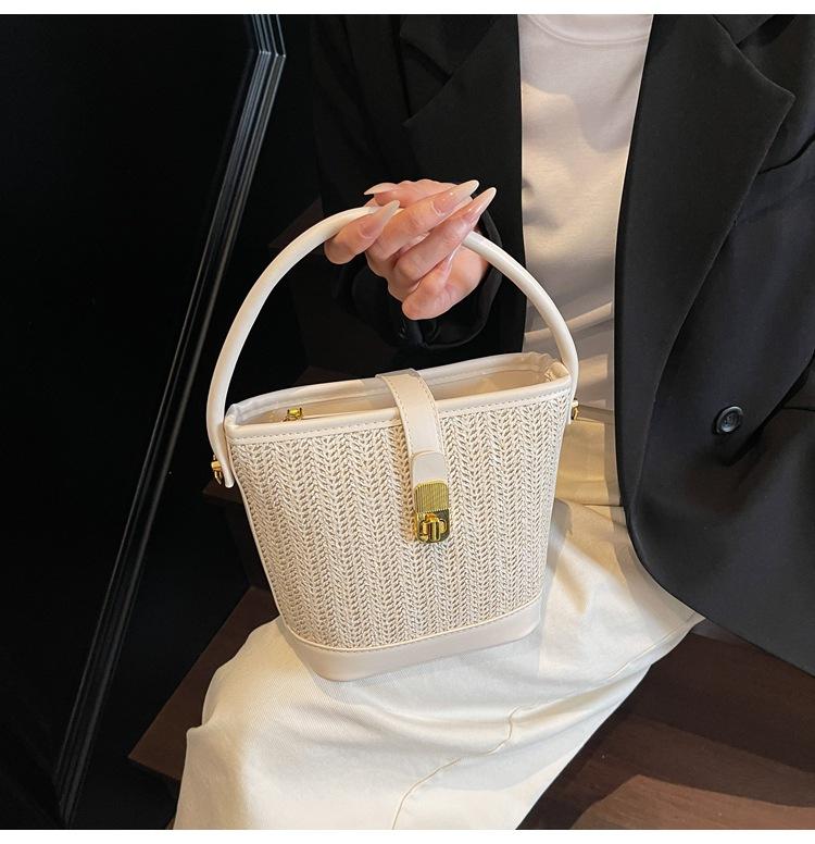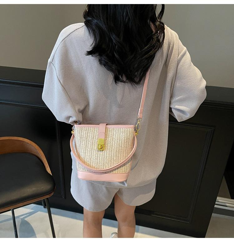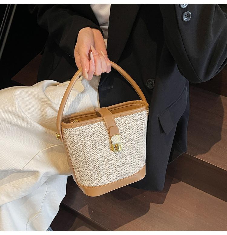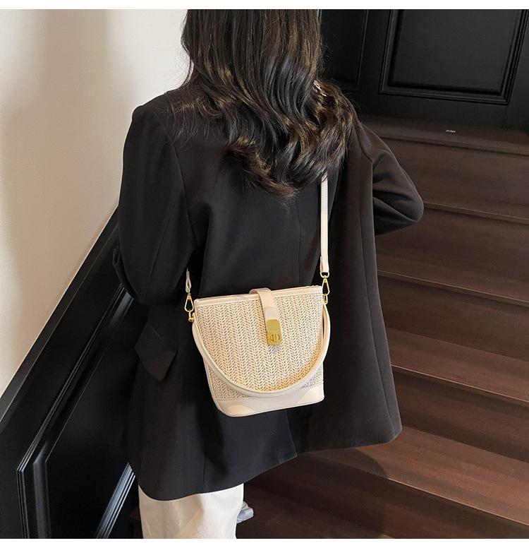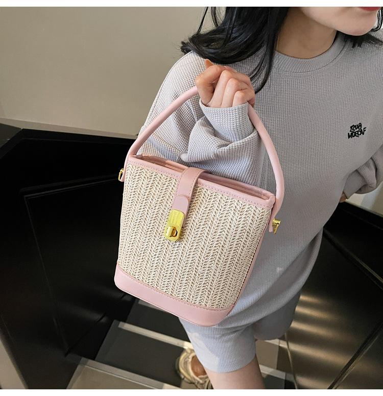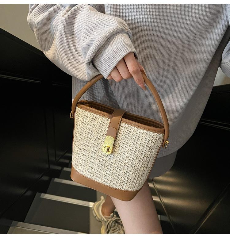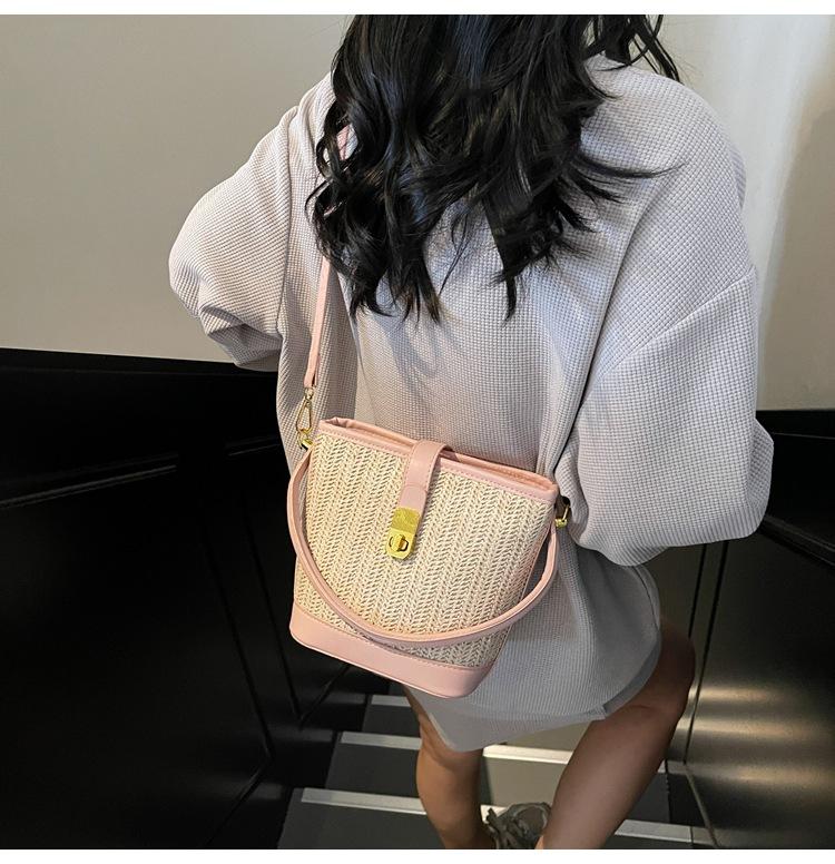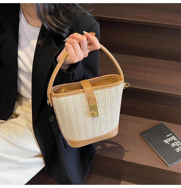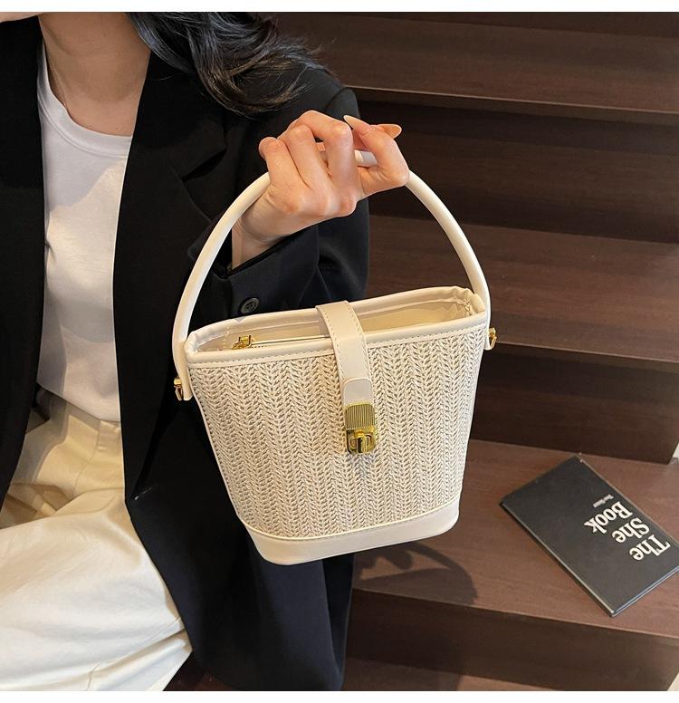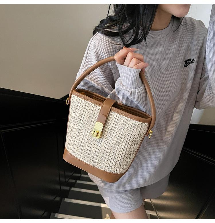 Bolso de Paja Tejida Casual Estilo Coreano Ins para Mujer 2025 Nuevo Estilo Playa Moda Portátil Bandolera Bolso Balde