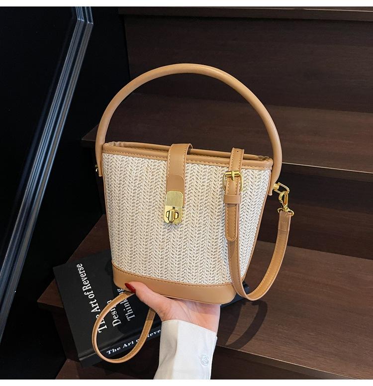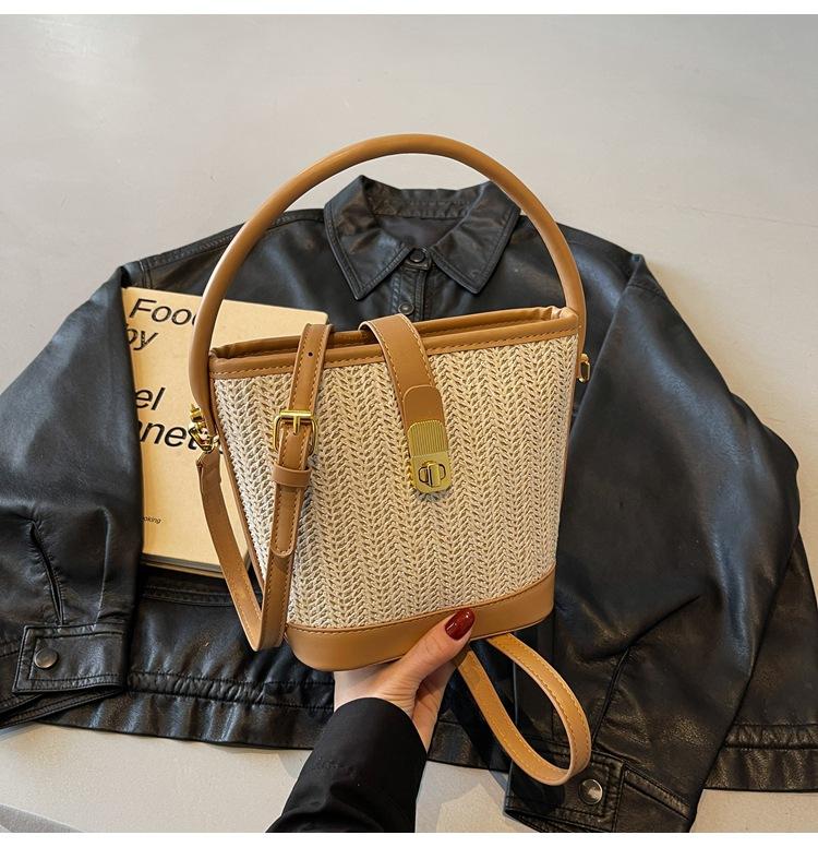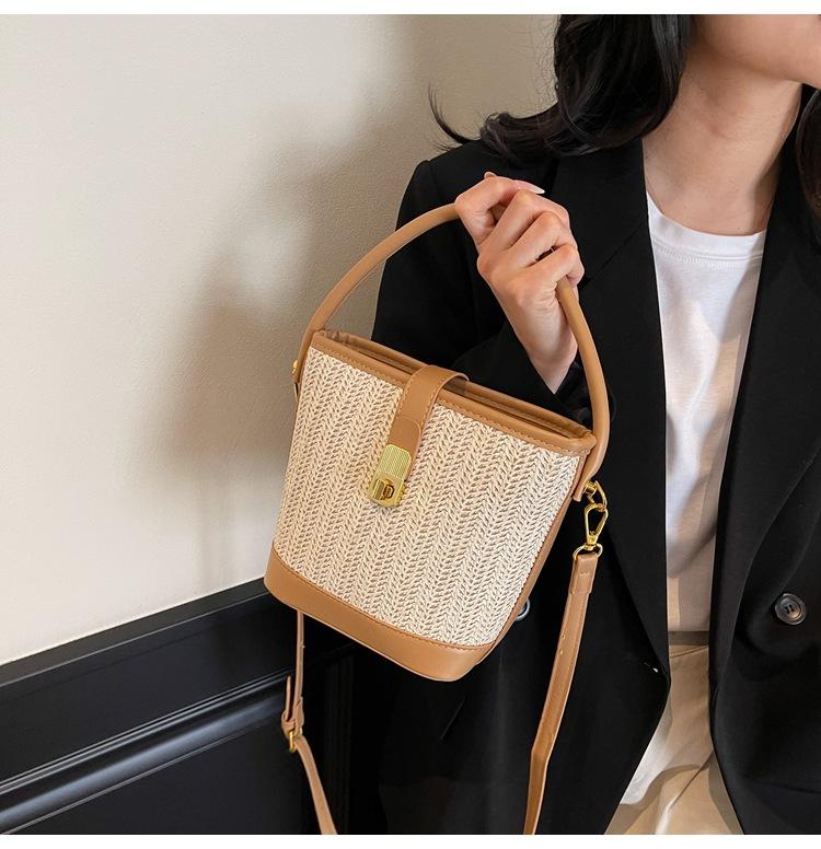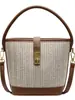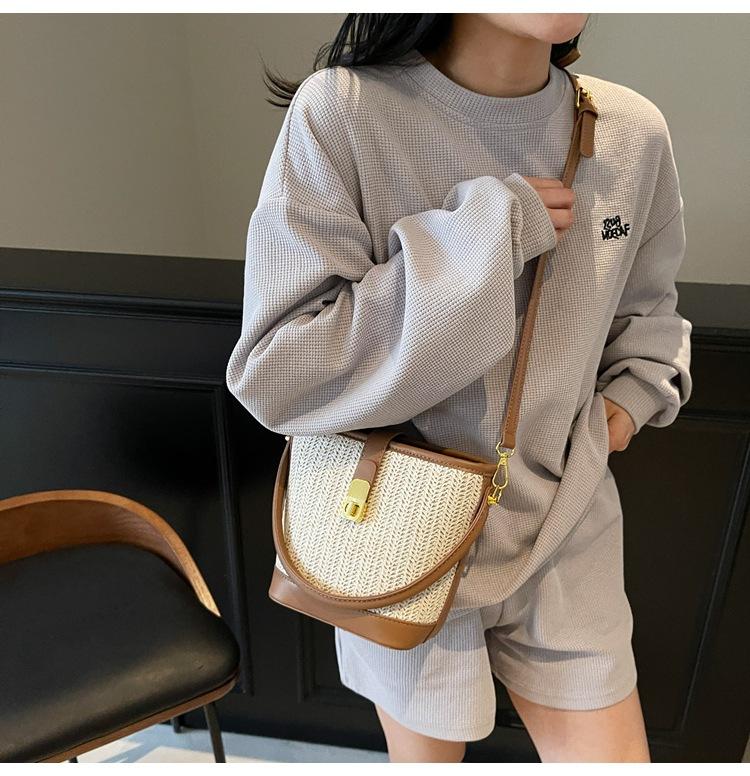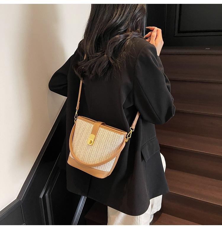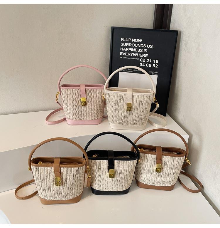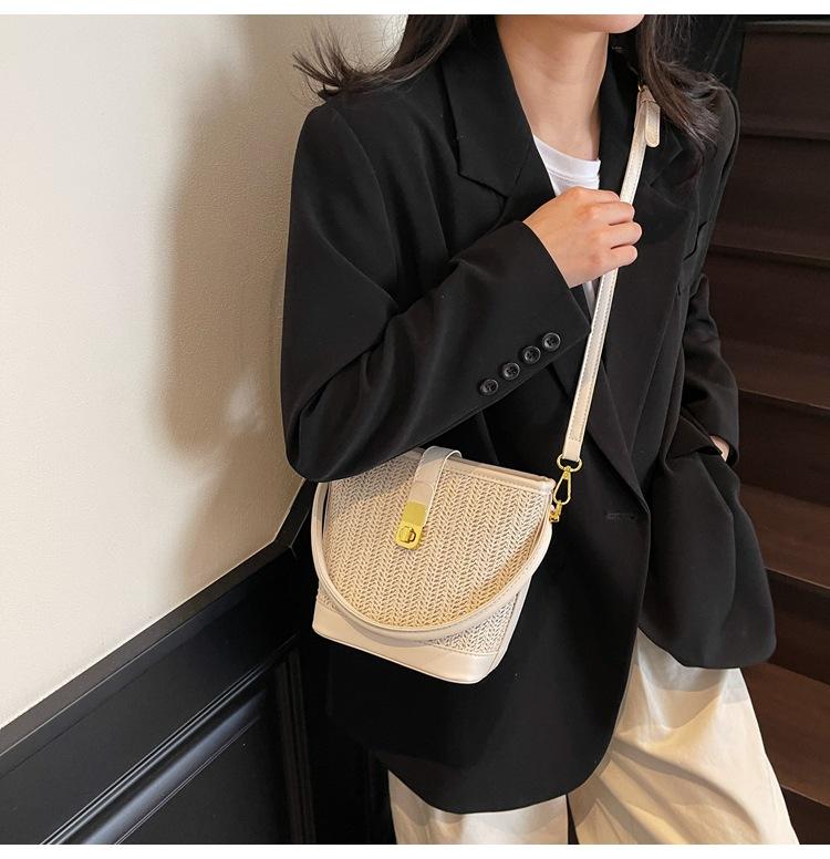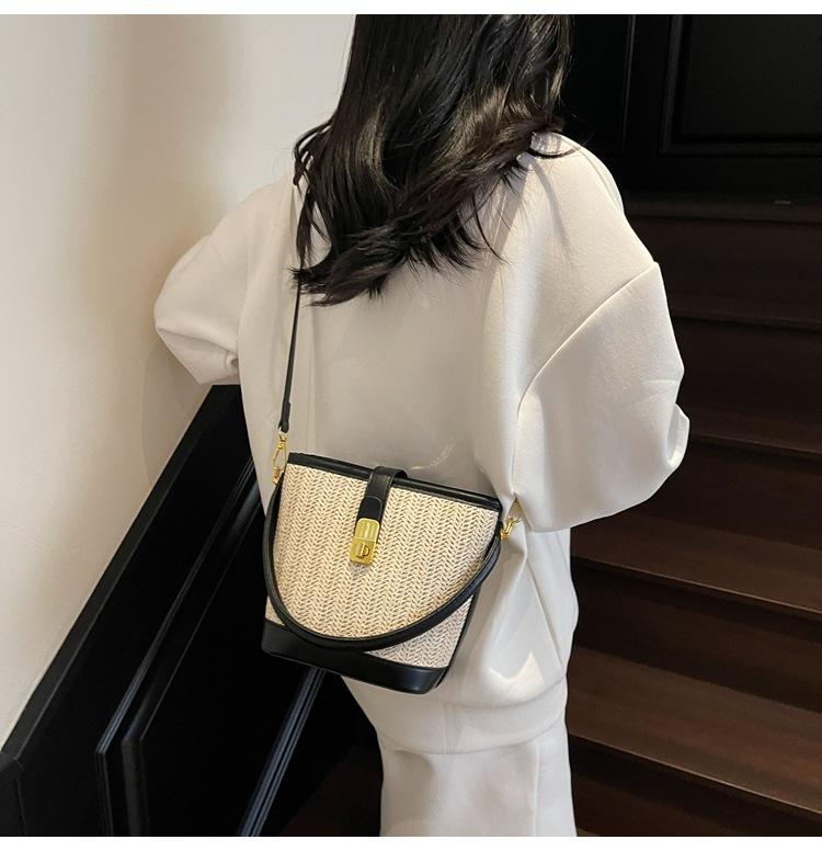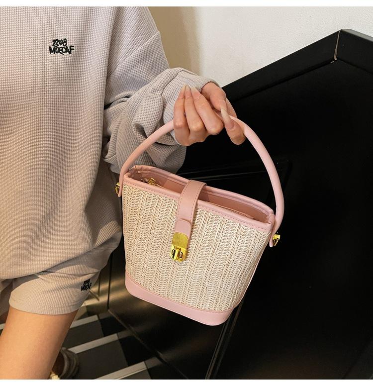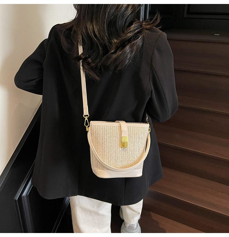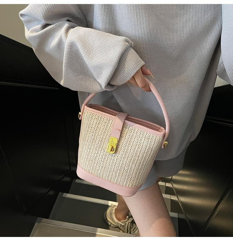 Bolso de Paja Tejida Casual Estilo Coreano Ins para Mujer 2025 Nuevo Estilo Playa Moda Portátil Bandolera Bolso Balde
