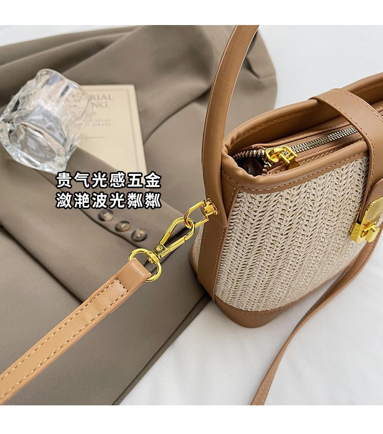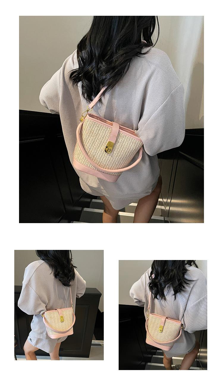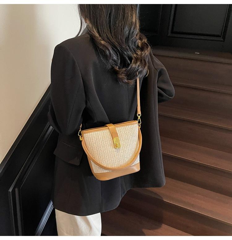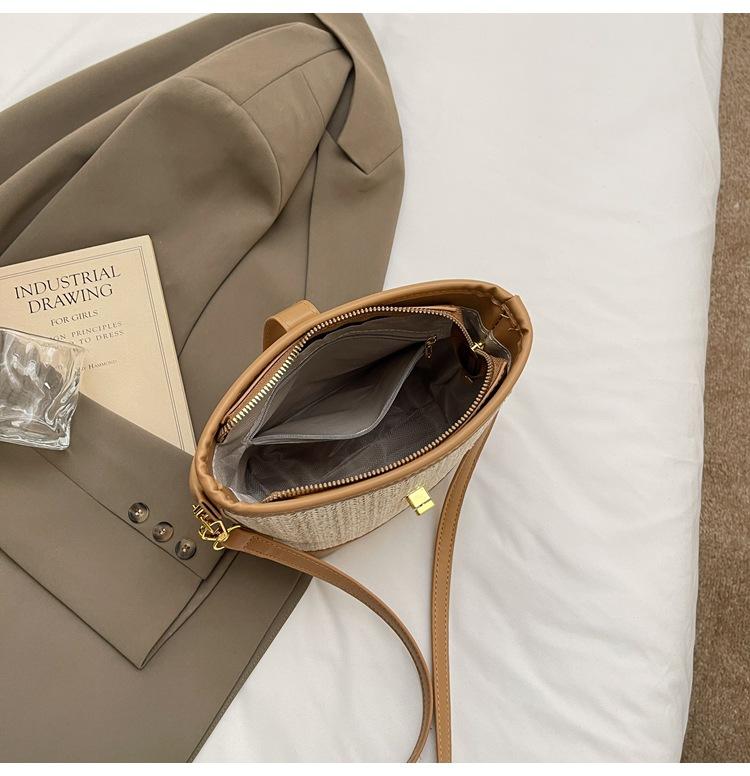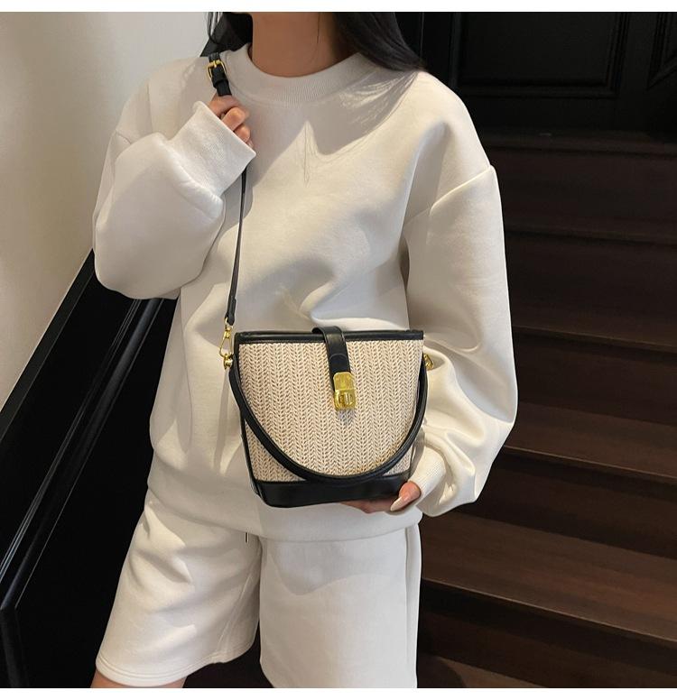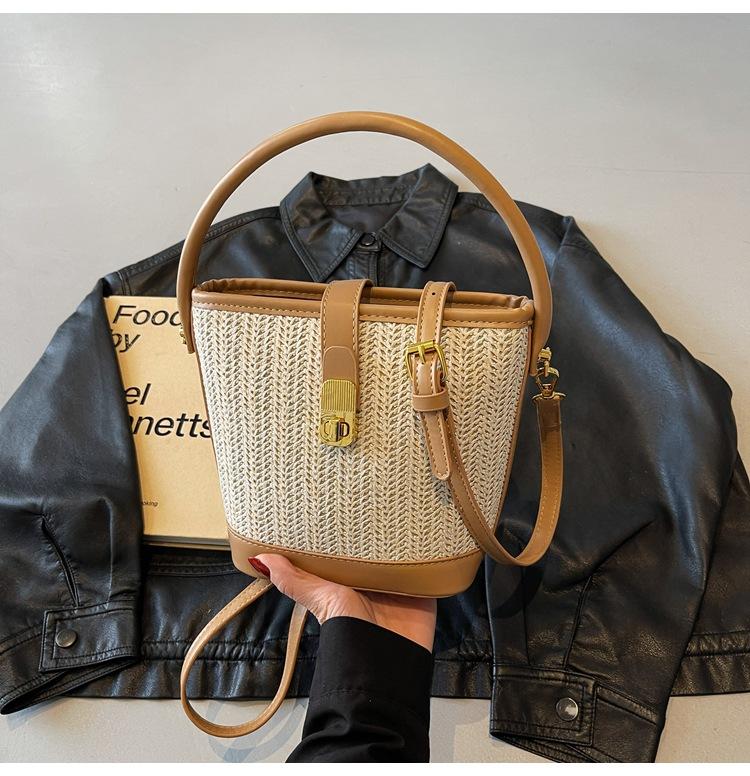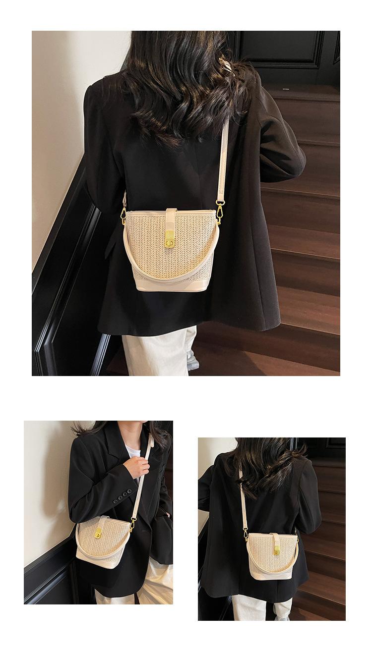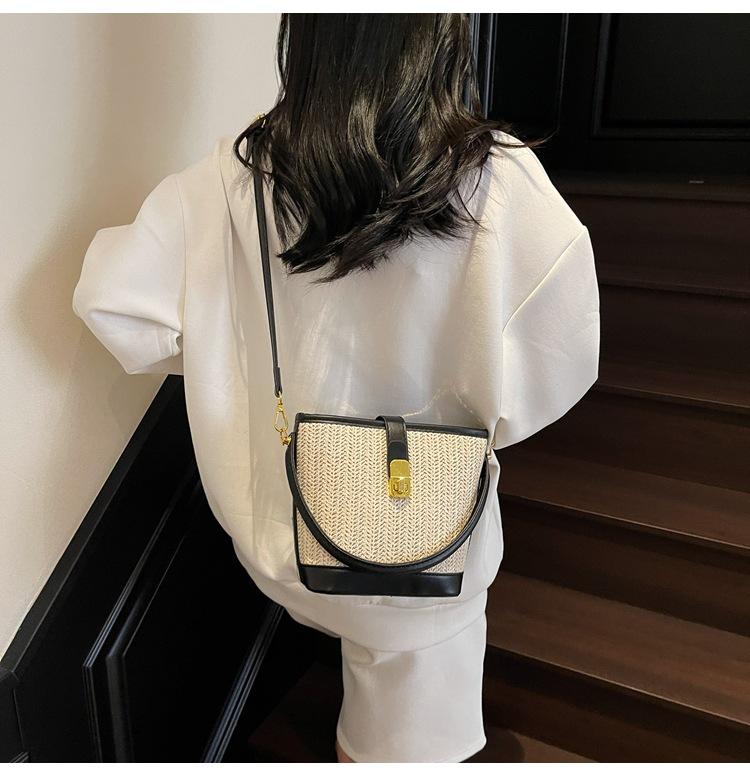 Bolso de Paja Tejida Casual Estilo Coreano Ins para Mujer 2025 Nuevo Estilo Playa Moda Portátil Bandolera Bolso Balde