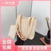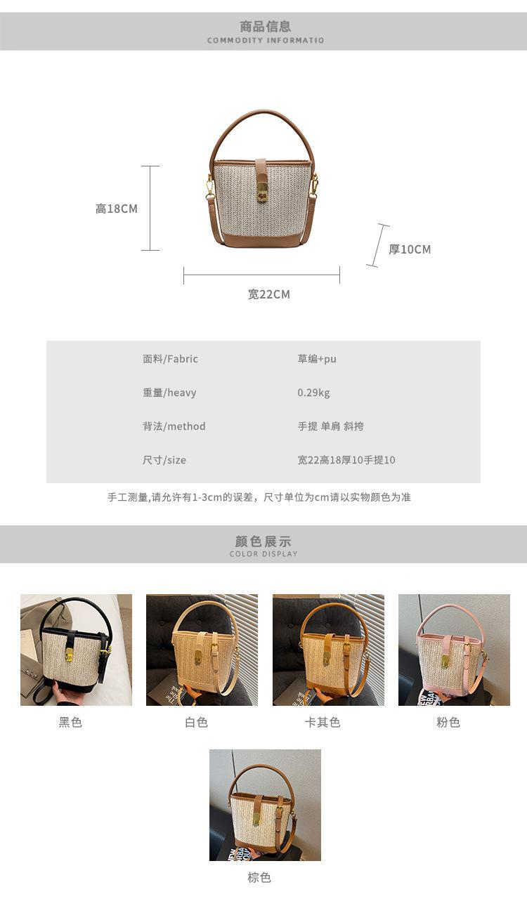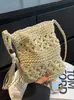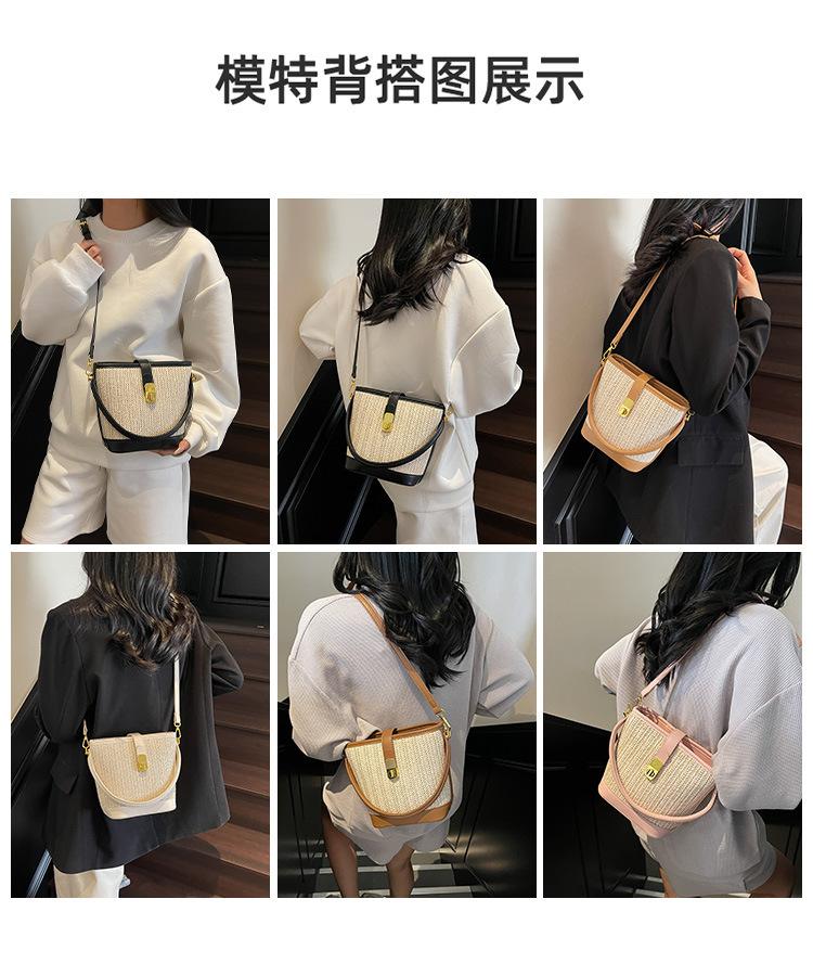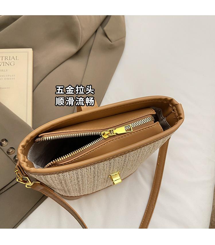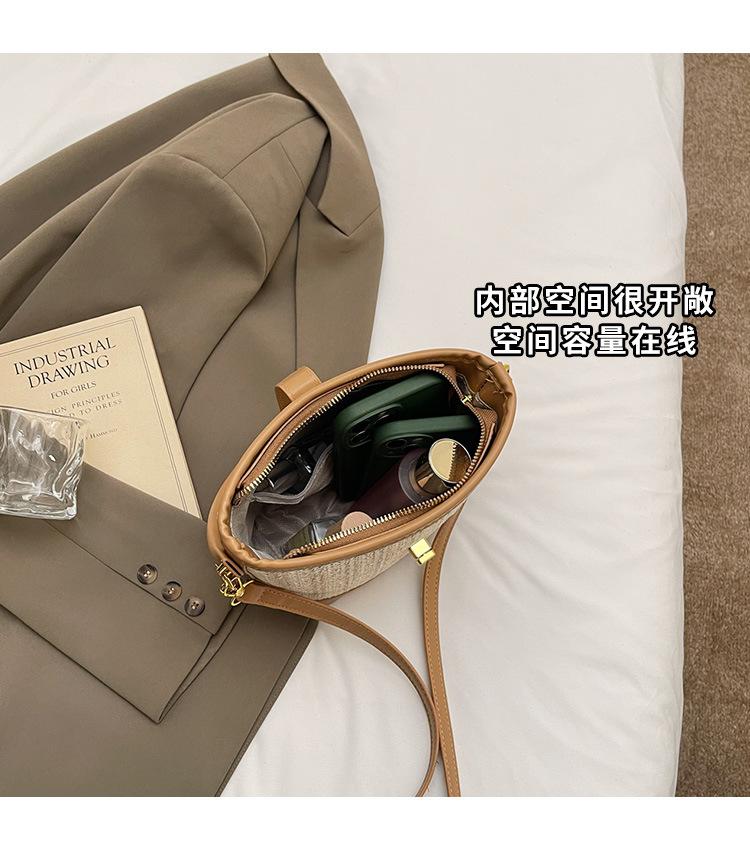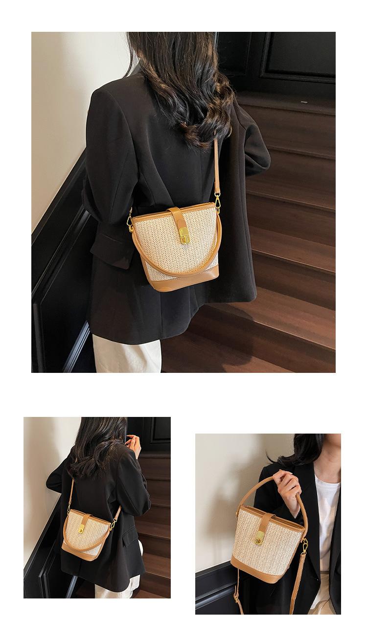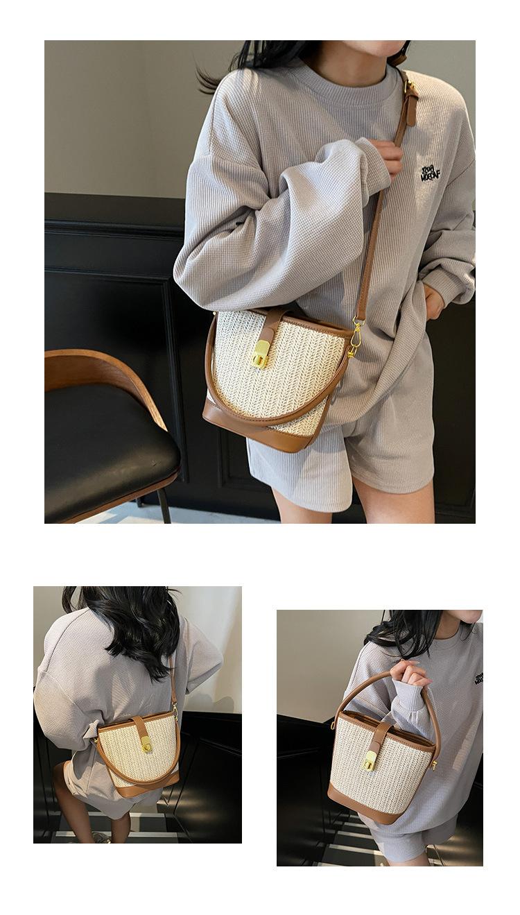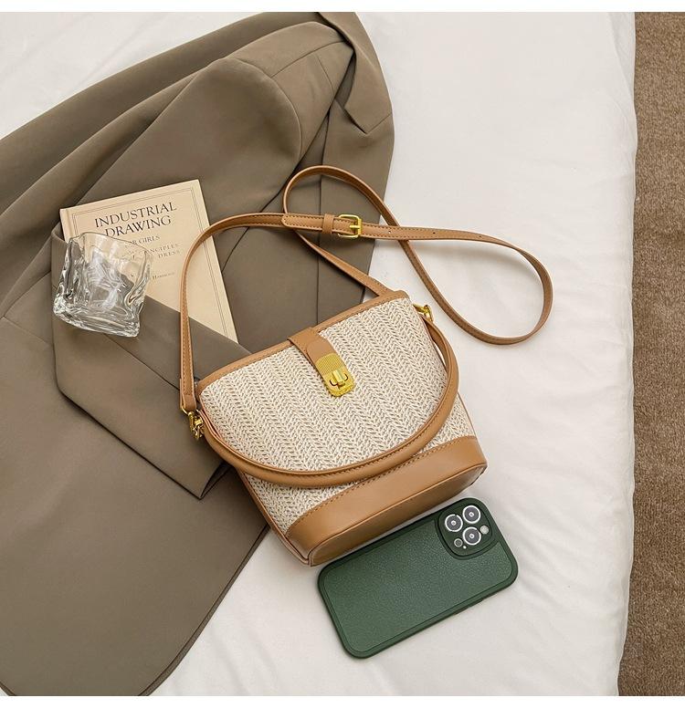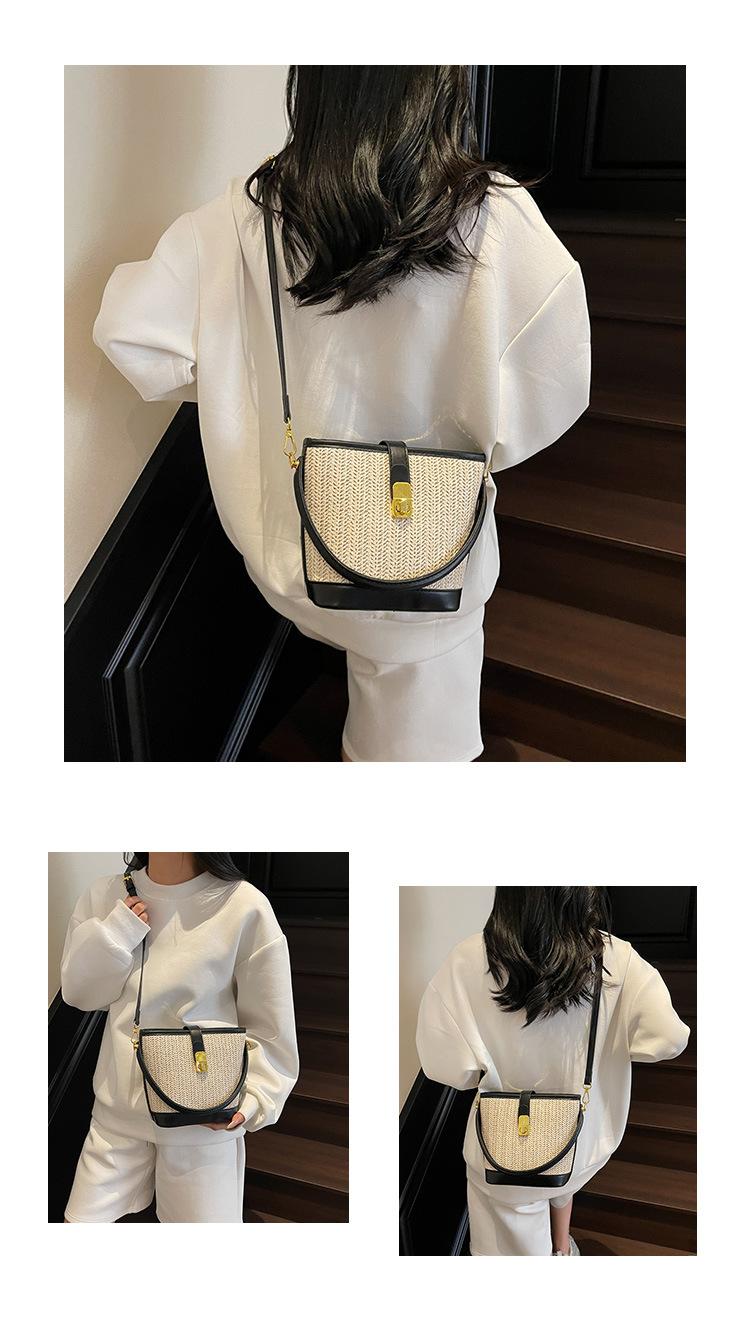 Bolso de Paja Tejida Casual Estilo Coreano Ins para Mujer 2025 Nuevo Estilo Playa Moda Portátil Bandolera Bolso Balde