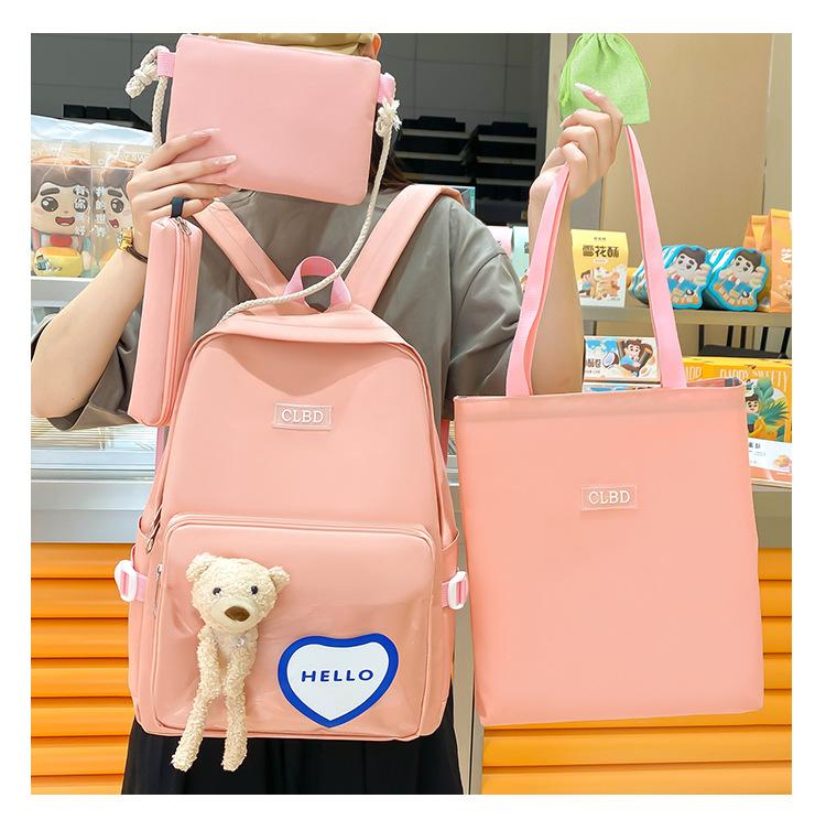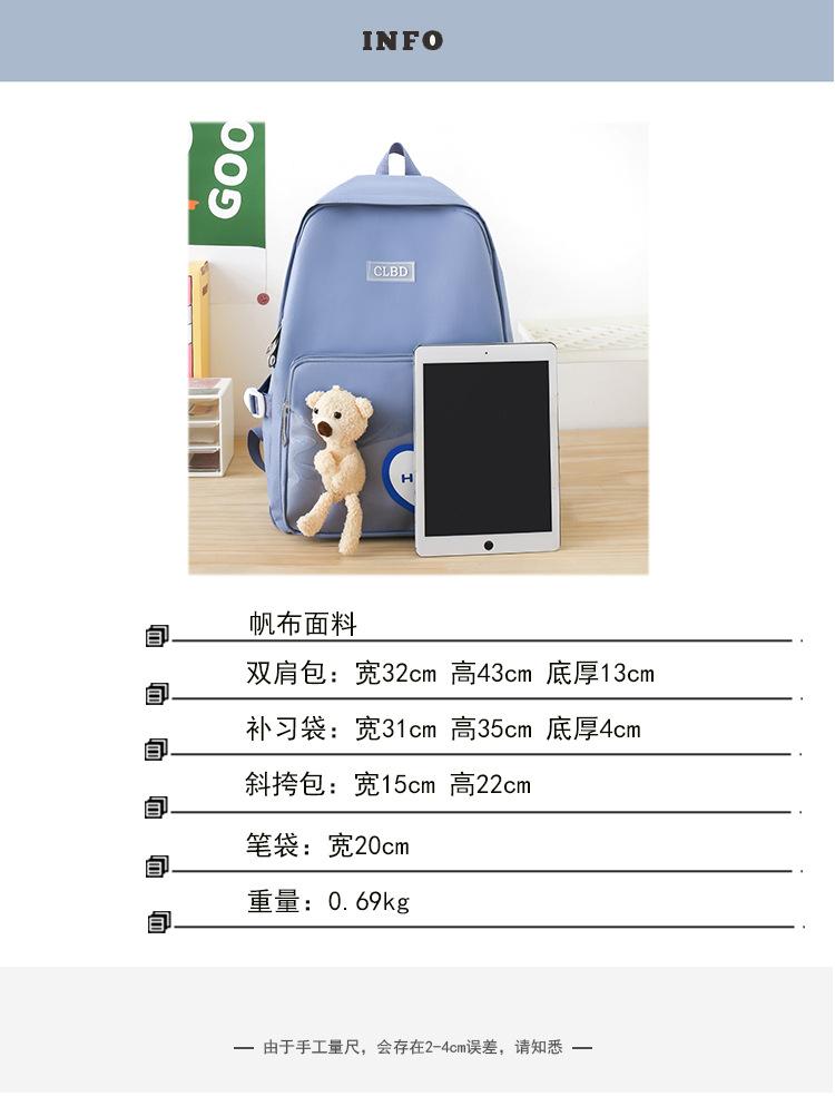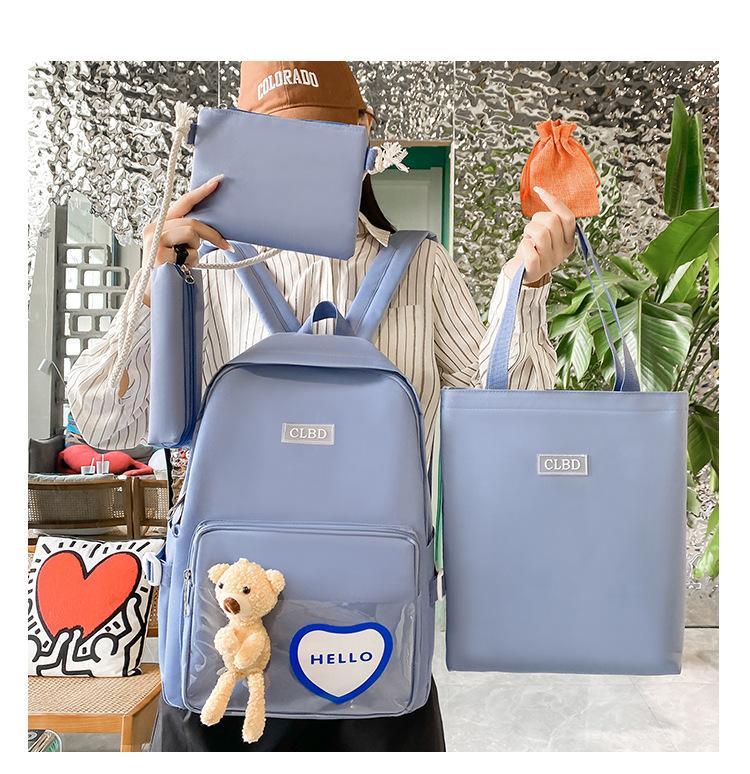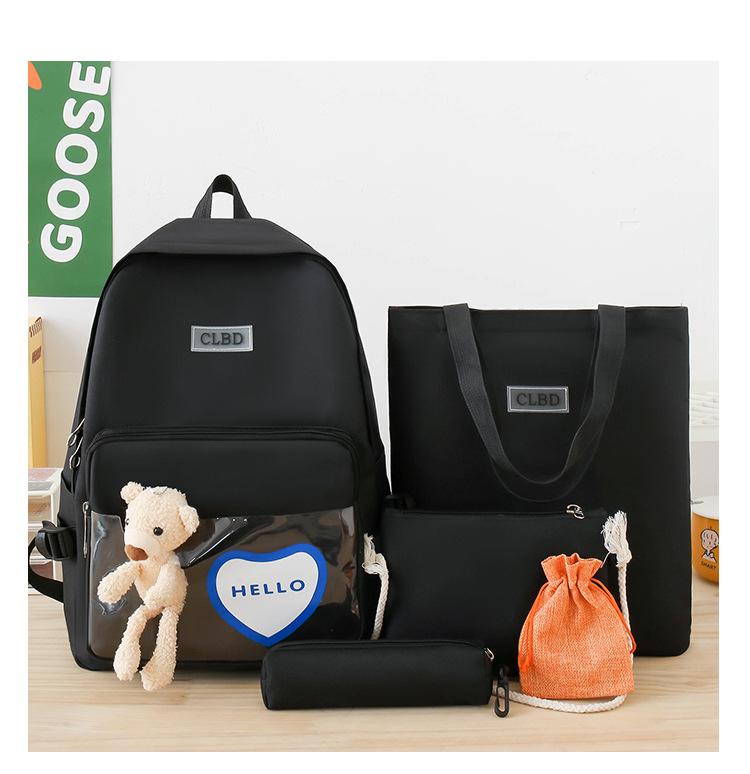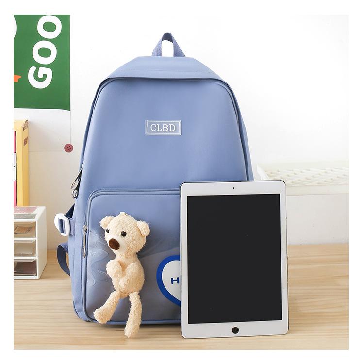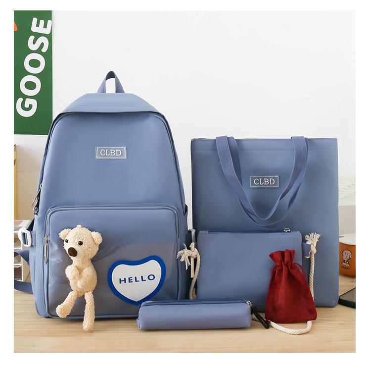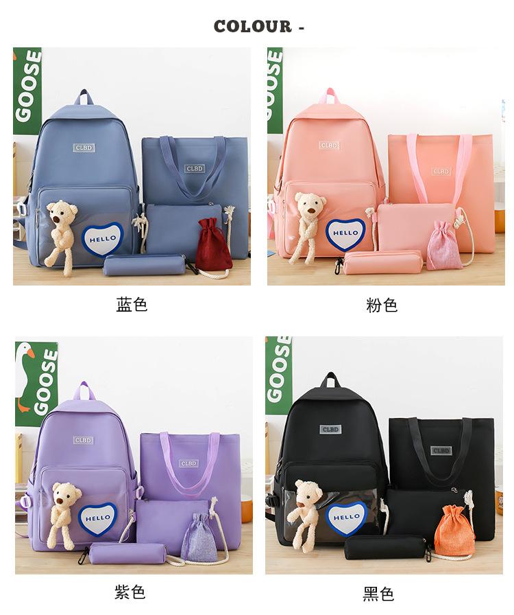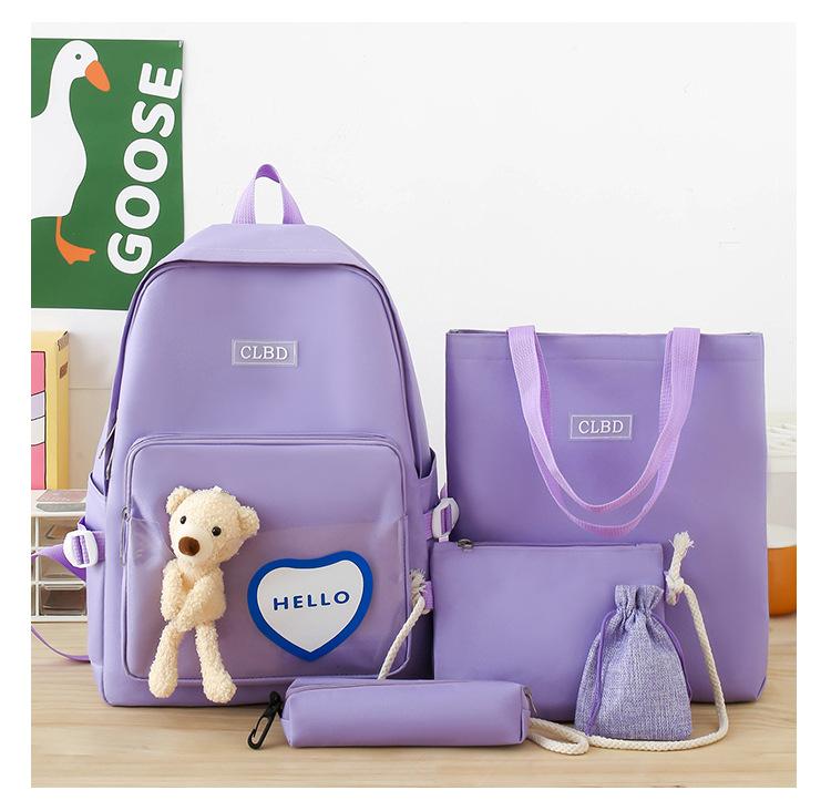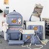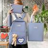Mochila de lona de estilo coreano para estudiantes de primaria, secundaria, preparatoria, de gran capacidad, de cinco piezas, para niñas, estilo fresco