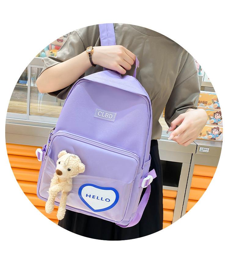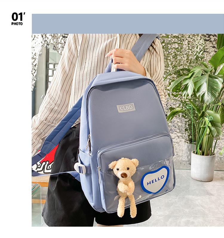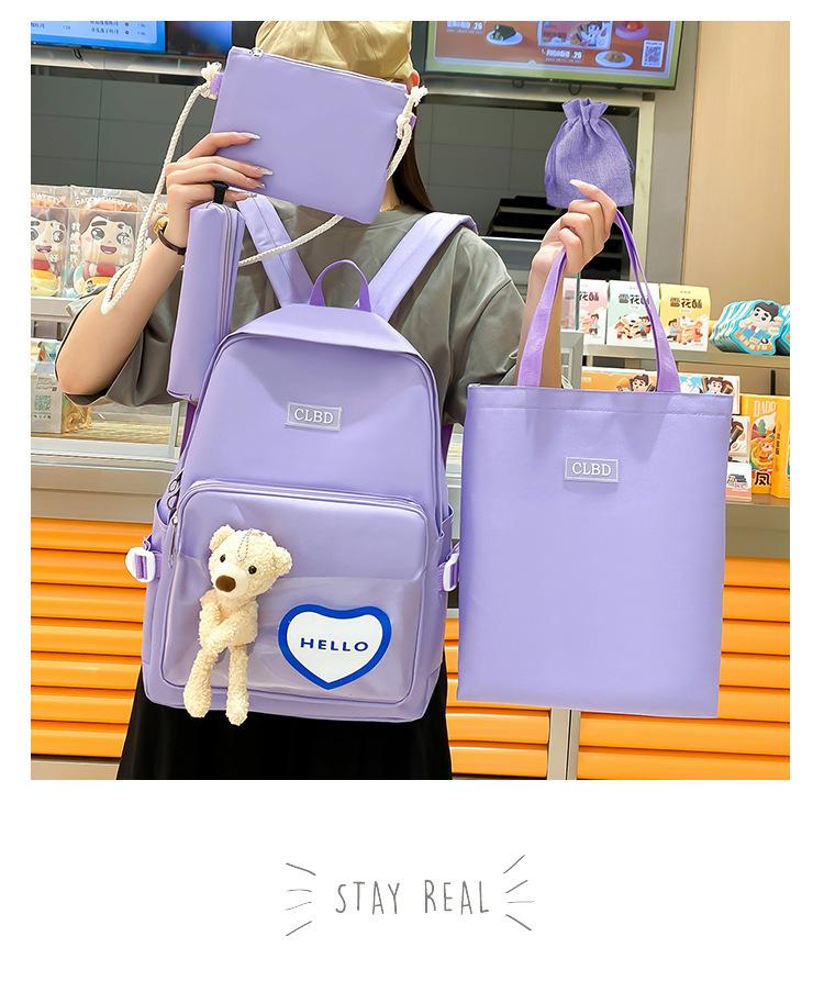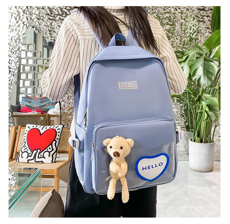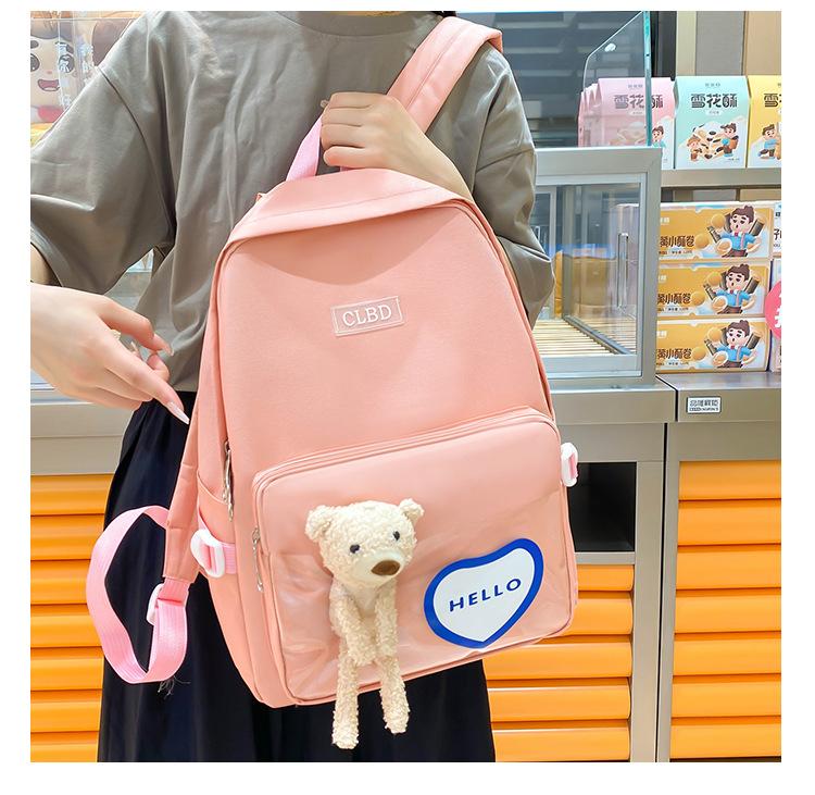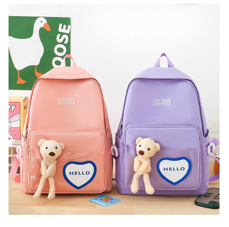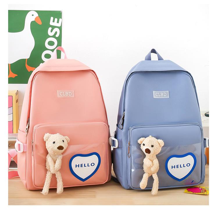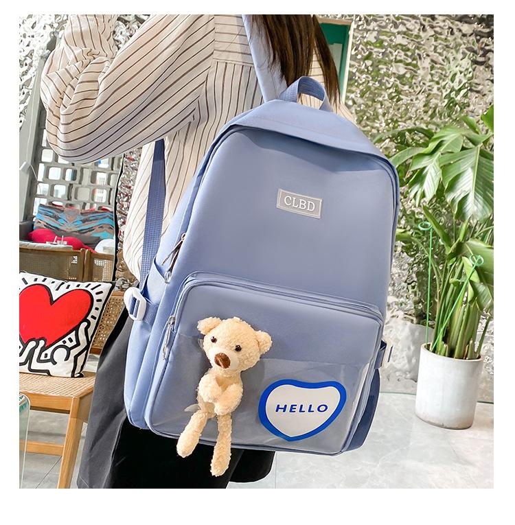 Mochila de lona de estilo coreano para estudiantes de primaria, secundaria, preparatoria, de gran capacidad, de cinco piezas, para niñas, estilo fresco