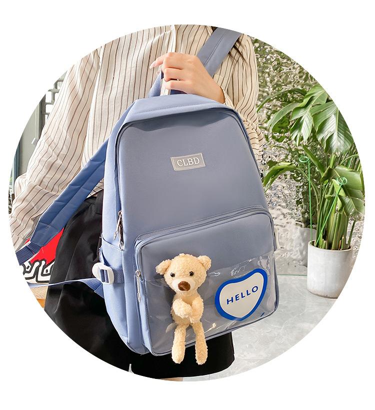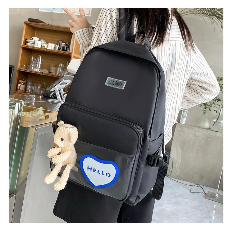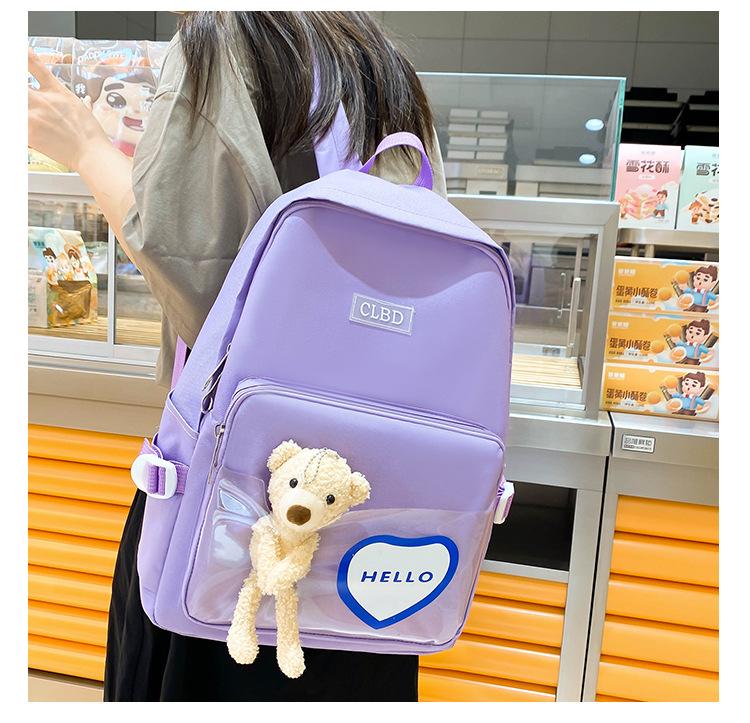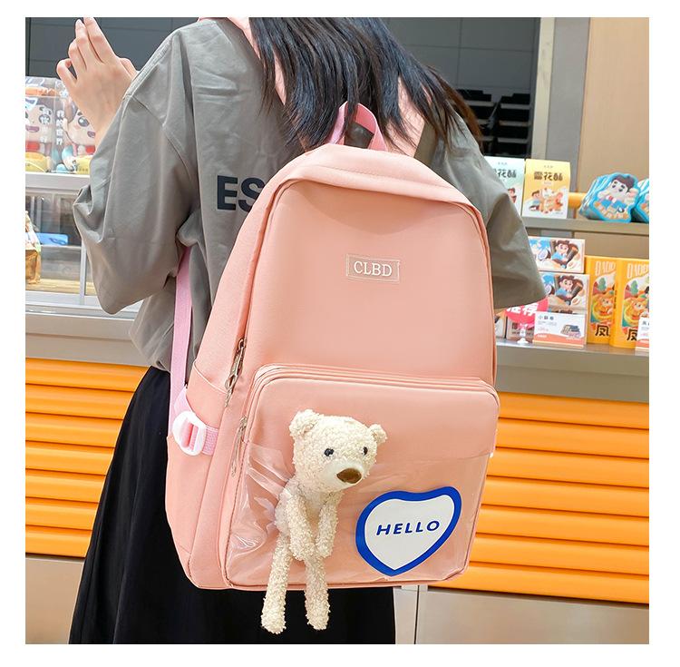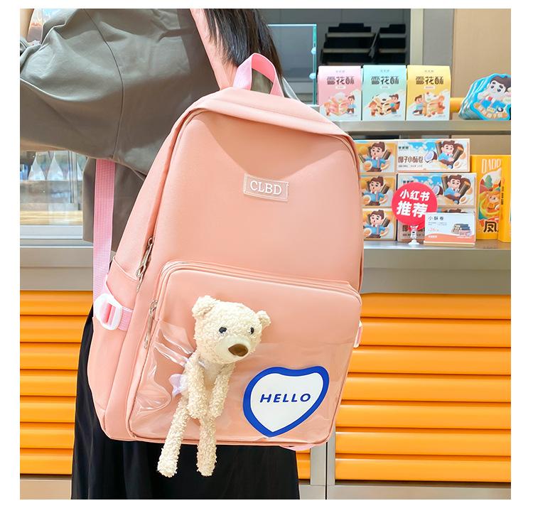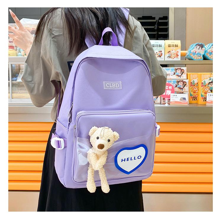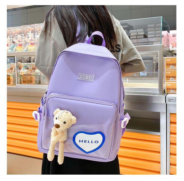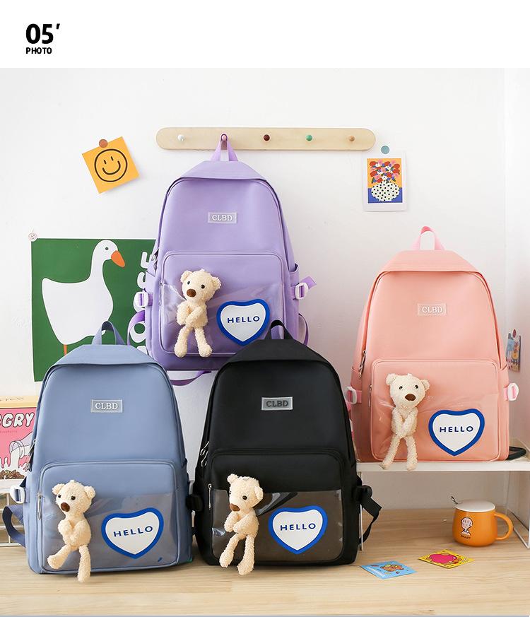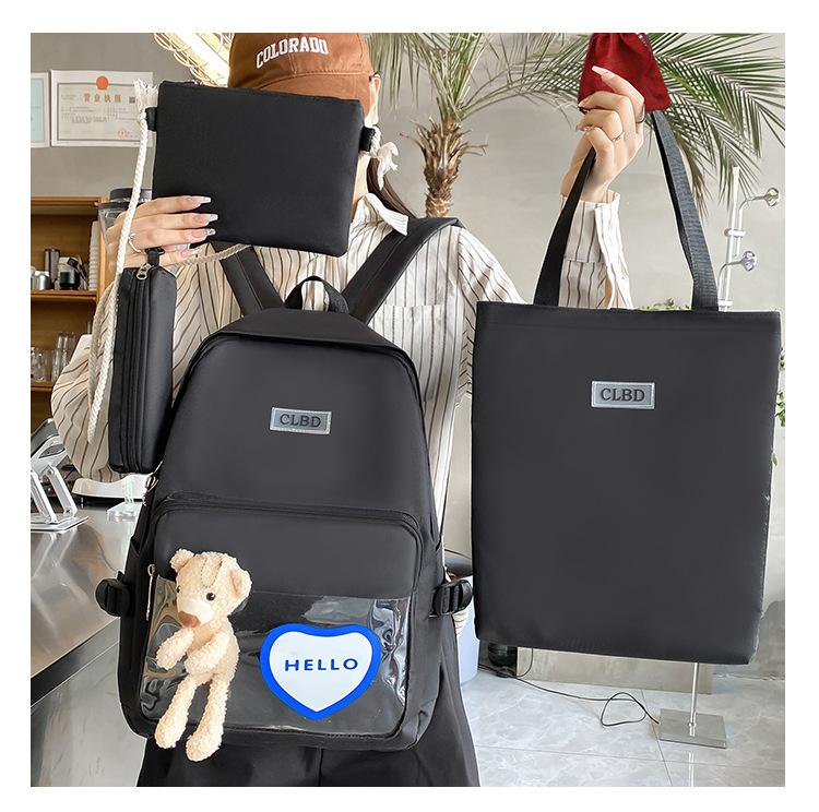 Mochila de lona de estilo coreano para estudiantes de primaria, secundaria, preparatoria, de gran capacidad, de cinco piezas, para niñas, estilo fresco