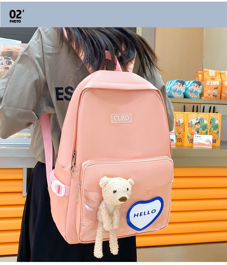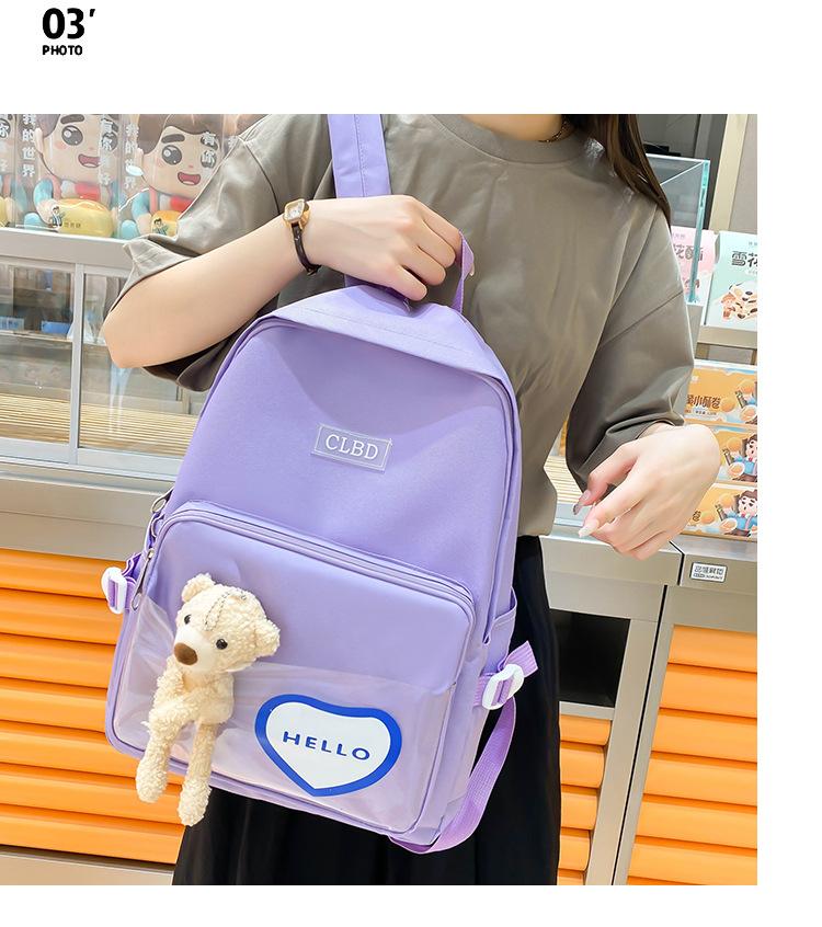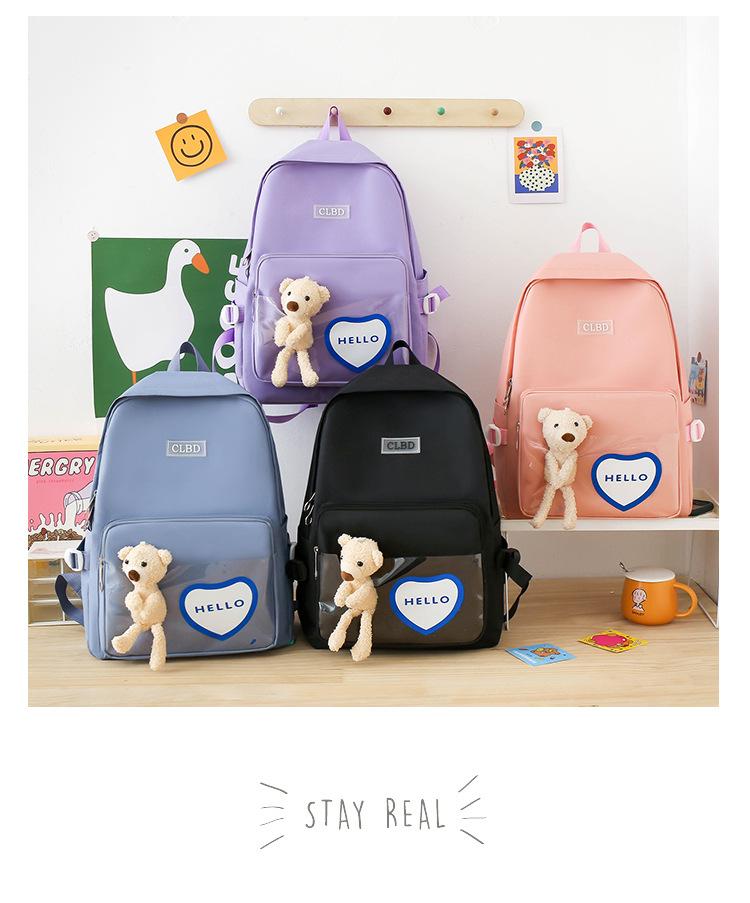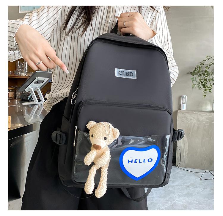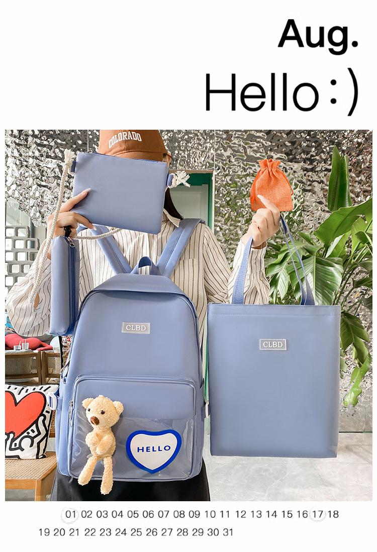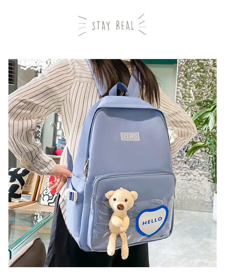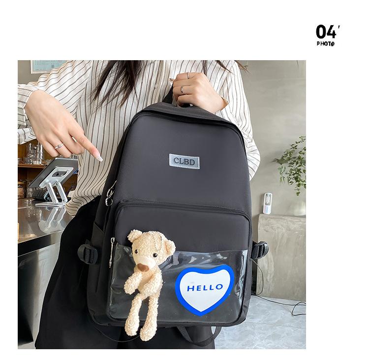 Mochila de lona de estilo coreano para estudiantes de primaria, secundaria, preparatoria, de gran capacidad, de cinco piezas, para niñas, estilo fresco