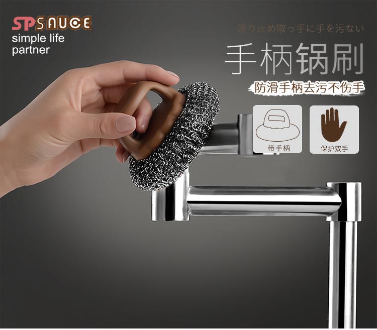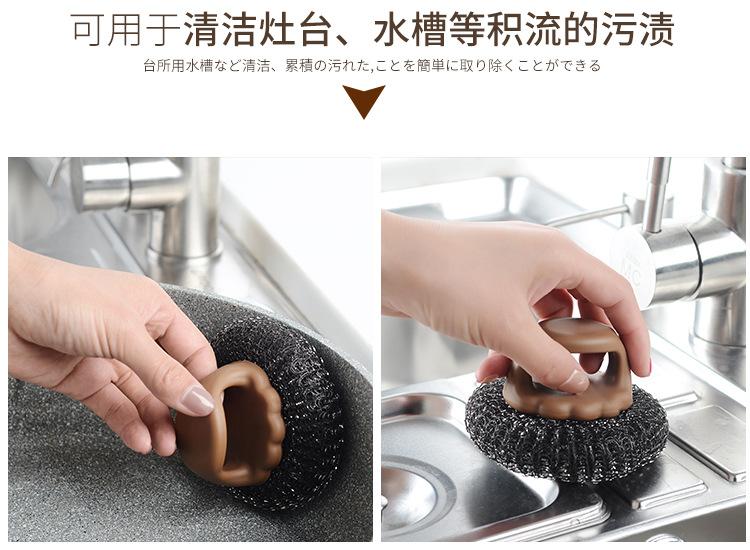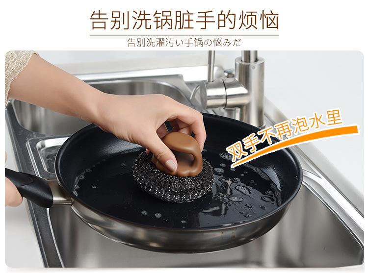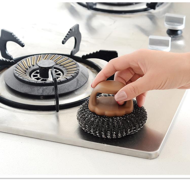 Cepillo con mango limpieza de cocina bola de alambre de acero mango cepillo para lavar ollas cepillo de limpieza bola de alambre de acero cepillo no lastima las manos