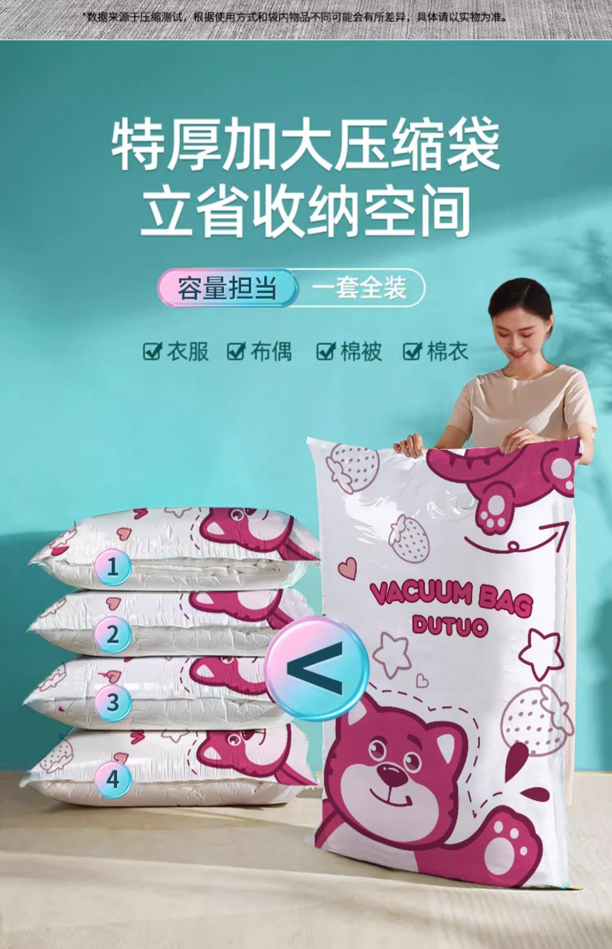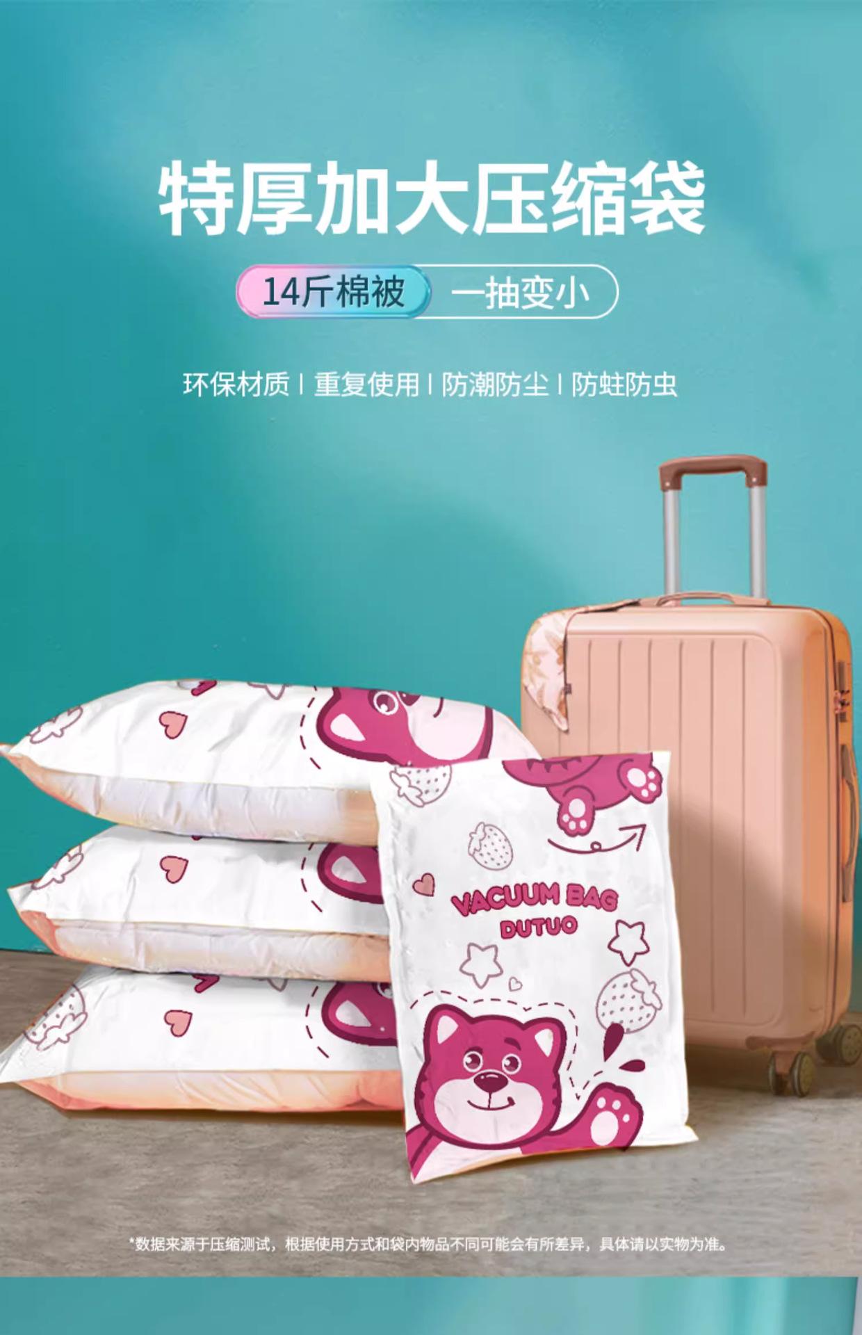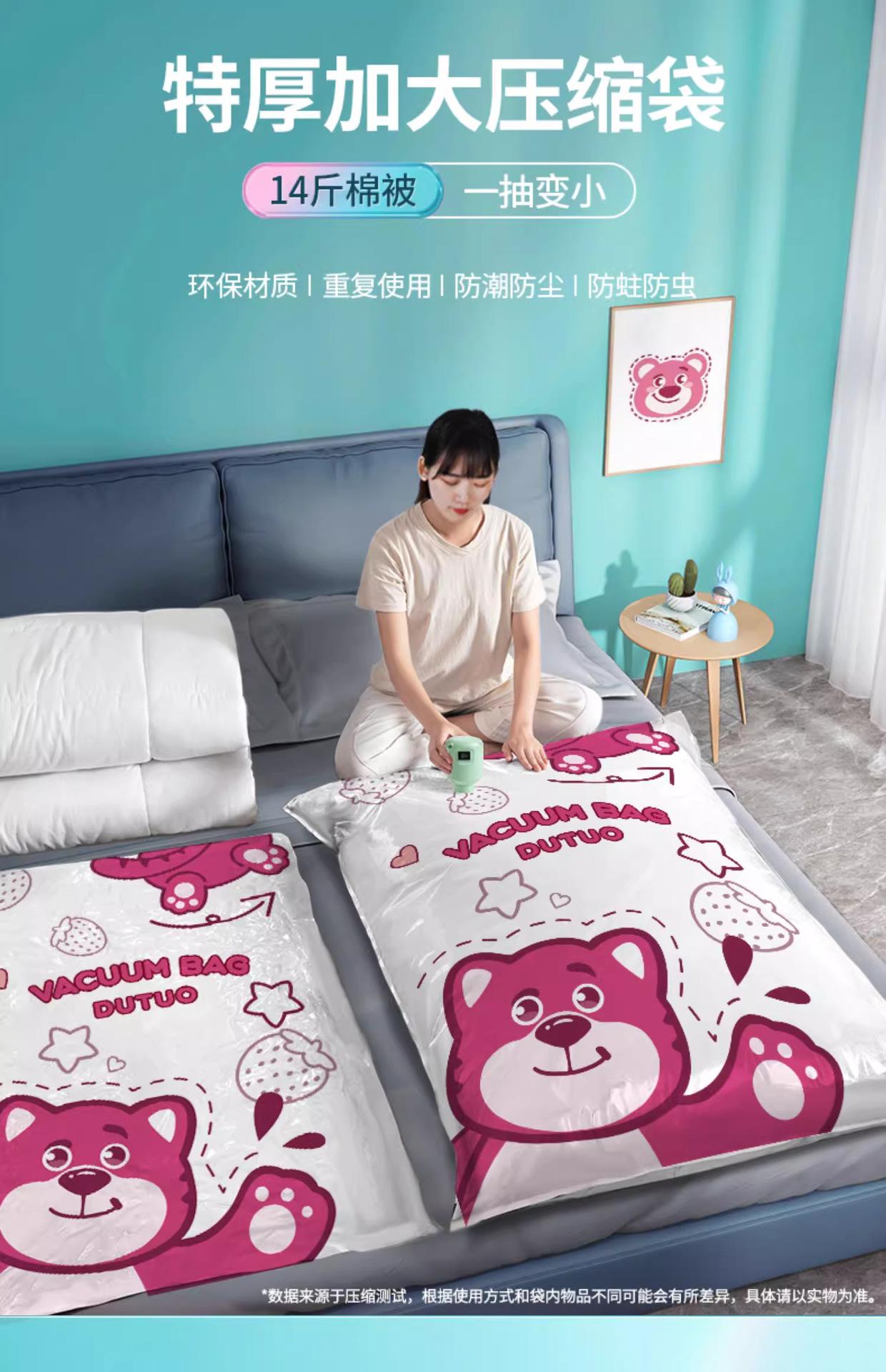 Compra Bolsa de Compresión al Vacío para el Hogar Engrosada de Dibujos Animados Oso Fresa Viaje Mudanza Ropa Edredón Bolsa de Almacenamiento Bolsa de Almacenamiento Grande al por mayor en Joom.pro