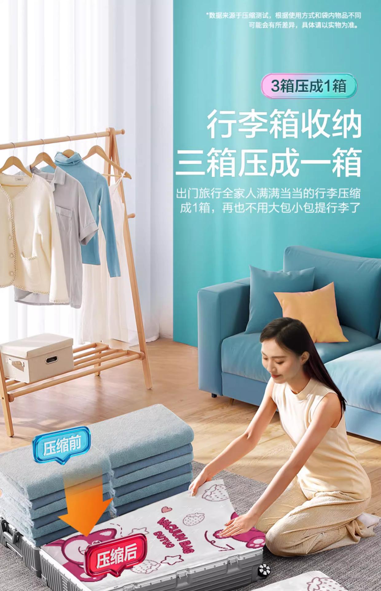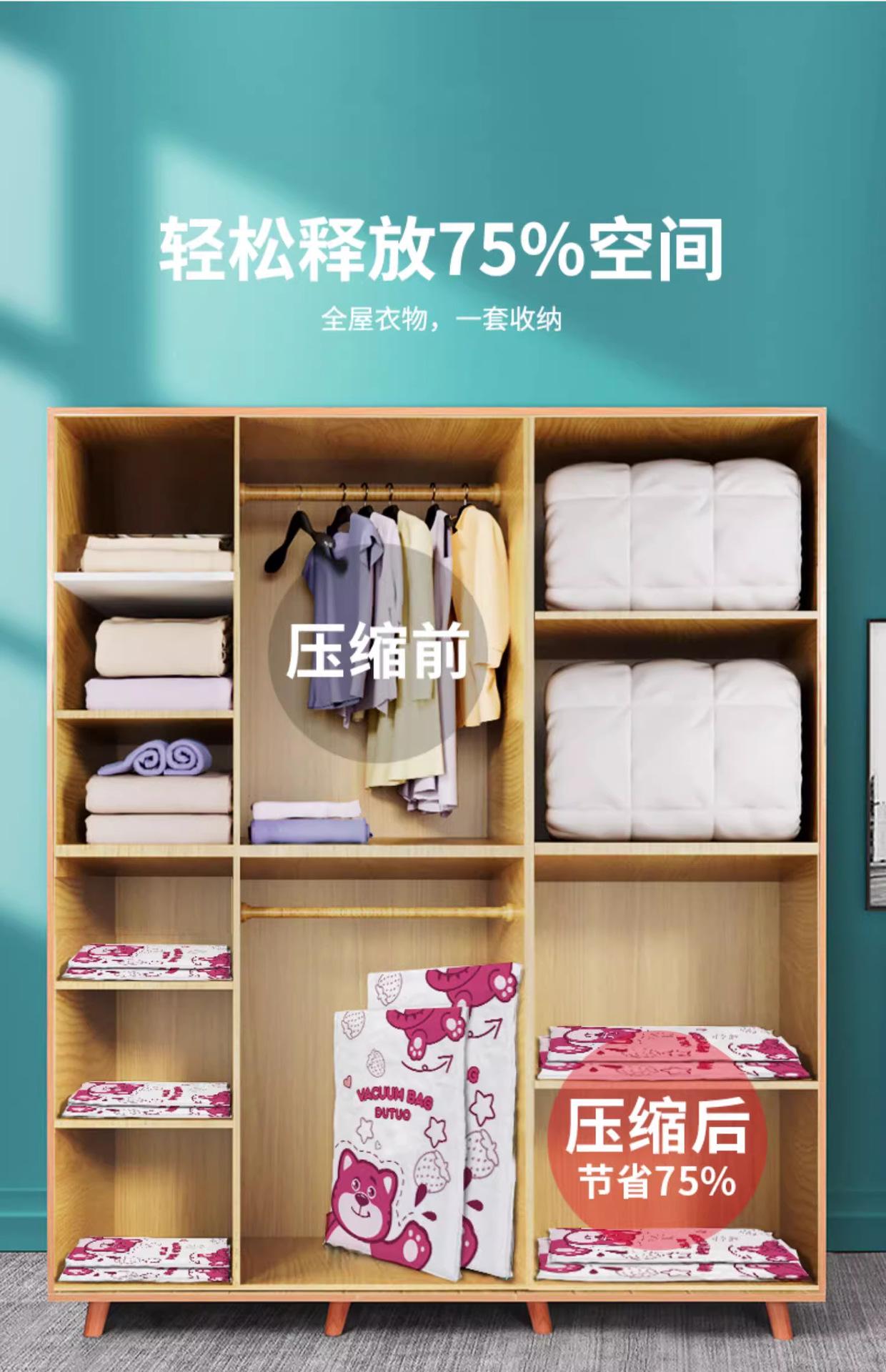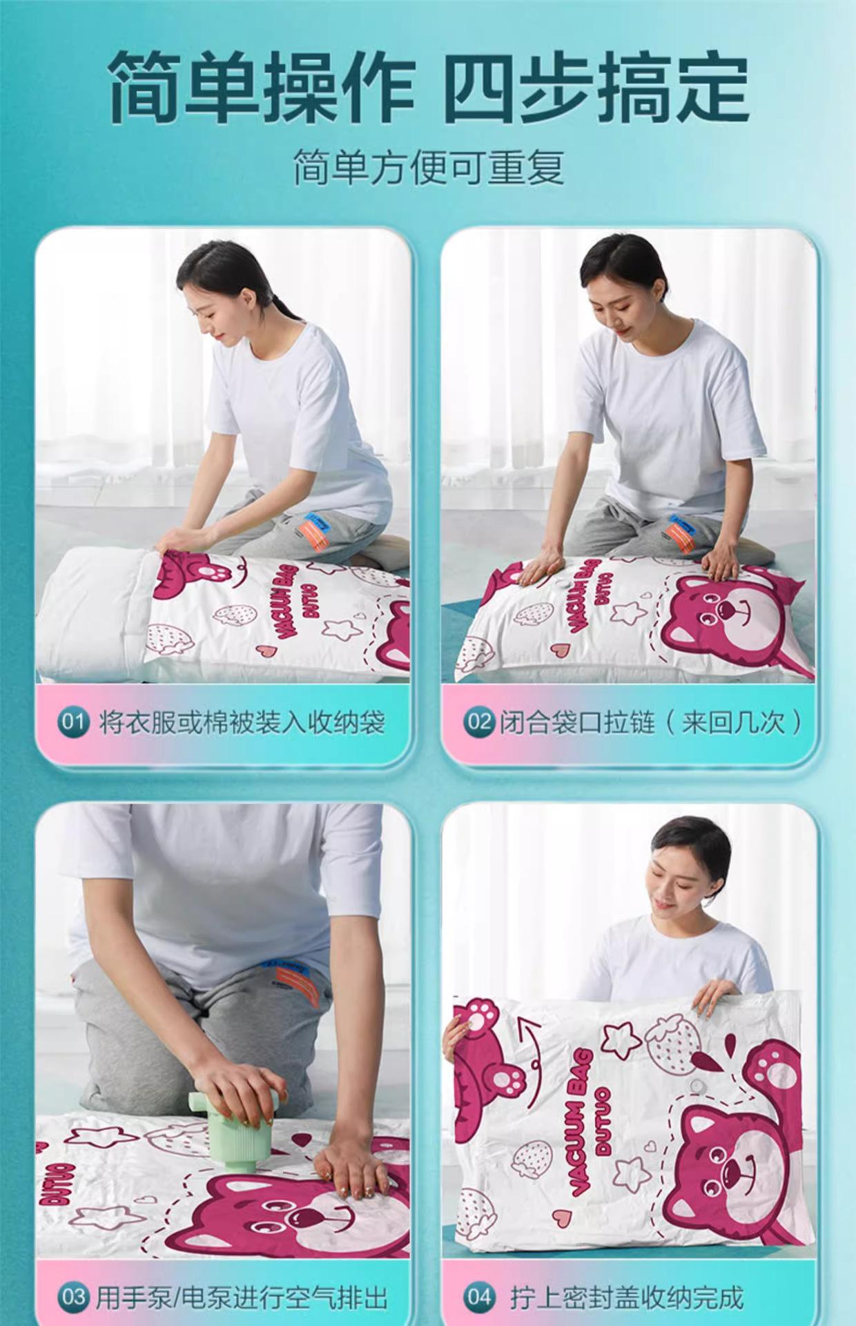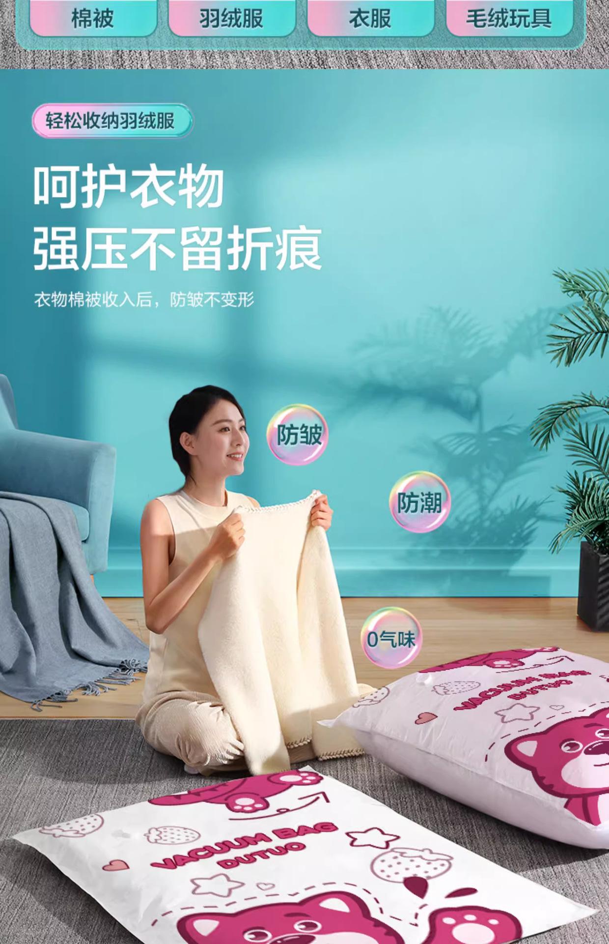 Compra Bolsa de Compresión al Vacío para el Hogar Engrosada de Dibujos Animados Oso Fresa Viaje Mudanza Ropa Edredón Bolsa de Almacenamiento Bolsa de Almacenamiento Grande al por mayor en Joom.pro