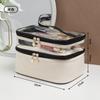 Bolsa grande de cosméticos de PU, bolsa de viaje de doble capa transparente, bolsa de accesorios de viaje portátil, bolsa de almacenamiento de cosméticos para mujer