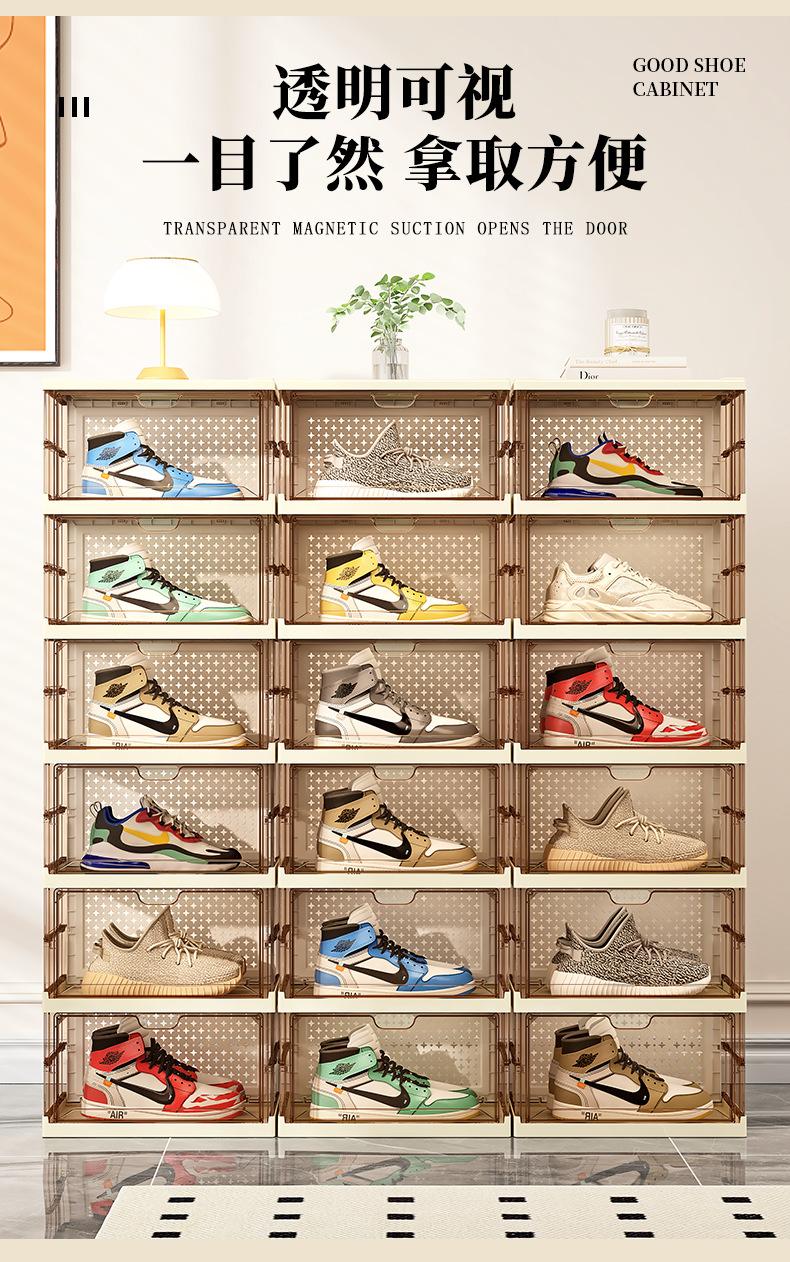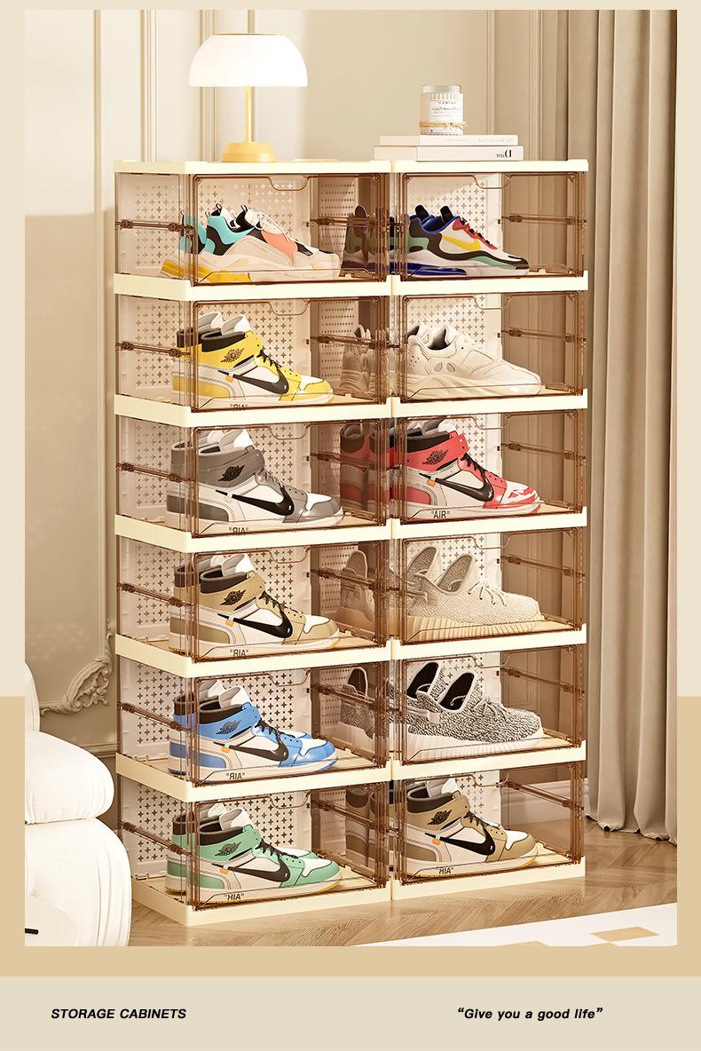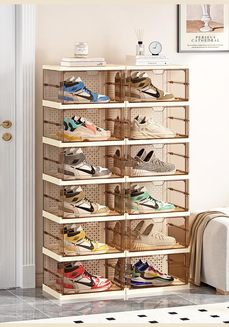 Compra Zapatero Estante de Almacenamiento de Zapatos Plástico de Apertura Lateral Organizador de Cajas de Zapatos Marrón Transparente Plegable Grande Gabinete para Tenis a Prueba de Polvo al por mayor en Joom.pro