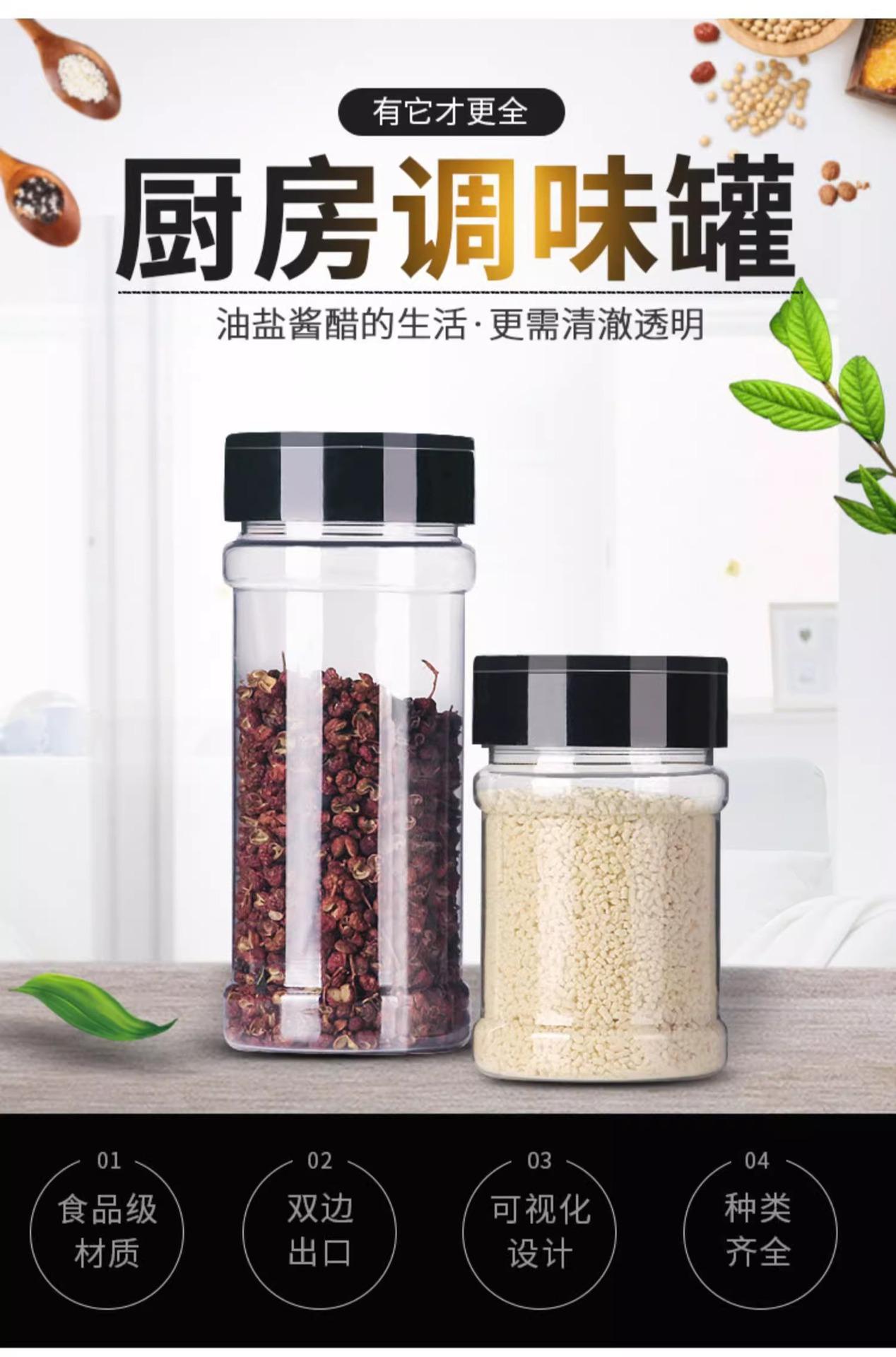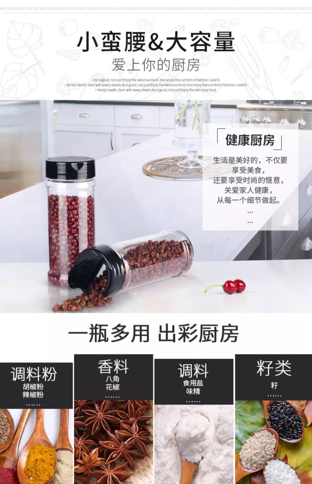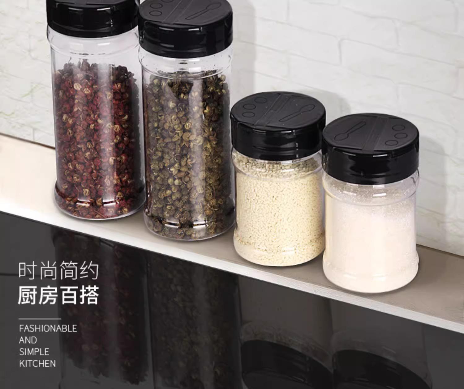 Tarro de condimento con doble tapa, sal de cocina para el hogar, caja de condimento de glutamato monosódico, sellada a prueba de humedad, botella de condimento transparente de gran diámetro medible