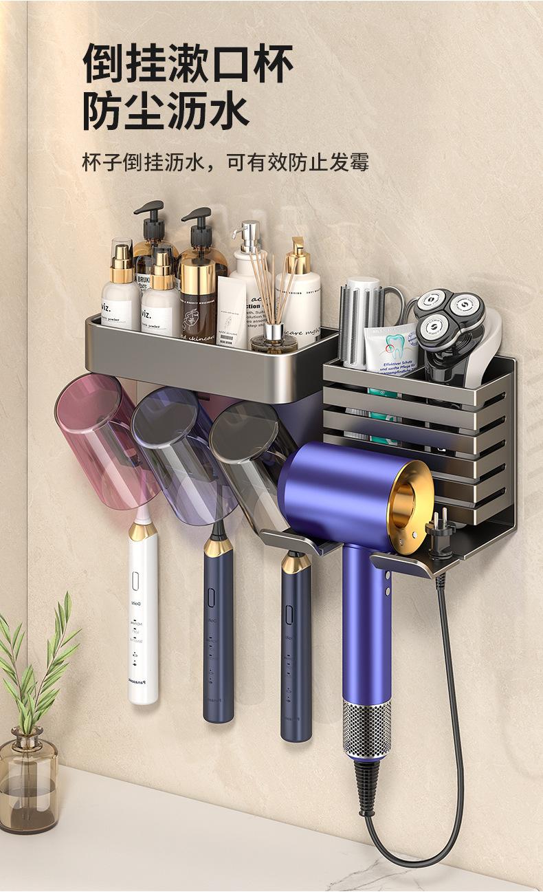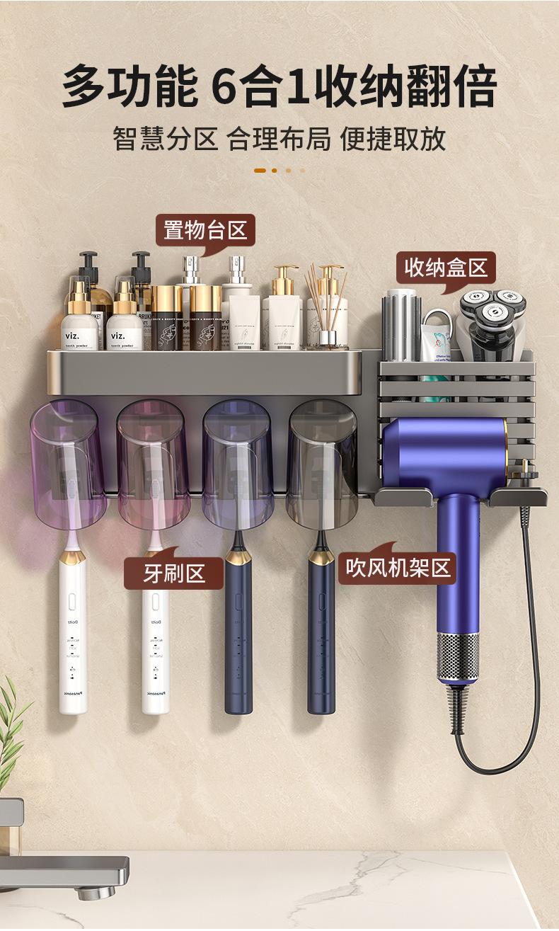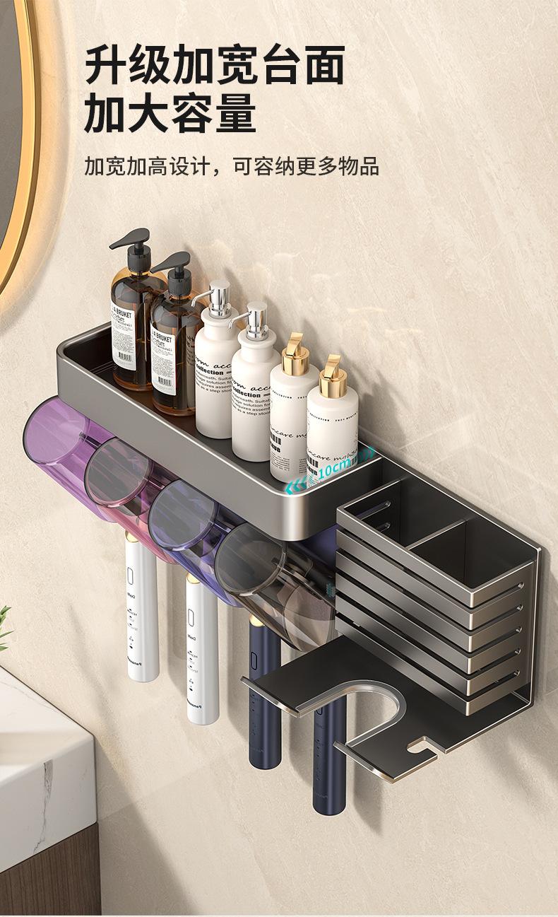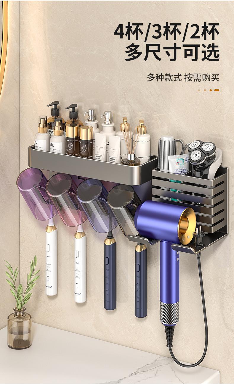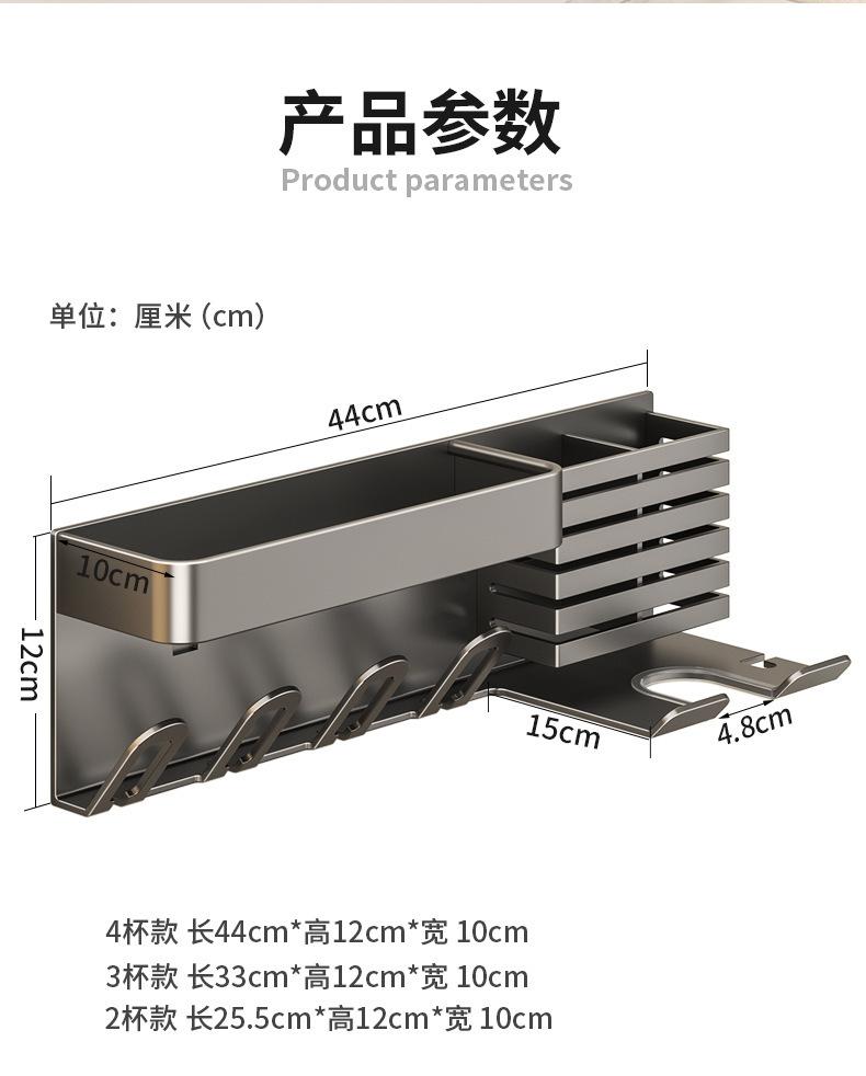 Toothbrush holder for 3 people with cup (dual use without punching holes)