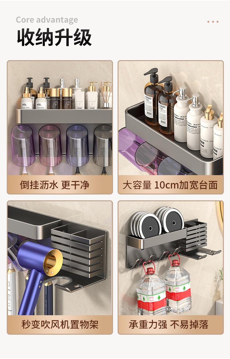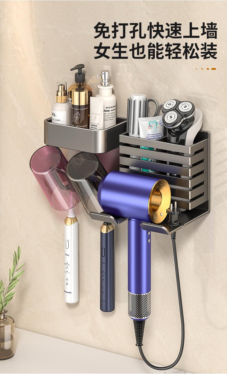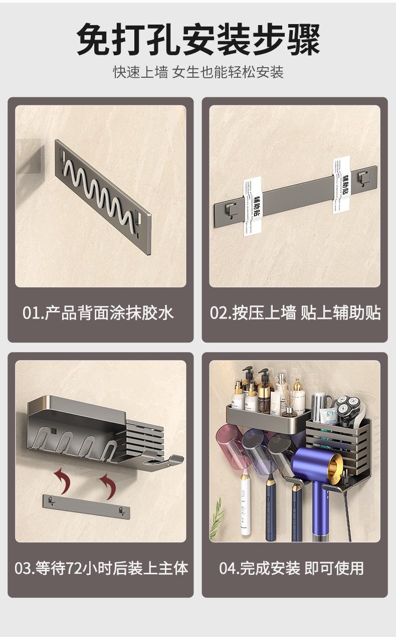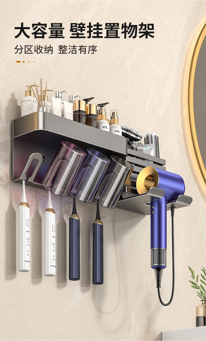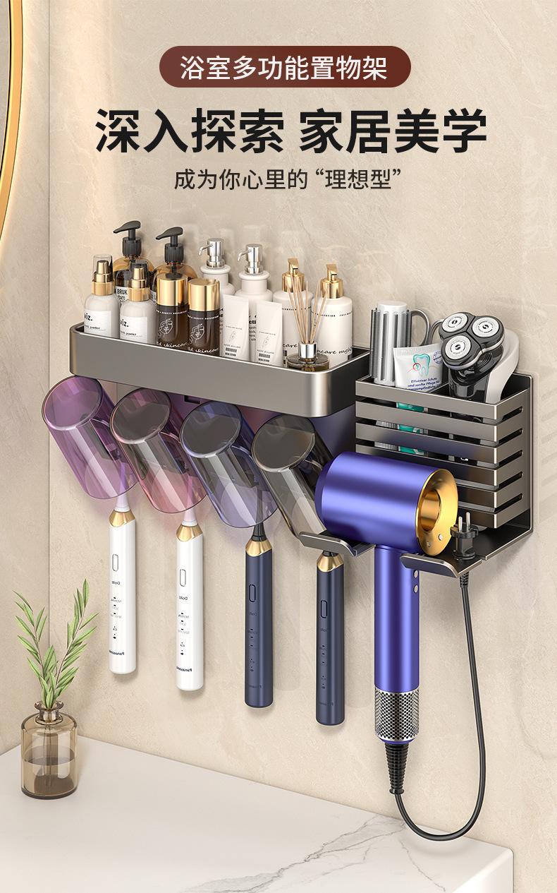 Toothbrush holder for 3 people with cup (dual use without punching holes)