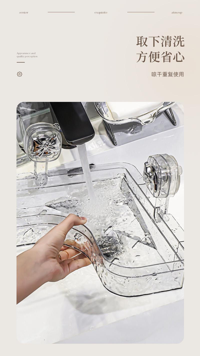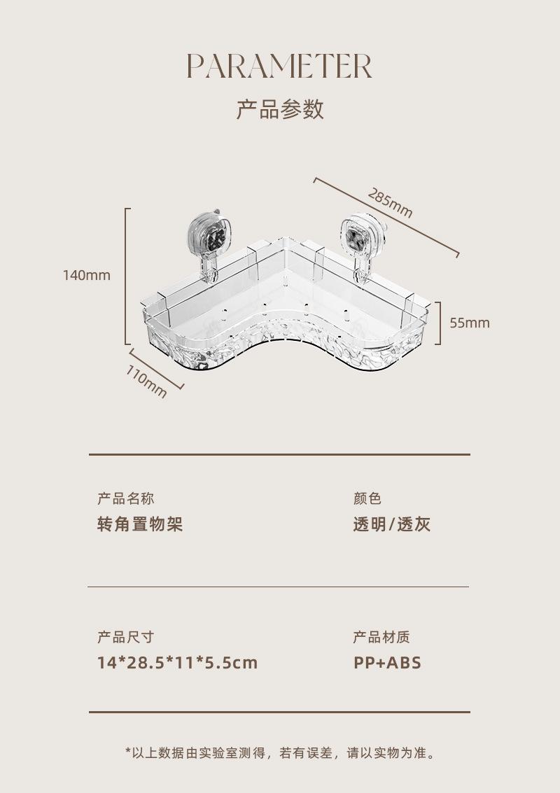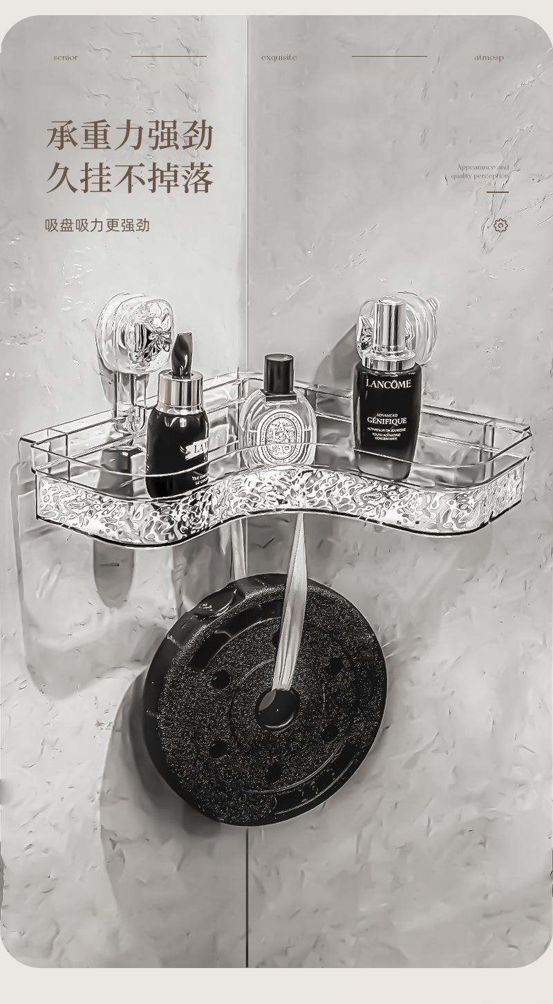 Suction cup corrugated bathroom corner shelf-transparent silver, Suction cup corrugated bathroom corner shelf-...