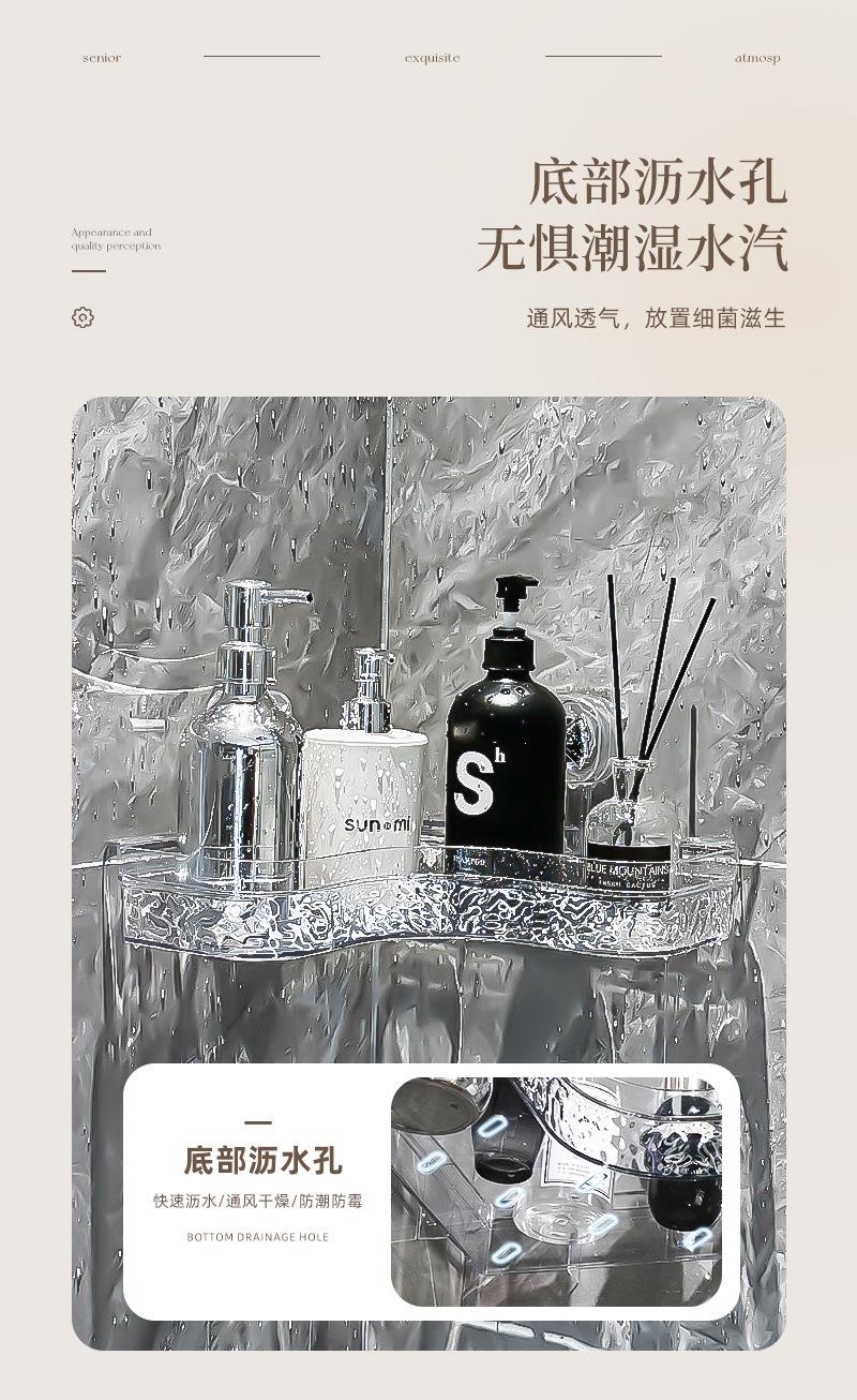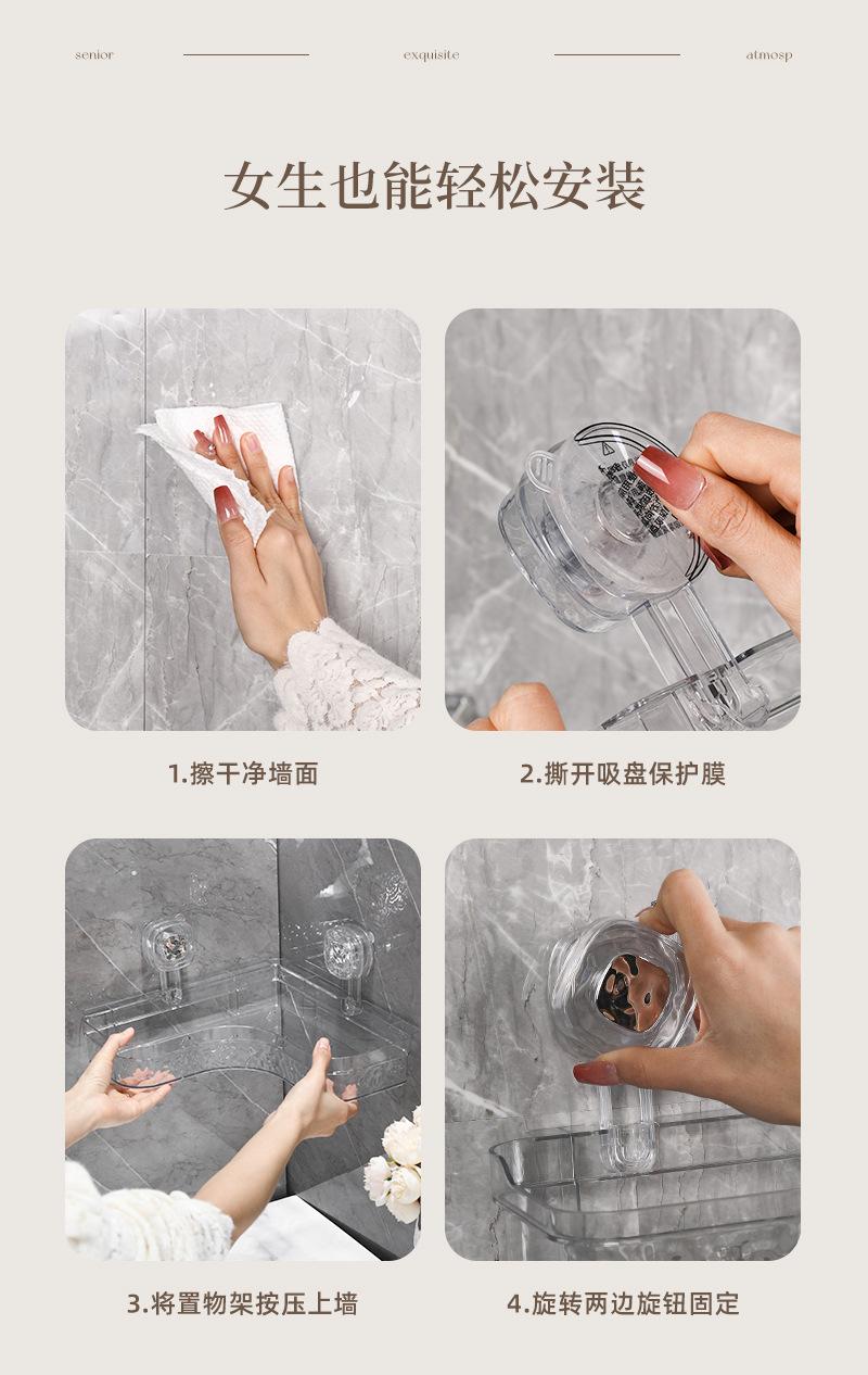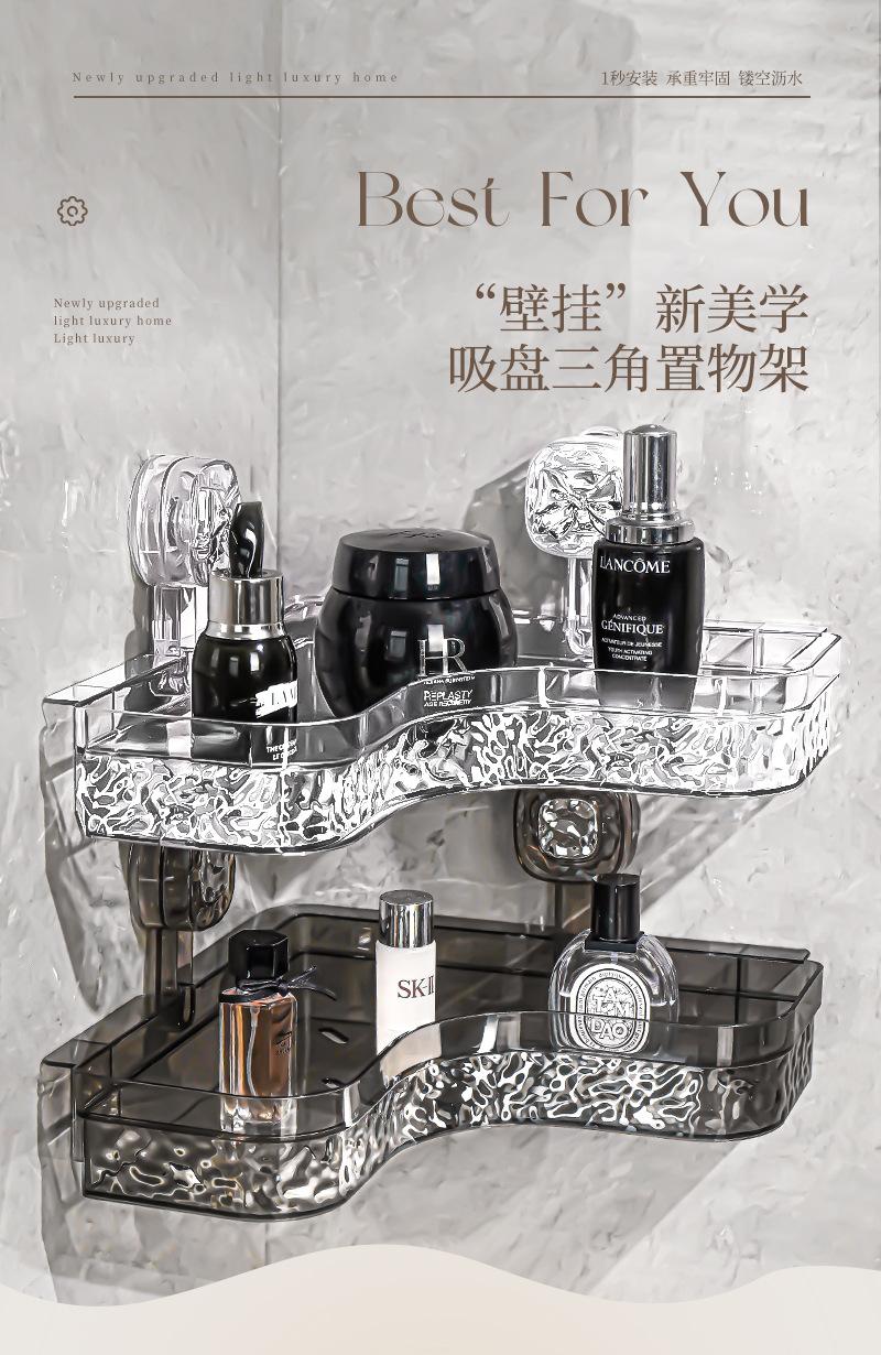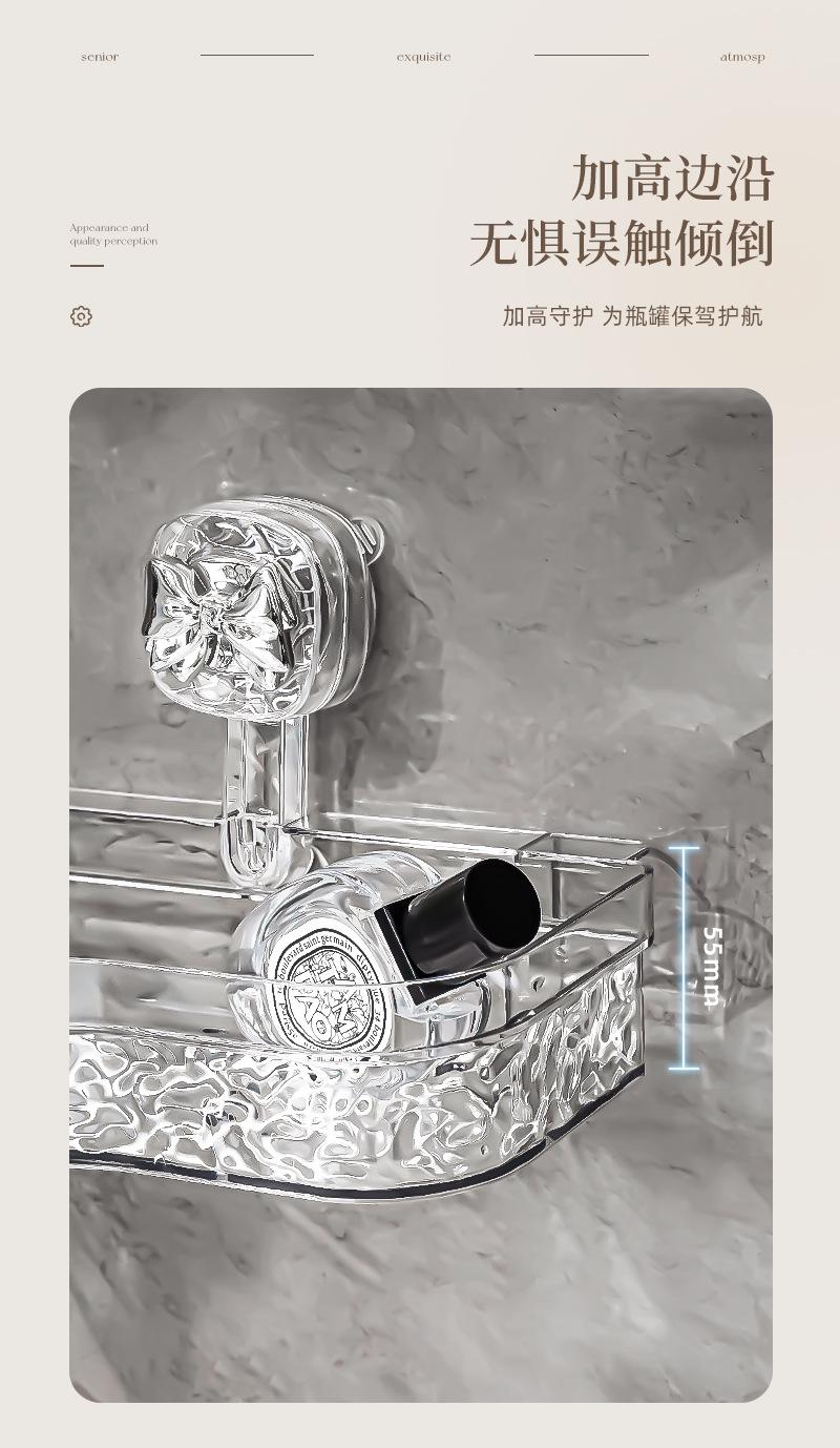 Transparent gray suction cup glacier pattern corner storage rack*2